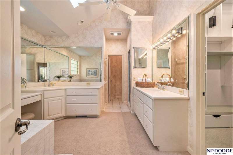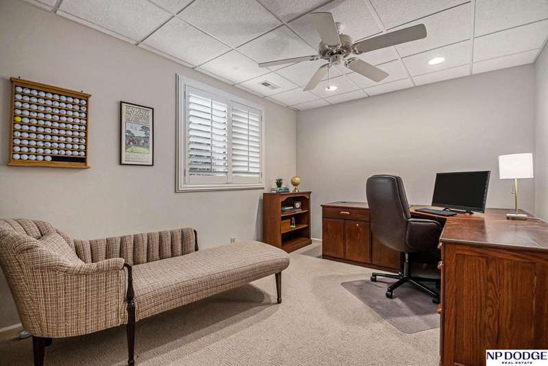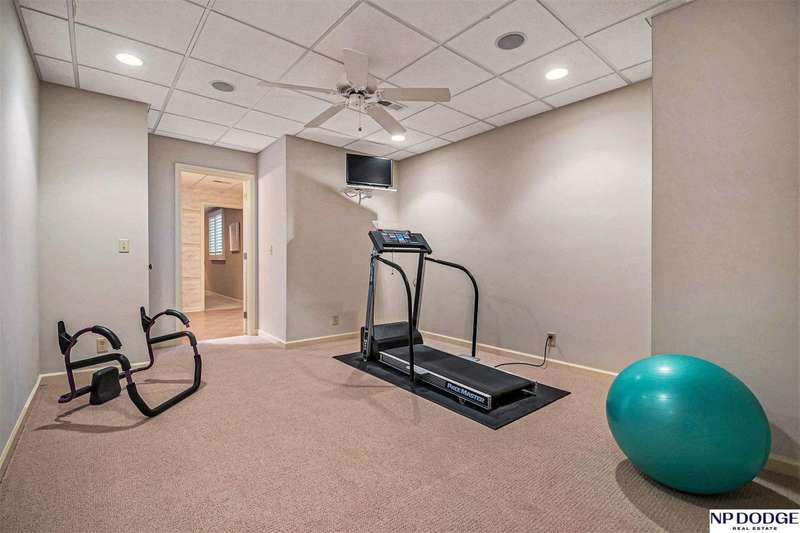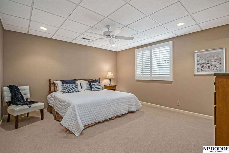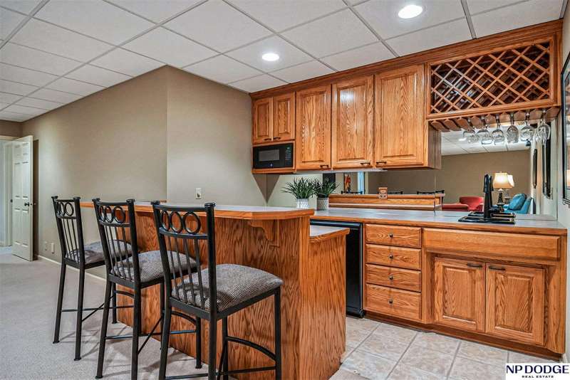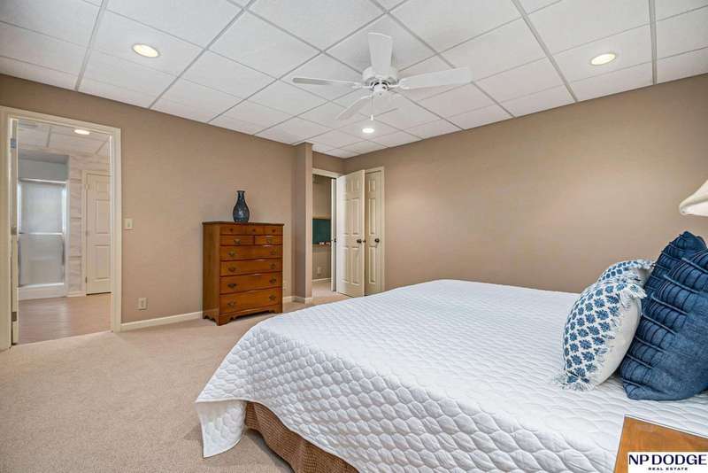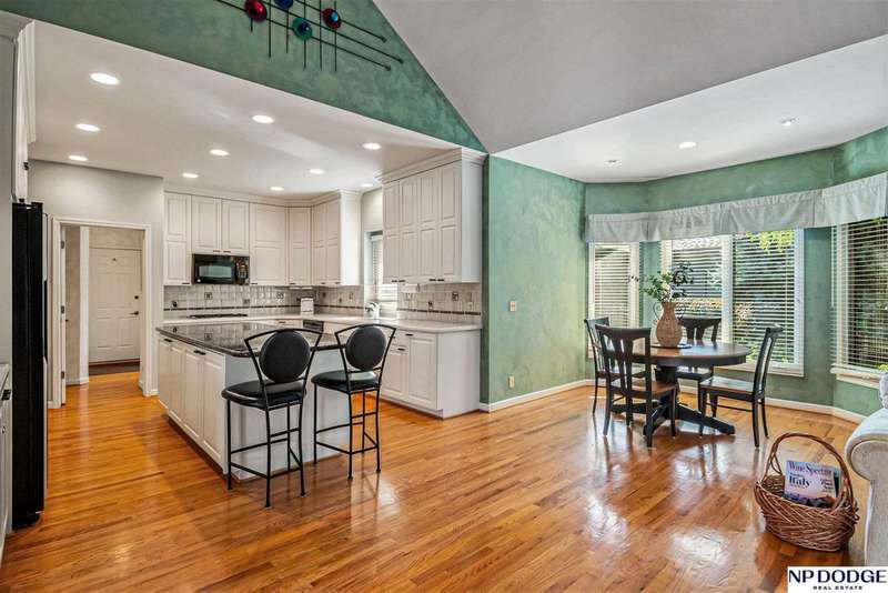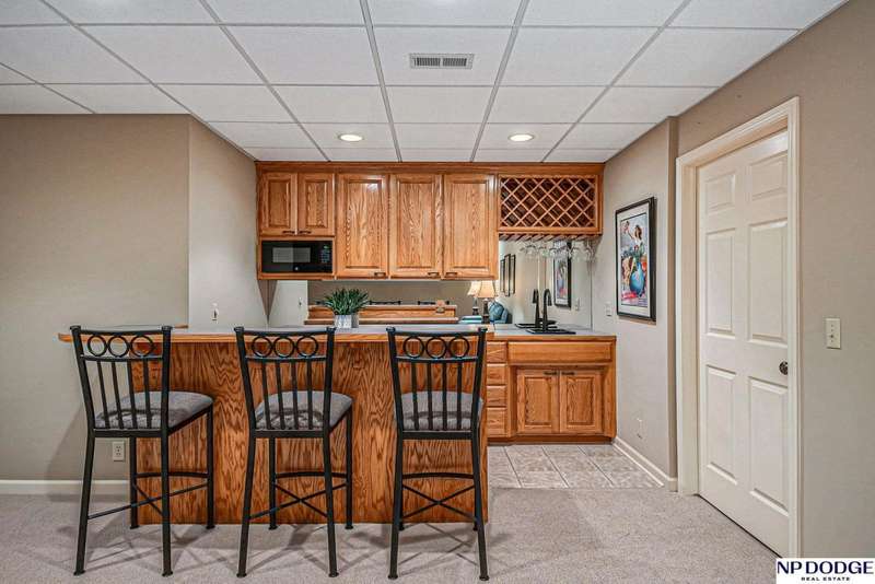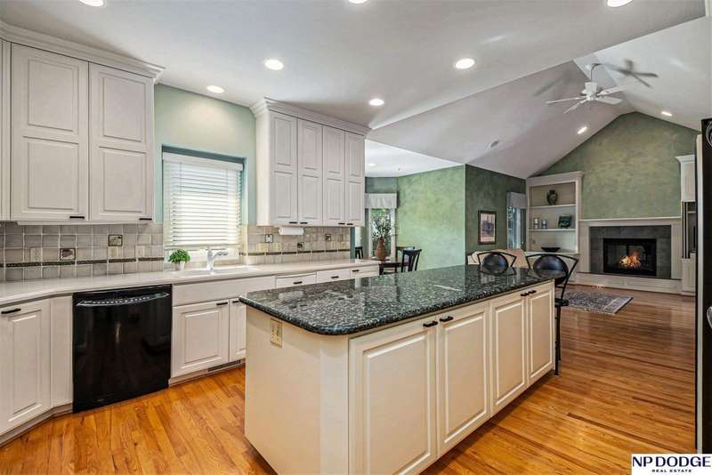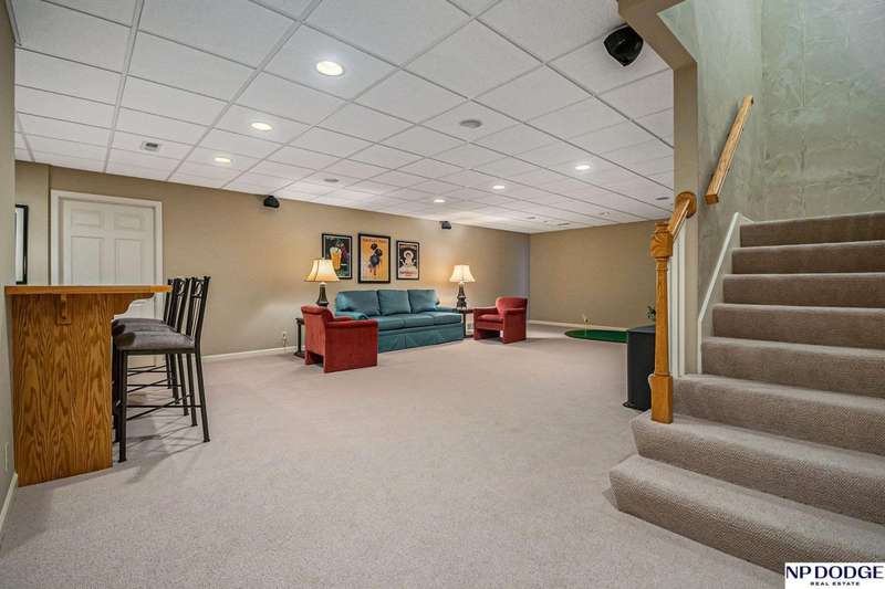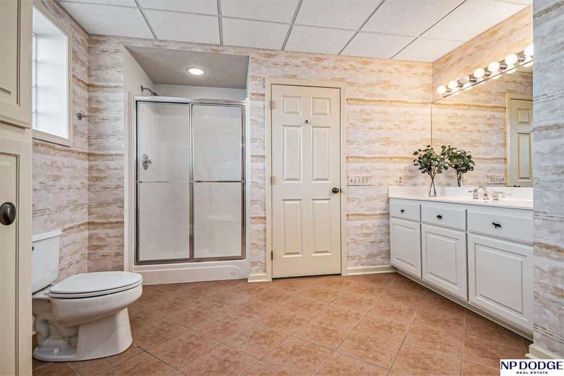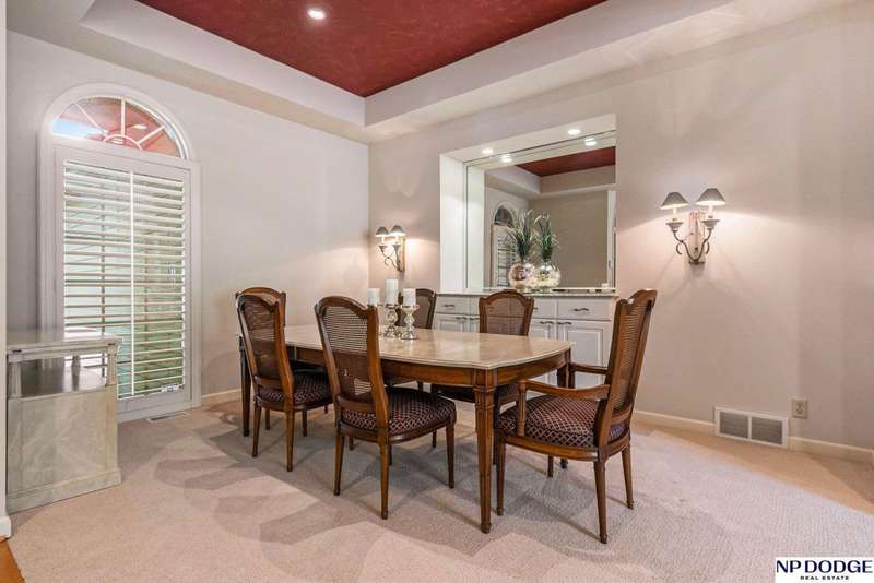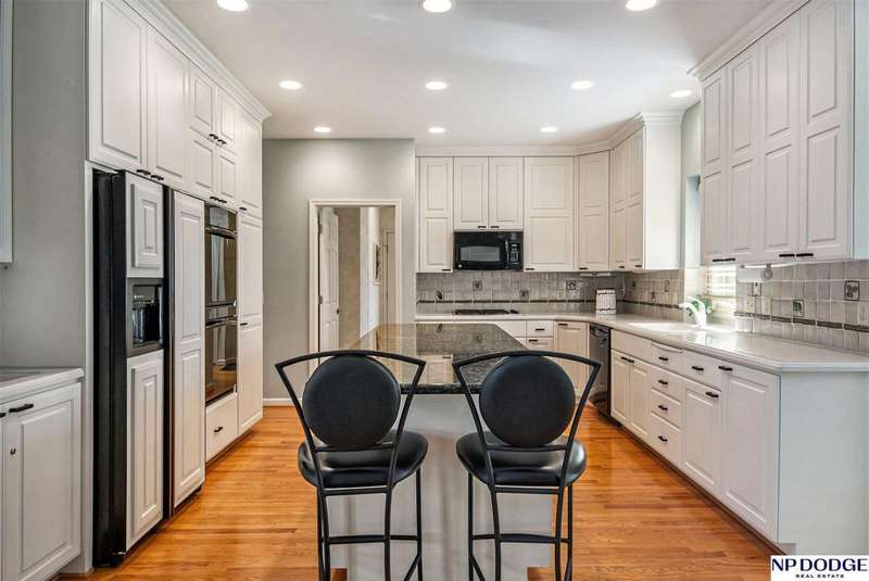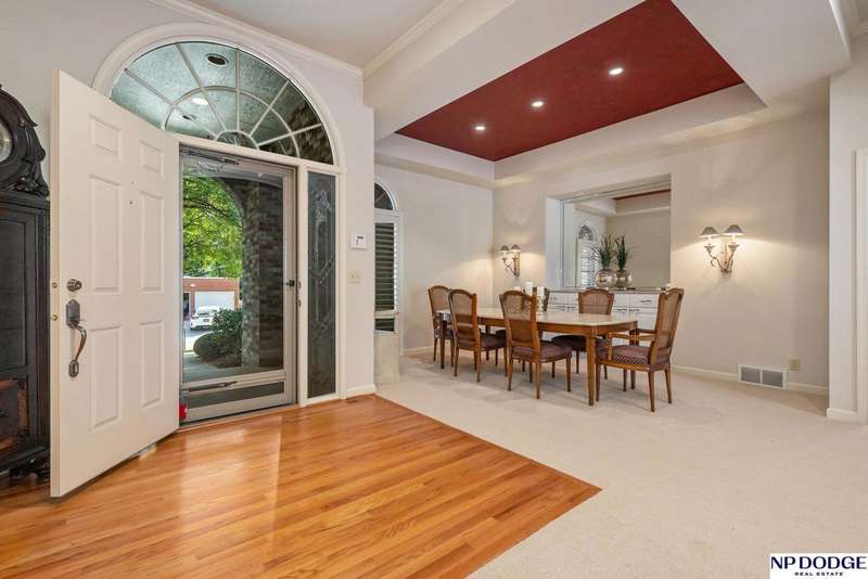 Gorgeous Ranch in this Unique Gated Community in the HEART of West Omaha! This home blends elegance, comfort, and functionality with abundant living spaces, perfect for entertaining. Host in the formal living & dining rooms, or gather in the beautiful & spacious kitchen that flows into a cozy hearth room with a stone fireplace. The primary suite is a true retreat, featuring a spa-like ensuite with a walk-in shower, soaking tub, vanity space galore and an impressive two-story closet with custom built-ins. A large main-floor bonus room offers endless possibilities: office, music room, library, or even a generously sized bedroom with a walk in closet. The lower level is built for fun and function, boasting a rec room, wet bar for serving guests, two additional bedrooms, an exercise/flex room, and an expansive storage area. Step outside to the oversized deck, ideal for morning coffee, evening BBQs, or simply soaking in the peaceful surroundings. Meticulously landscaped lawn.