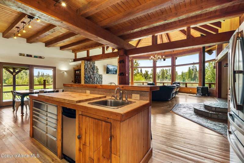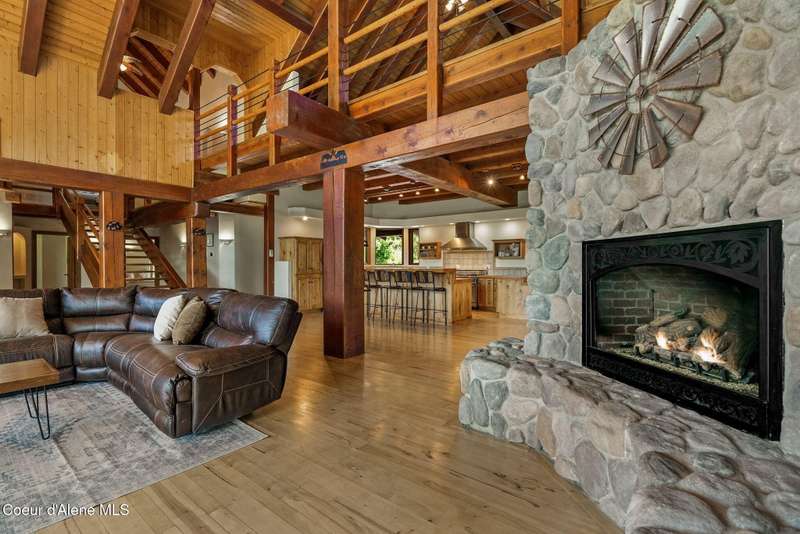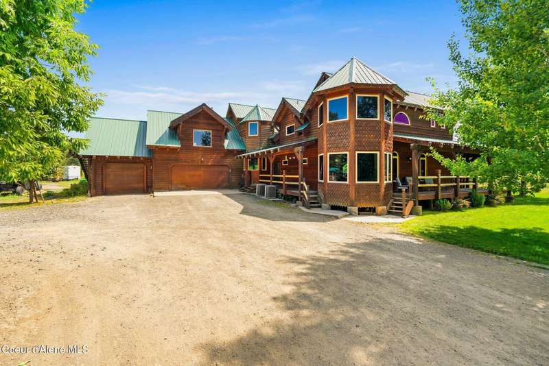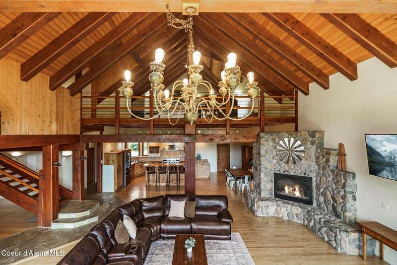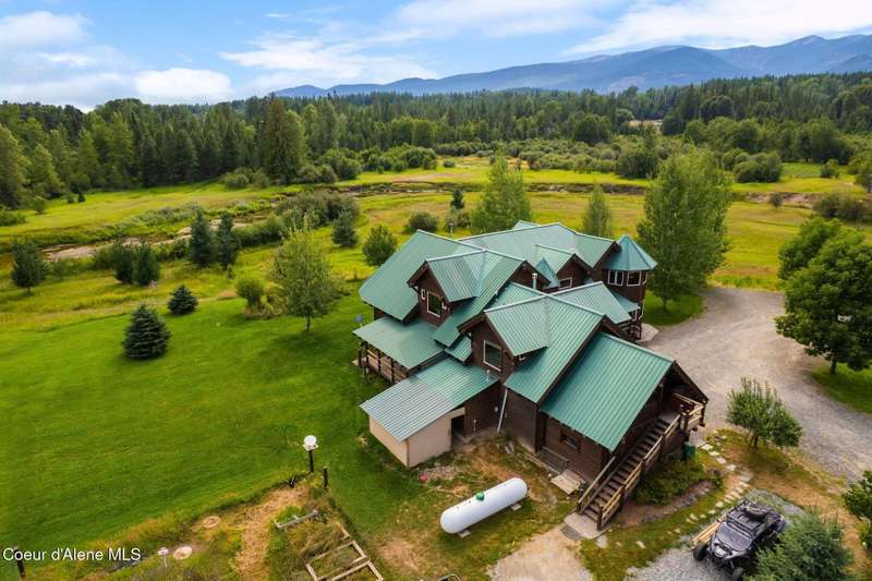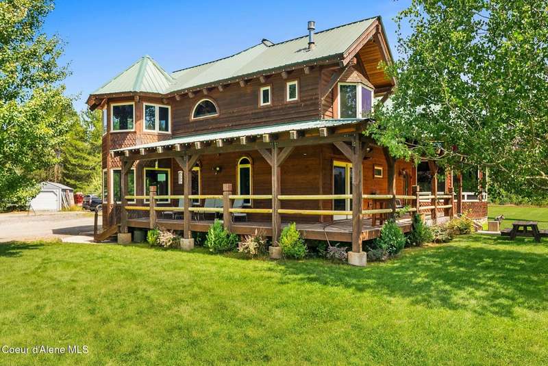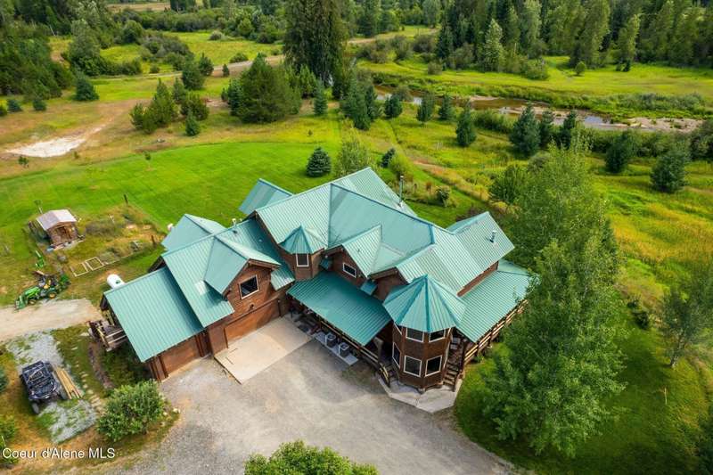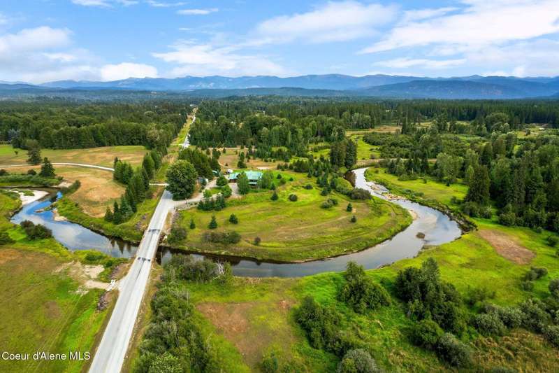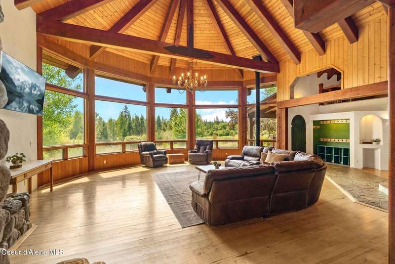 Welcome to The Pack River Lodge—a 4,134 sq ft, 4 bed, 4 bath timber frame home on over 20 acres with private frontage on the Pack River and breathtaking views of Schweitzer Mountain. Designed for year-round living and adventure, this home features an open layout, vaulted ceilings, exposed beams, and walls of windows that frame the surrounding natural beauty. The main level offers a spacious kitchen, two bedrooms, and two full baths. Upstairs, you'll find the primary suite plus a full studio apartment with its own kitchen, bathroom, and walk-in closet—perfect for guests or rental income. Enjoy direct access to the Pack River for floating, fishing, or simply relaxing by the water. With timber frame craftsmanship, central A/C, and multiple heat sources, The Pack River Lodge is a true North Idaho retreat—just minutes to Downtown Sandpoint, Lake Pend Oreille, and Schweitzer Mountain Resort.