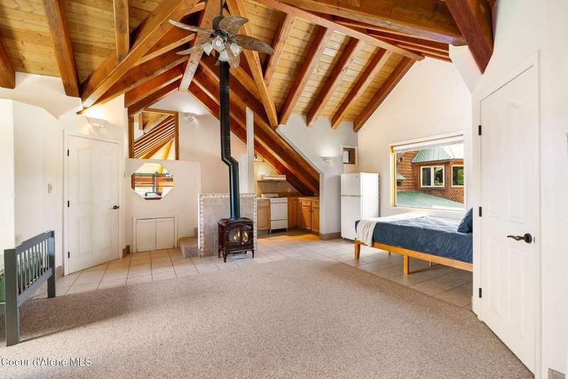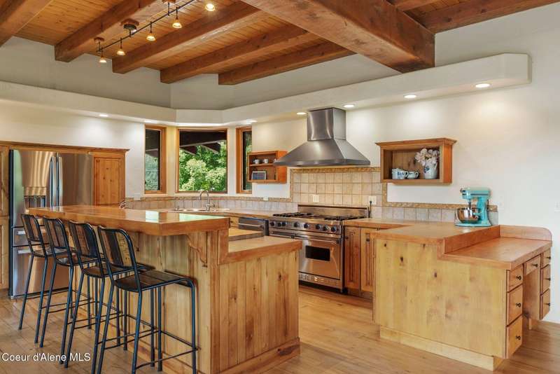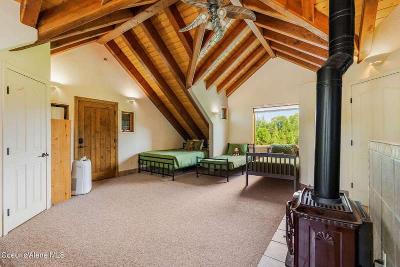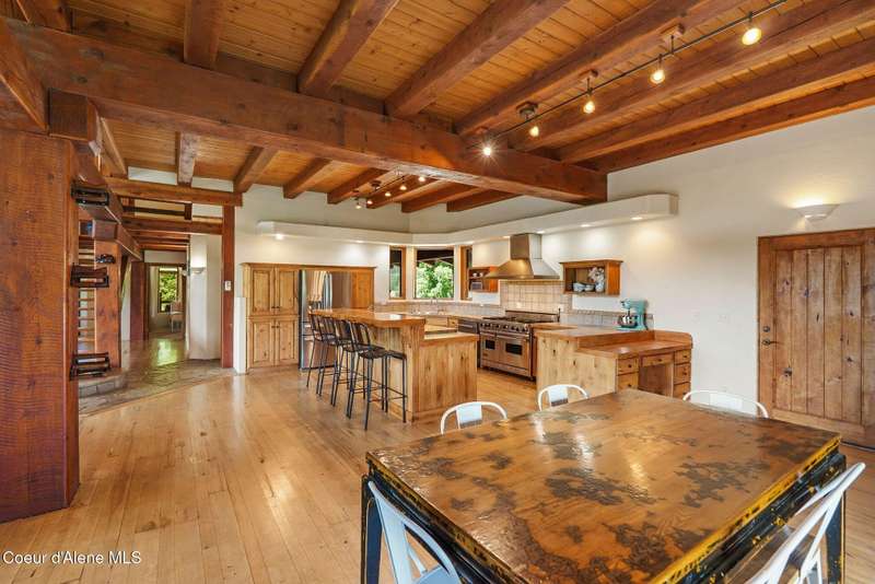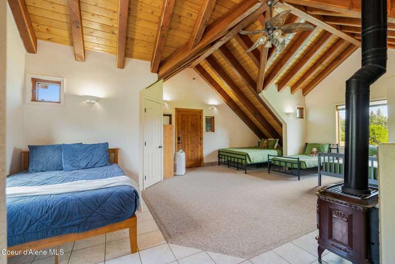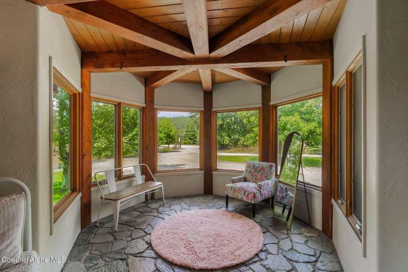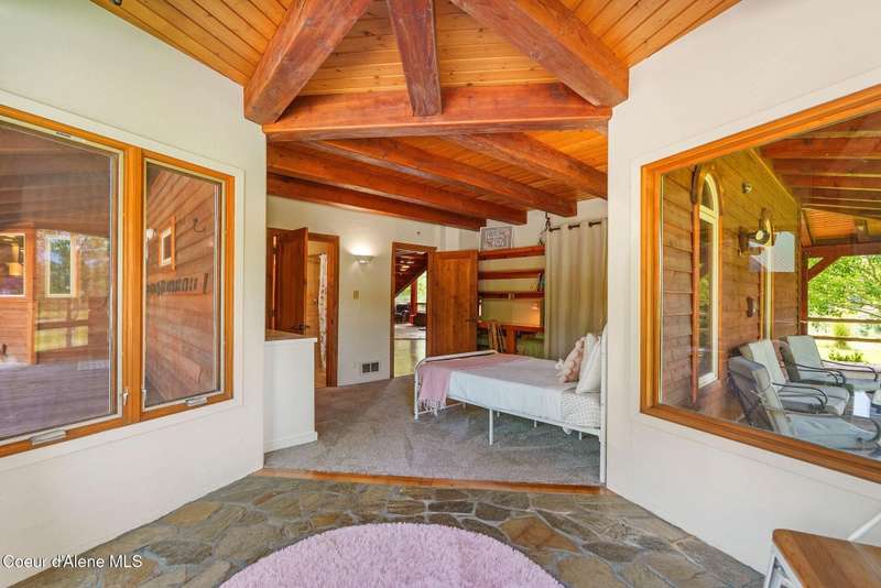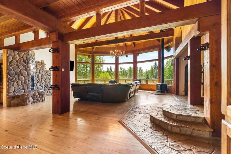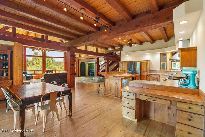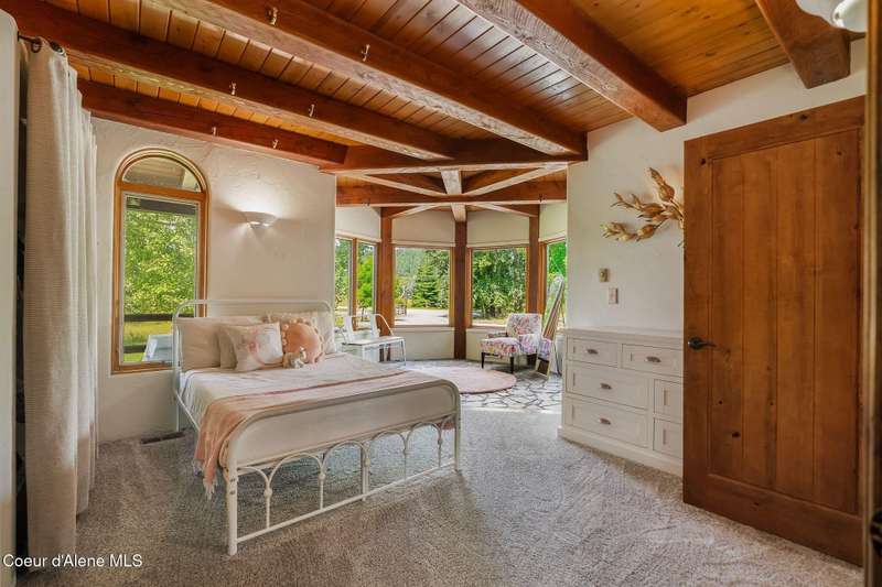 Welcome to The Pack River Lodge—a 4,134 sq ft, 4 bed, 4 bath timber frame home on over 20 acres with private frontage on the Pack River and breathtaking views of Schweitzer Mountain. Designed for year-round living and adventure, this home features an open layout, vaulted ceilings, exposed beams, and walls of windows that frame the surrounding natural beauty. The main level offers a spacious kitchen, two bedrooms, and two full baths. Upstairs, you'll find the primary suite plus a full studio apartment with its own kitchen, bathroom, and walk-in closet—perfect for guests or rental income. Enjoy direct access to the Pack River for floating, fishing, or simply relaxing by the water. With timber frame craftsmanship, central A/C, and multiple heat sources, The Pack River Lodge is a true North Idaho retreat—just minutes to Downtown Sandpoint, Lake Pend Oreille, and Schweitzer Mountain Resort.