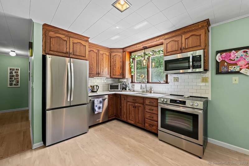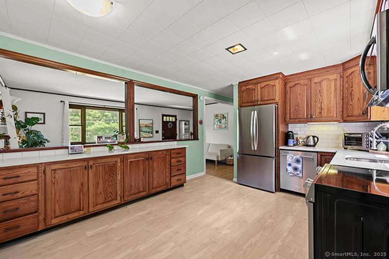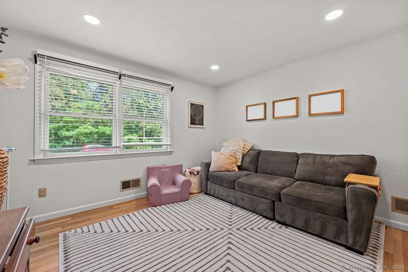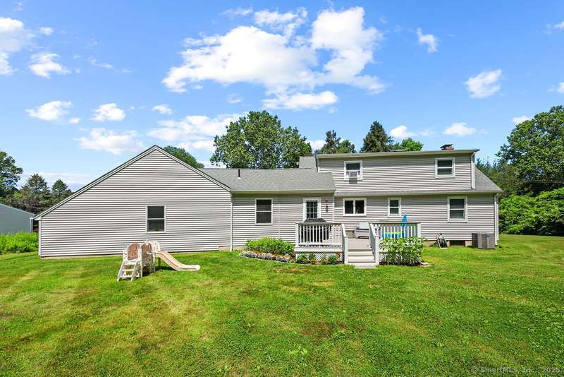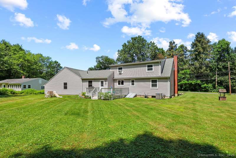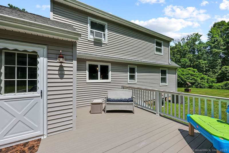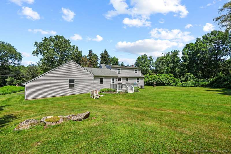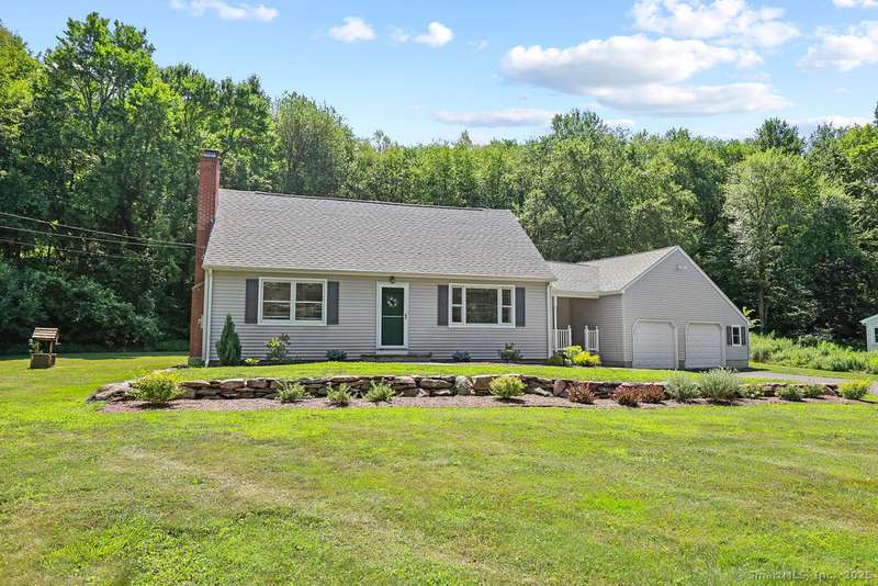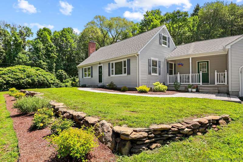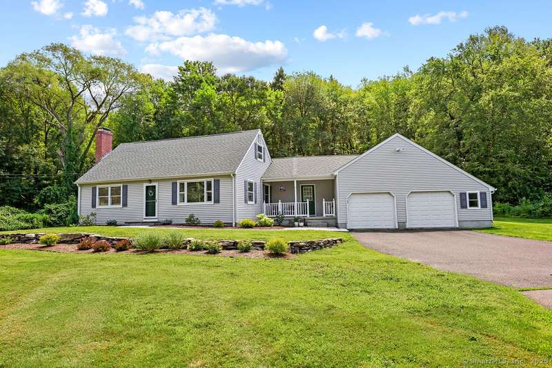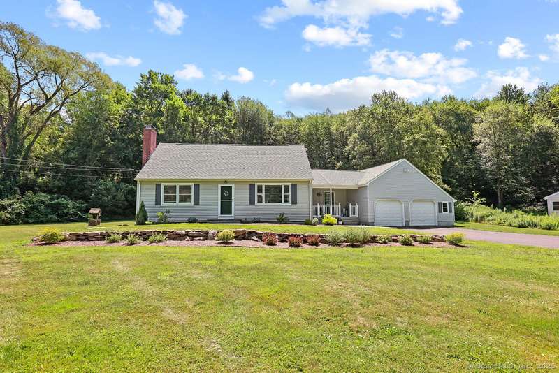 Beautifully remodeled 4 bedroom 2 bath Cape in a perfect setting. The kitchen features quartz counters, tile backsplash, all new appliances and new flooring. The rest of the first floor has hardwood throughout just refinished, a newly remodeled bathroom, dining room and two bedrooms. Upstairs the primary bedroom has plenty of closet space and LVP flooring. There is another newly remodeled bathroom and the 4th bedroom also with plenty of closet space and LVP flooring. The basement has a partially finished rec room and a large work shop with a separate electric panel. The hot water heater, oil tank and AC compressor are all newer. The two car garage walks into a mud room with washer and dryer. Outside you have a Trex deck and a very private backyard in a rural setting. The 4th bedroom is currently being used as a family room.
