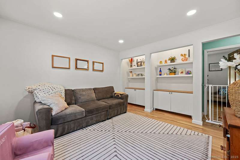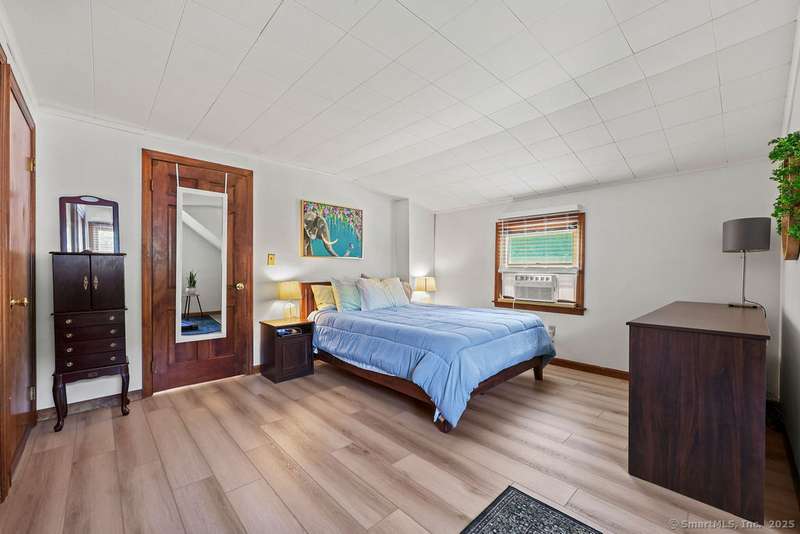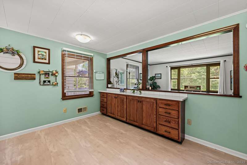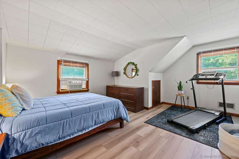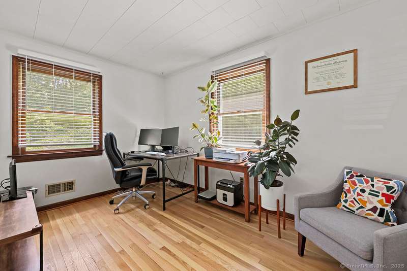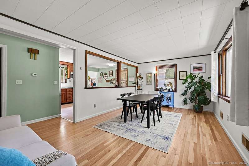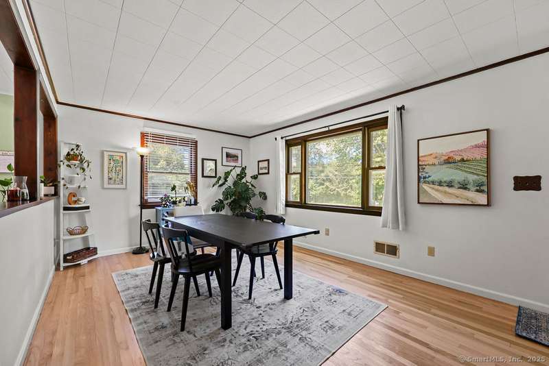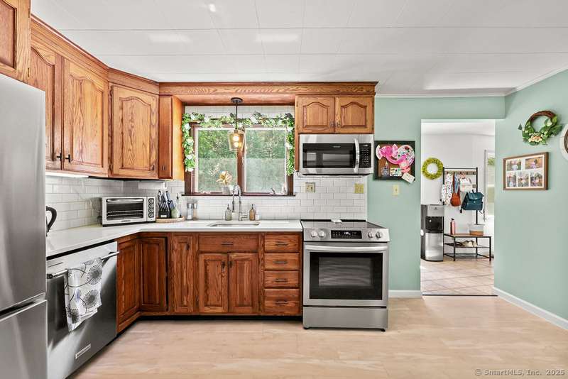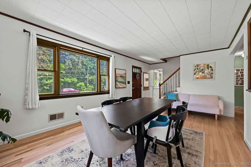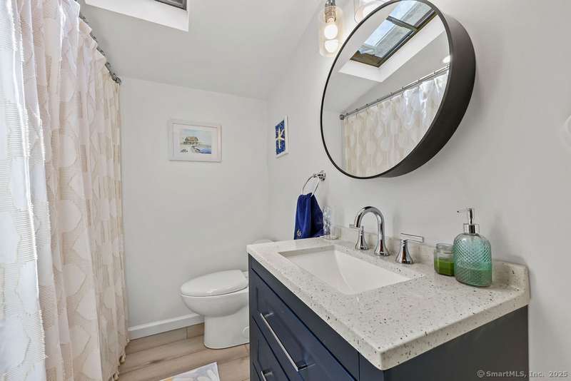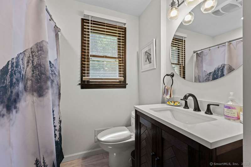 Beautifully remodeled 4 bedroom 2 bath Cape in a perfect setting. The kitchen features quartz counters, tile backsplash, all new appliances and new flooring. The rest of the first floor has hardwood throughout just refinished, a newly remodeled bathroom, dining room and two bedrooms. Upstairs the primary bedroom has plenty of closet space and LVP flooring. There is another newly remodeled bathroom and the 4th bedroom also with plenty of closet space and LVP flooring. The basement has a partially finished rec room and a large work shop with a separate electric panel. The hot water heater, oil tank and AC compressor are all newer. The two car garage walks into a mud room with washer and dryer. Outside you have a Trex deck and a very private backyard in a rural setting. The 4th bedroom is currently being used as a family room.
