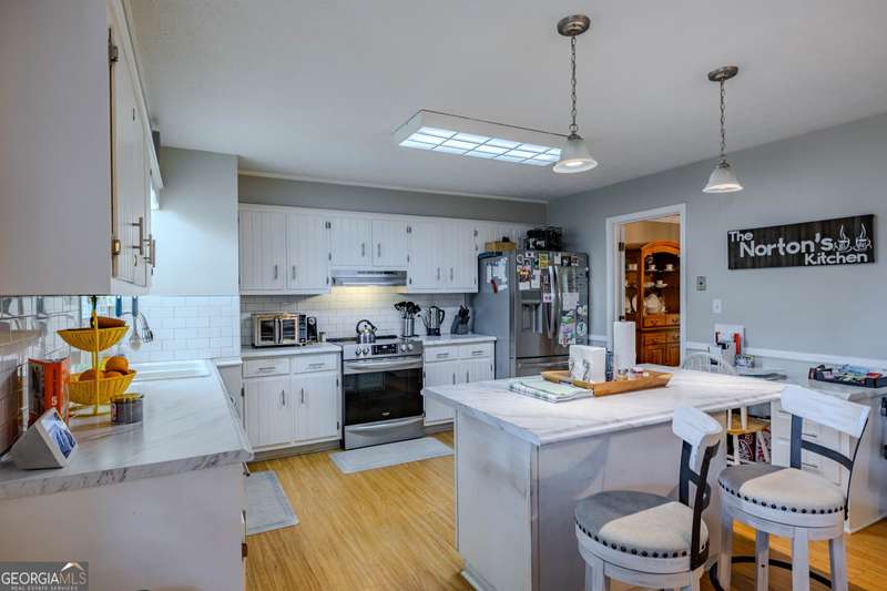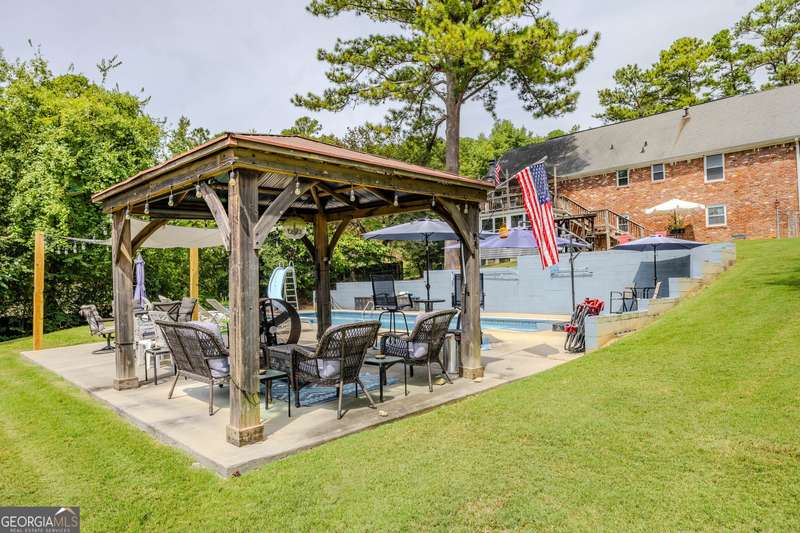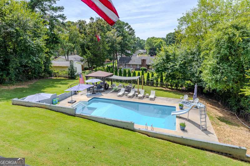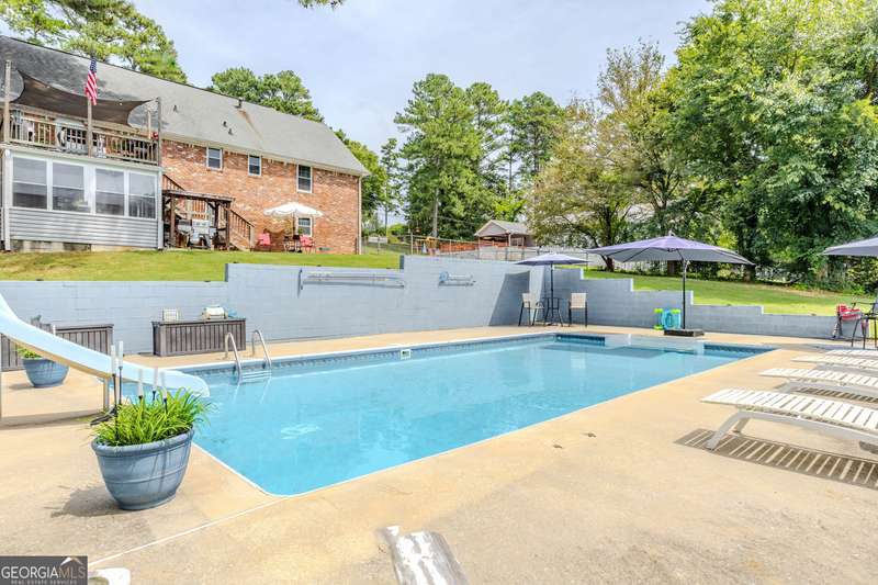 FINISH OUT YOUR SUMMER HERE! All brick house on a large lot with a saltwater pool & multiple fantastic outdoor spaces! Walk into the foyer to a den and dining room & a beautifully remodeled eat-in kitchen. The deck off the kitchen is the perfect place to grill & chill! The primary bedroom has a remodeled ensuite bath. Two additional bedrooms share a full bath. Downstairs find a den with a fireplace & office space that walks out onto a screened porch (can be completely closed off in cooler months). The huge, fenced backyard is an entertainer's dream. Pool & cabana with so much space to hang out with the family and entertain the kids or grandkids!