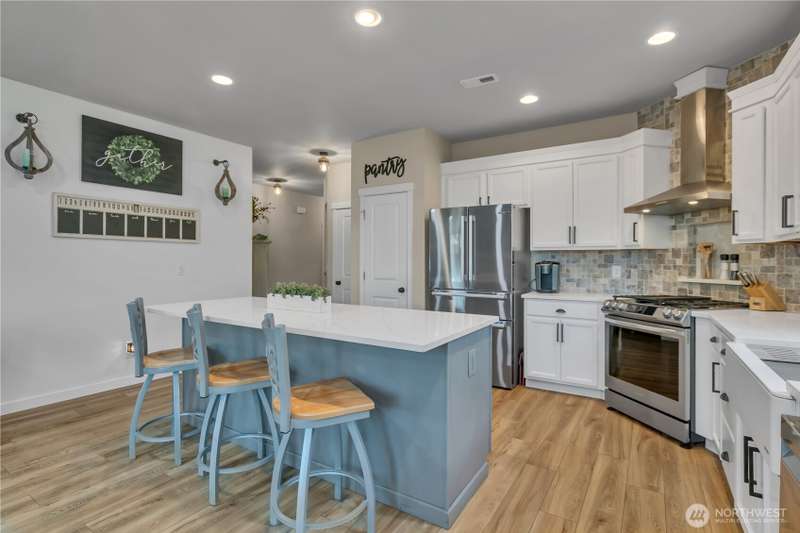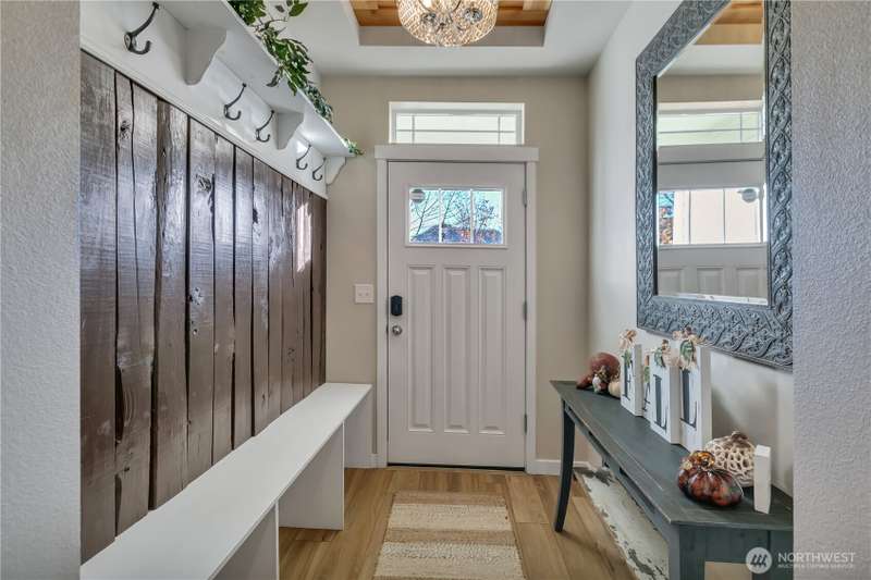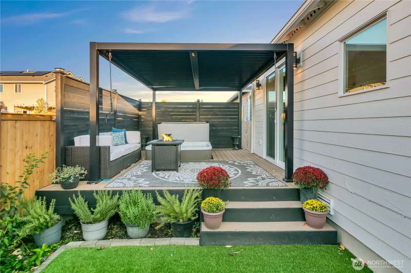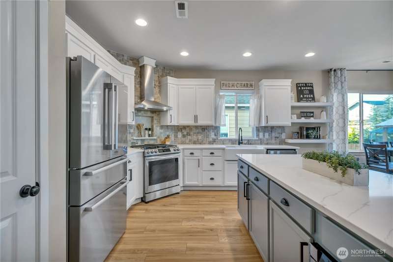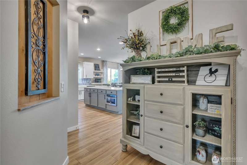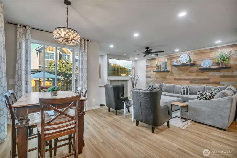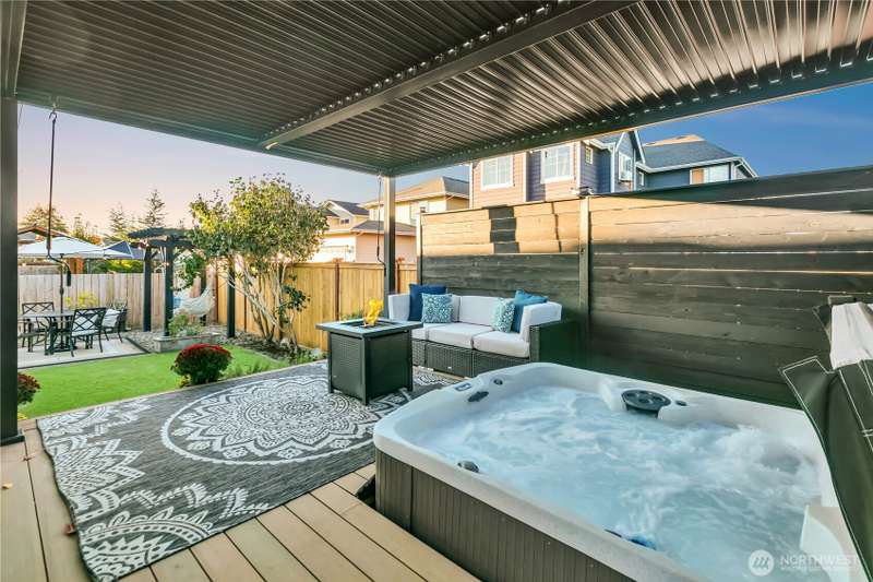 Desirable rambler located at the foothills of Mt Peak & just mins to downtown Enumclaw’s shopping, restaurants & more. Open great room concept thoughtfully designed for entertaining. Upgraded throughout w/durable LVP plank flooring, dining space & gourmet kitchen featuring full height backsplash, quartz, breakfast bar, SS app, gas cooktop & pantry. Primary suite offers spa like en-suite w/coffered ceilings, soaking tub, step-in shower, dual vanity & walk in closet. Relax in the hot tub on covered trex deck, low maintenance turf & bbq area. 2car gar, tankless water heater & ample storage. Excellent investment opportunity. Income producing property, currently offered as VRBO/Short-term rental. Community parks, hiking trails & Enumclaw Schools