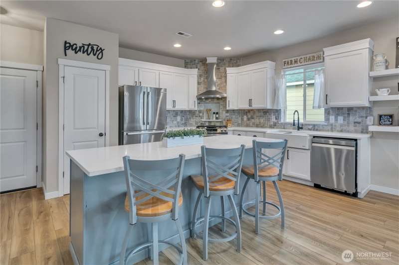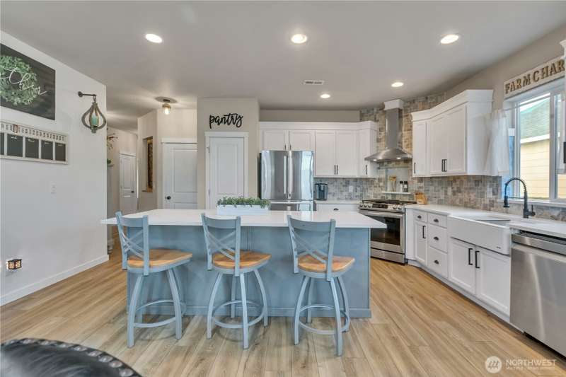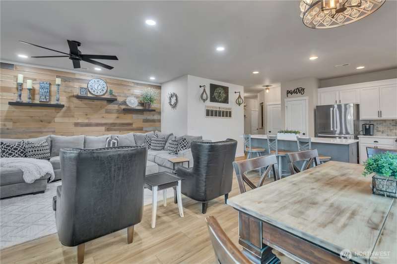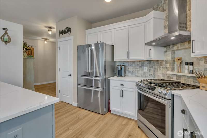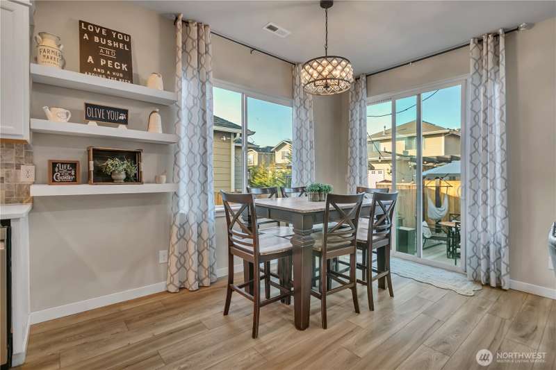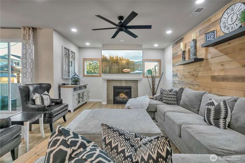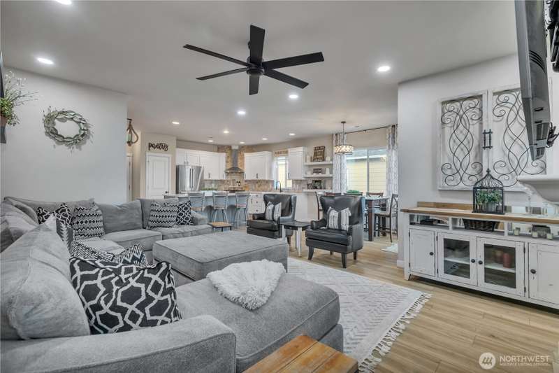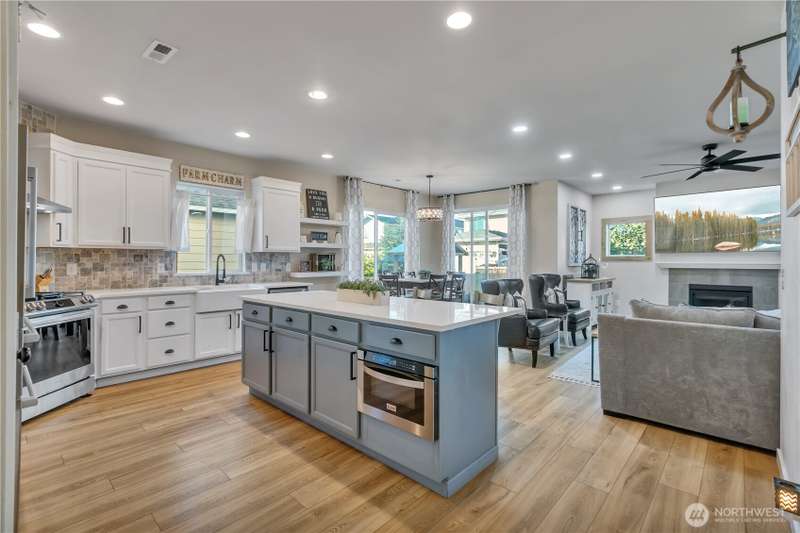 Desirable rambler located at the foothills of Mt Peak & just mins to downtown Enumclaw’s shopping, restaurants & more. Open great room concept thoughtfully designed for entertaining. Upgraded throughout w/durable LVP plank flooring, dining space & gourmet kitchen featuring full height backsplash, quartz, breakfast bar, SS app, gas cooktop & pantry. Primary suite offers spa like en-suite w/coffered ceilings, soaking tub, step-in shower, dual vanity & walk in closet. Relax in the hot tub on covered trex deck, low maintenance turf & bbq area. 2car gar, tankless water heater & ample storage. Excellent investment opportunity. Income producing property, currently offered as VRBO/Short-term rental. Community parks, hiking trails & Enumclaw Schools