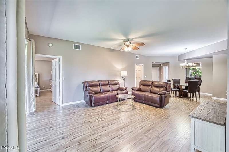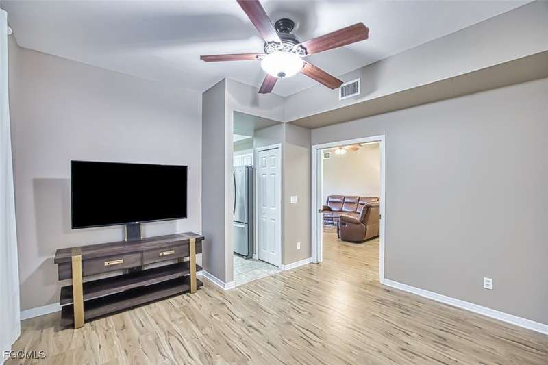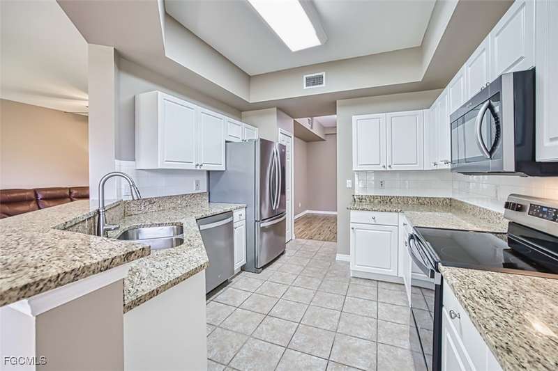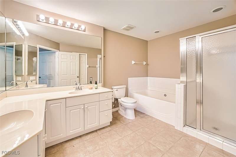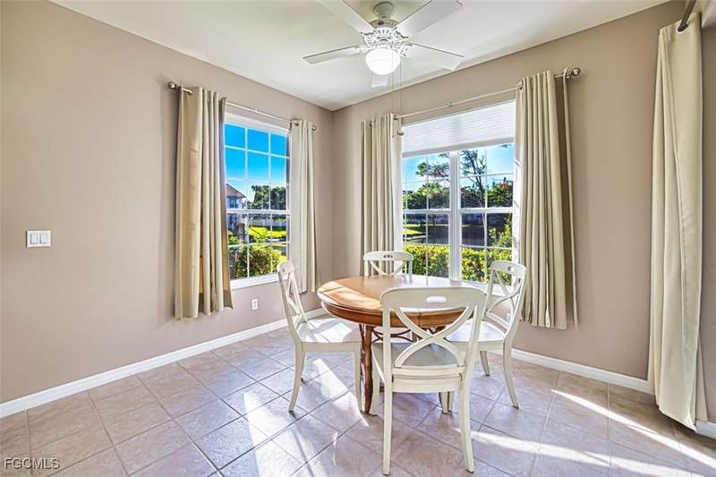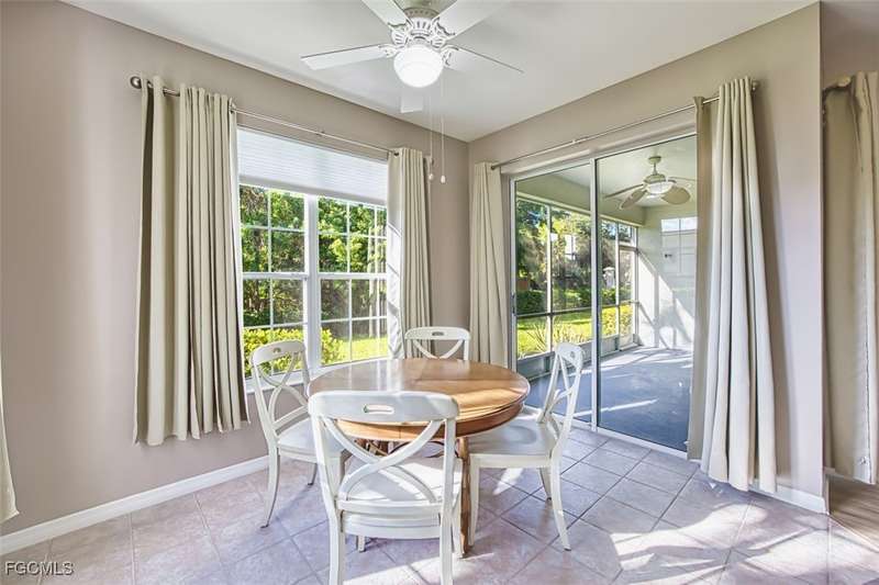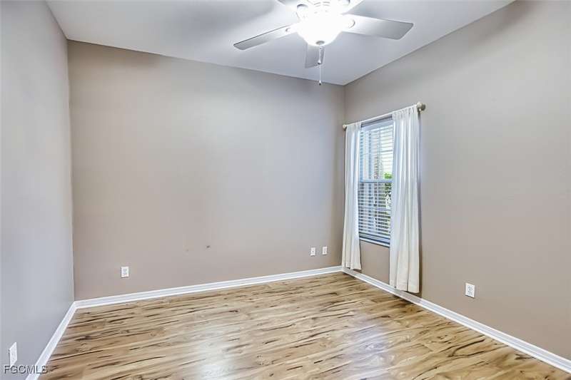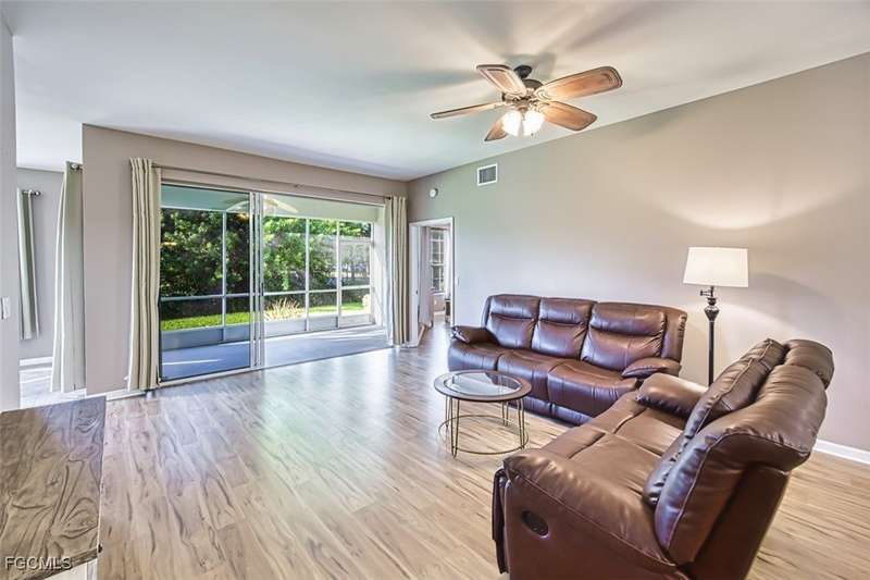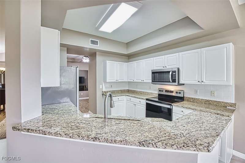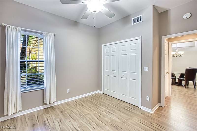 First-Floor Carriage Home in Avalon Bay - Minutes from the Beaches! Ideally situated just off Summerlin Road, this spacious and inviting 2 car garage home offers the perfect blend of comfort, convenience, and coastal living. With no stairs and an end-unit location, natural light fills the space from windows on the East, South and North sides. Featuring a 2-bedroom, 2-bath split floor plan plus a versatile flex room, this home offers both privacy and flexibility. The flex room-perfect for a home office, guest room, or workout space-can be easily closed off with pocket doors for added privacy. Relax and unwind on the large screened lanai with peaceful water views, protected by electric roll-down and accordion storm shutters. The 2-car garage includes extra space for your beach, biking, or fishing gear. Both bedrooms offer ensuite baths for ultimate comfort and convenience, with dual sinks and a soaking tub and shower in the master. Recent updates include New AC and lines (2024), Granite countertops, sink, and lower kitchen cabinets (2024), New laminate flooring (2025). Freshly painted, this clean, move-in-ready home is perfect for seasonal or year-round living. Avalon Bay is a beautifully maintained community that had No Flooding, no-CDD, No City Tax, and replaced all roofs in 2021. Just a short stroll to the clubhouse pool residents enjoy access to tennis courts, spa, fitness center, billiards room, and more. Live minutes from Sanibel and Fort Myers beaches, Lakes Park, HealthPark Medical Center, Golisano Children's Hospital, the public library, farmers markets, top restaurants, and Lee County's extensive bike trail system.