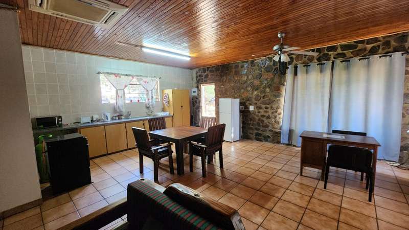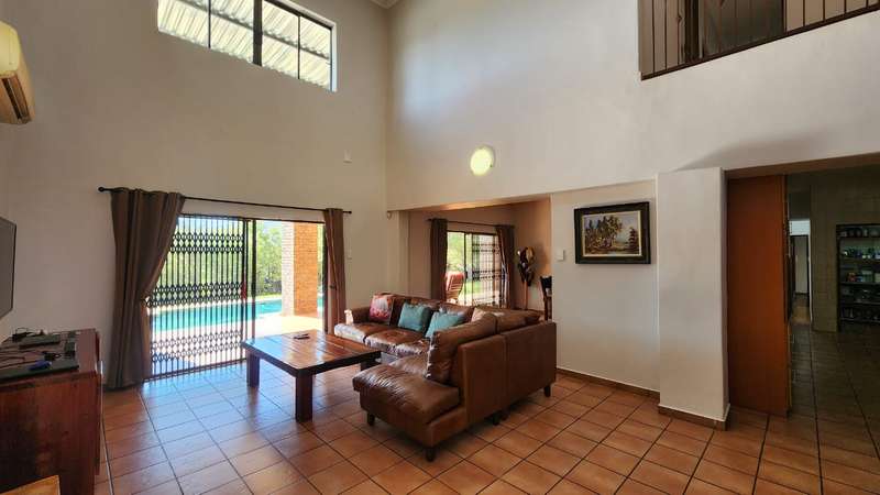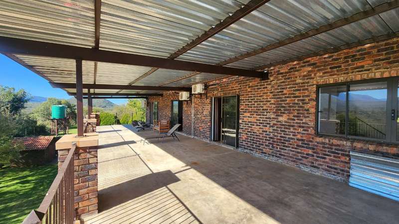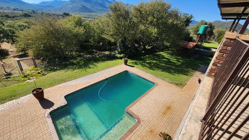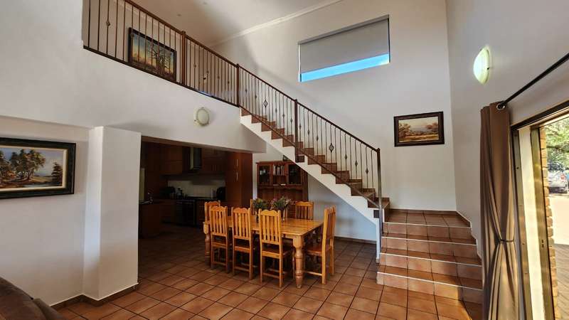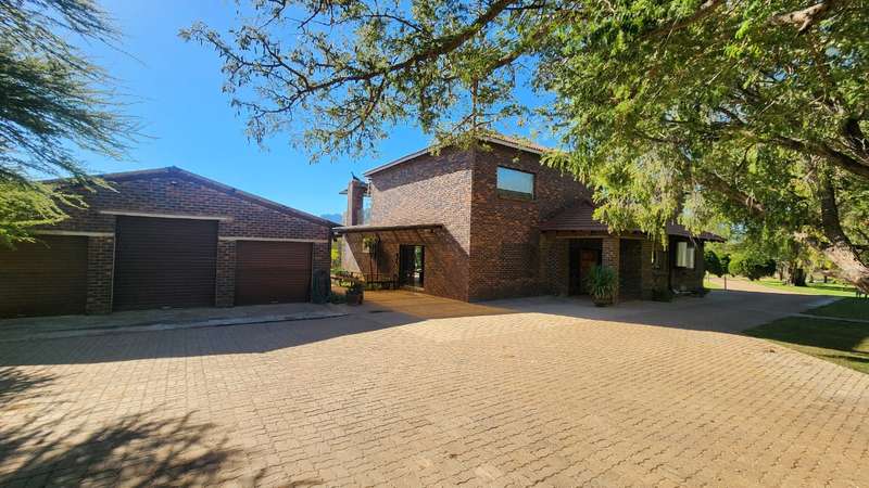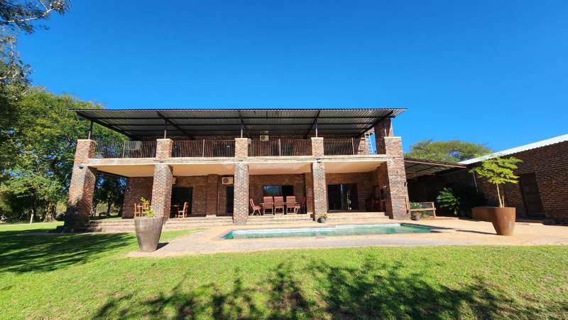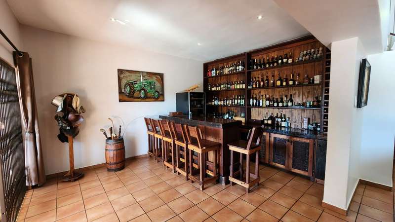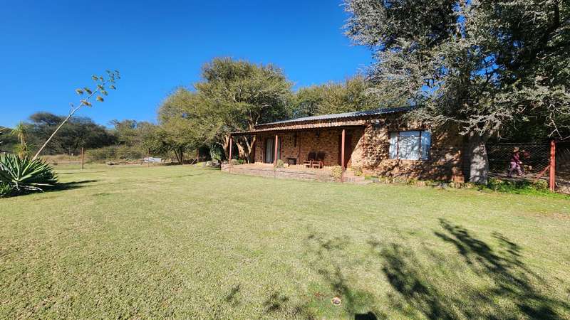 Nestled in the heart of the pristine Bushveld, just 13km from Thabazimbi, this exceptional 9.24-hectare lifestyle property blends rural elegance with modern self-sufficiency and great income potential. Main Residence – Bushveld Luxury A spacious double-storey home designed for comfort, security, and seamless indoor-outdoor living. Features include: 6 Bedrooms – Air-conditioning, built-in wardrobes, ceiling fans, and security gates 4 Bathrooms – Including 2 en-suites with both bath and shower options Open-plan living and dining areas with air-conditioning and direct patio access Stylish bar area and generous entertaining spaces Large kitchen with pantry and separate scullery Two expansive patios – perfect for soaking in mountain views and fresh Bushveld air Rooms open to patios, embracing true indoor-outdoor living Second Residence – Self-Contained Stone Cottage A fully independent 2-bedroom, 1-bathroom cottage ideal for guests, Airbnb, or rental income. Features include: Open-plan kitchen, dining, and lounge Private entrance and fenced garden for peace and privacy Outdoor Living & Natural Beauty Sparkling swimming pool with large entertainment stoep and built-in braai Immaculate, irrigated landscaped garden Cement dam and 5000L water tank by the main house Off-Grid & Secure Living 15kW Solar Power System (3 inverters) with 40kW battery backup 2 Equipped Boreholes (2000L/hr & 5000L/hr) – solar-powered (with Eskom backup) 2 Additional Unequipped Boreholes Eskom point for backup electricity Electric game fencing for security Garages & Additional Infrastructure Triple garage at the main house Double garage at the outbuildings 2 Large storage rooms 3 Labour quarters Expansive store area – ideal for tools, equipment, or business use A Rare Bushveld Lifestyle Opportunity Meticulously maintained and ready to move in, this property offers a secure, versatile, and income-generating lifestyle in one of Limpopo’s most desirable rural areas. Viewing strictly by appointment only. Contact us today to arrange a private viewing!