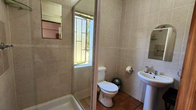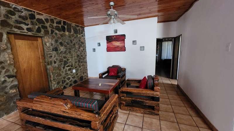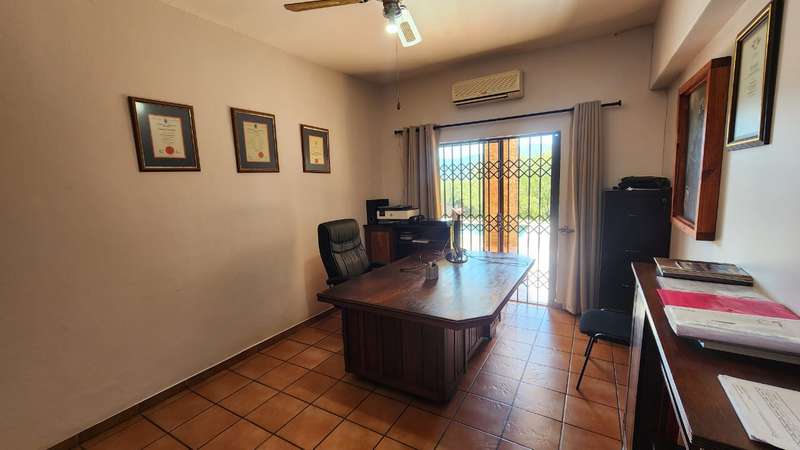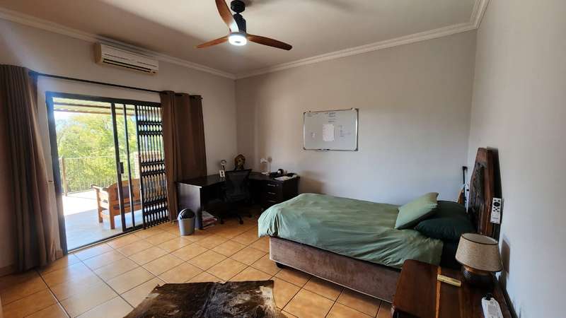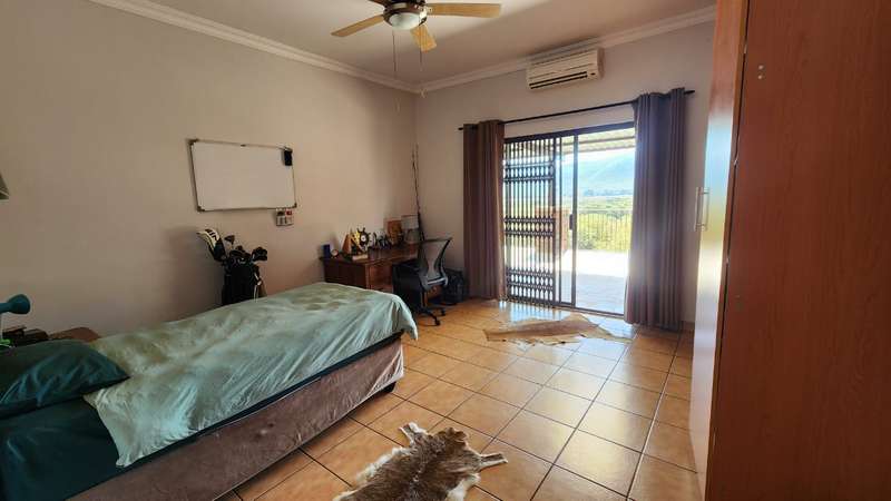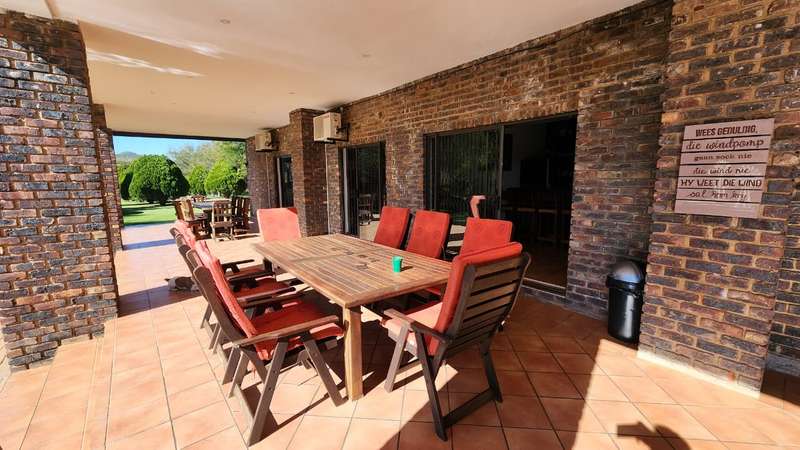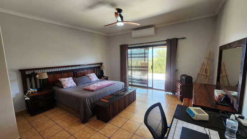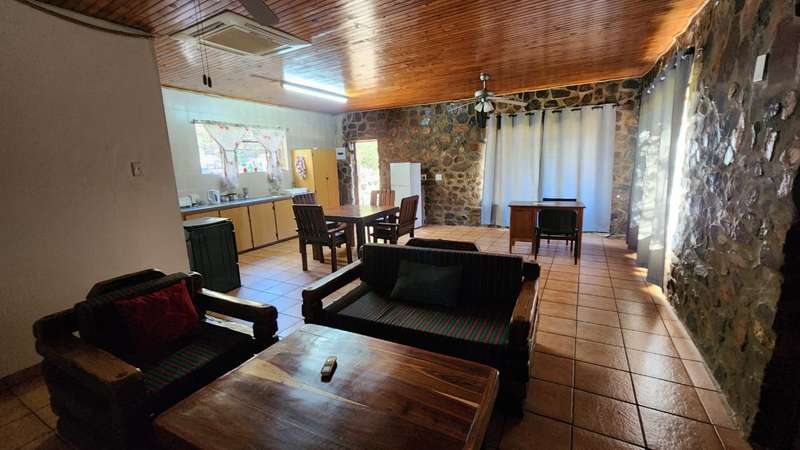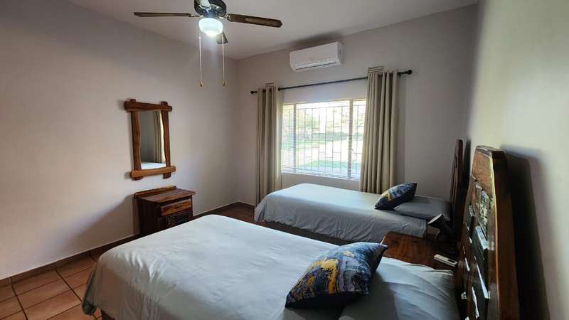 Nestled in the heart of the pristine Bushveld, just 13km from Thabazimbi, this exceptional 9.24-hectare lifestyle property blends rural elegance with modern self-sufficiency and great income potential. Main Residence – Bushveld Luxury A spacious double-storey home designed for comfort, security, and seamless indoor-outdoor living. Features include: 6 Bedrooms – Air-conditioning, built-in wardrobes, ceiling fans, and security gates 4 Bathrooms – Including 2 en-suites with both bath and shower options Open-plan living and dining areas with air-conditioning and direct patio access Stylish bar area and generous entertaining spaces Large kitchen with pantry and separate scullery Two expansive patios – perfect for soaking in mountain views and fresh Bushveld air Rooms open to patios, embracing true indoor-outdoor living Second Residence – Self-Contained Stone Cottage A fully independent 2-bedroom, 1-bathroom cottage ideal for guests, Airbnb, or rental income. Features include: Open-plan kitchen, dining, and lounge Private entrance and fenced garden for peace and privacy Outdoor Living & Natural Beauty Sparkling swimming pool with large entertainment stoep and built-in braai Immaculate, irrigated landscaped garden Cement dam and 5000L water tank by the main house Off-Grid & Secure Living 15kW Solar Power System (3 inverters) with 40kW battery backup 2 Equipped Boreholes (2000L/hr & 5000L/hr) – solar-powered (with Eskom backup) 2 Additional Unequipped Boreholes Eskom point for backup electricity Electric game fencing for security Garages & Additional Infrastructure Triple garage at the main house Double garage at the outbuildings 2 Large storage rooms 3 Labour quarters Expansive store area – ideal for tools, equipment, or business use A Rare Bushveld Lifestyle Opportunity Meticulously maintained and ready to move in, this property offers a secure, versatile, and income-generating lifestyle in one of Limpopo’s most desirable rural areas. Viewing strictly by appointment only. Contact us today to arrange a private viewing!