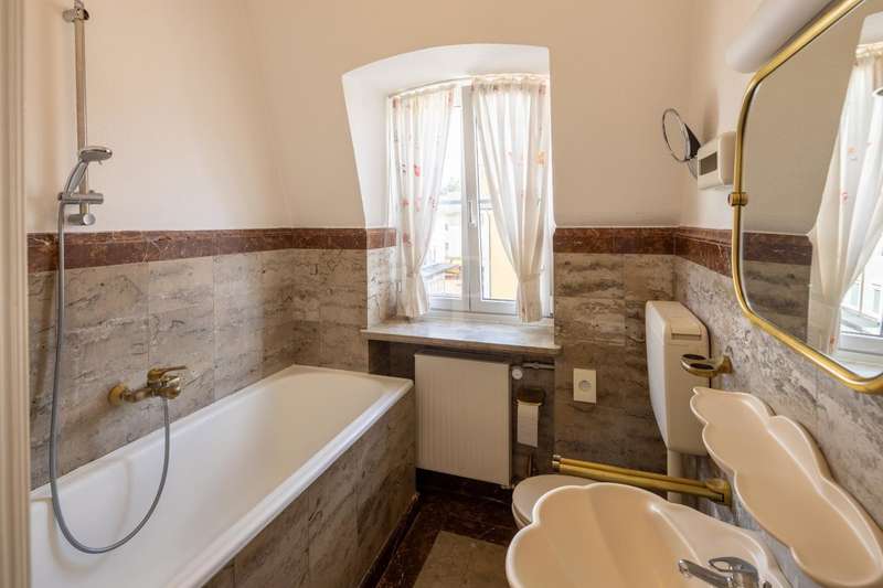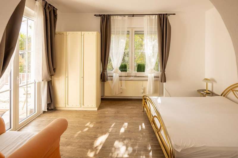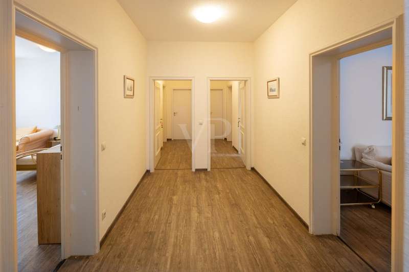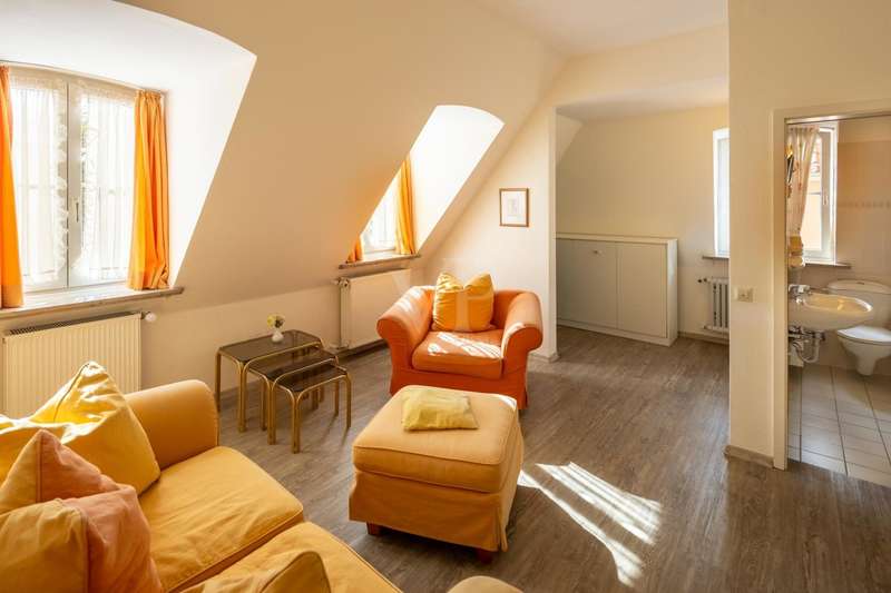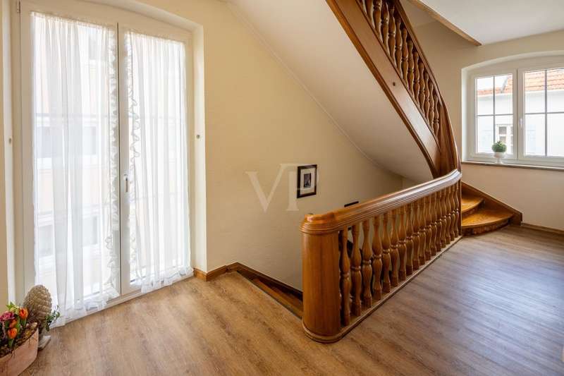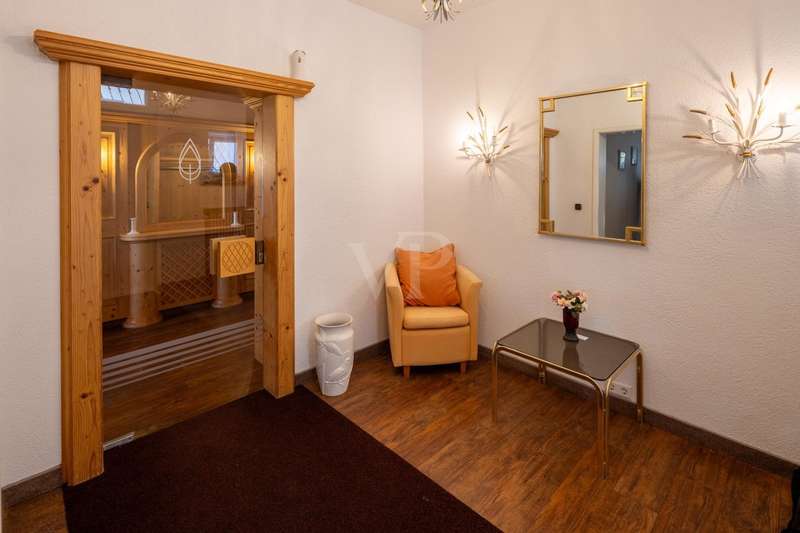 The property on offer here, built in 1949, combines versatility and functionality, packaged in a very charming villa style. It is ideally suited as a boarding house, for the hotel & catering sector, as well as for a wide variety of practice concepts and also offers residential options. The 1st & 2nd upper floors have a total of 11 spacious and extremely bright rooms. 10 of them have their own bathroom with bath and/or shower. The rooms are therefore ideal for use as a boarding house, for example, as they guarantee both privacy and comfort for potential guests. However, the room layout also offers perfect conditions for use as a practice or for living. The existing infrastructure helps you to flexibly adapt your business model and meet any new requirements. There is a fully equipped restaurant on the first floor, which currently consists of four dining rooms, a kitchen and a bar and offers space for around 100 guests. A pleasant ambience with lots of wood and a modern and rustic style make the first floor appear warm and cozy and ensure a pleasant feeling of space. The combination of restaurant and living area opens up the possibility of living and working directly on site. In addition, the building has a full basement and thus offers further generous storage space, cooling and sanitary areas, as well as the boiler room. The excellent location of this versatile property deserves special mention. Situated in a side street in the center of the pedestrian zone, you are right in the middle of the action and also benefit from the pleasant peace and quiet. Do not hesitate to contact us for more information about this exciting property or to arrange a viewing. This property could become your ideal base for a successful business and residential project.