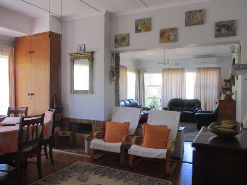 SOLE MANDATE FAMILY HOME WITH GOOD LOCATION, LARGE ERF AND AMPLE GARAGES / STORAGE This 3-bedroom house is ideally located and close enough for students walking to school. This corner plot is walled all around with 2 access gates from around the corner. A collector or someone looking for ample parking or storage, will be relieved to find a property like this. The garden is established and well maintained and so is the outdoor premises very neat and paved. The large erf provides for extensions or the building of a freestanding cottage for Granny! A studio/office, with a separate sliding door and safety gate, makes working from home convenient. It also has direct access into the house. The lounge and dining rooms are spacious. There is a fireplace in the dining room. The house has wooden floors in the living areas. Some rooms have an aircon. All 3 bedrooms have built-in cupboards and 1 also has an ensuite bathroom. The kitchen is equipped with lots of cupboards and a gas hob and electric eye-level oven. The pantry is a bonus and much appreciated and so is the spacious scullery and laundry. Both these rooms exit from the kitchen. The elevated stoep at the back is where you will enjoy the afternoon sun in winter. There is also a built-in braai. This property offers many opportunities - don't mis out!