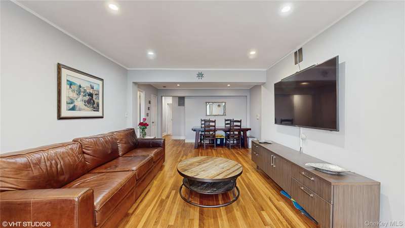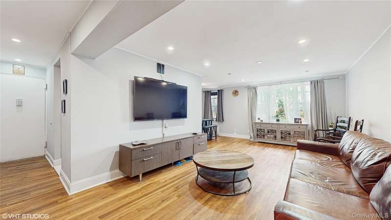 Experience refined living in this expansive 3-bedroom, 2-bath co-op, offering a harmonious blend of comfort, style, and convenience. Featuring rich hardwood flooring throughout, this beautifully maintained home includes a thoughtfully updated kitchen with modern finishes and two fully renovated bathrooms. The well-designed layout boasts a dedicated dining area ideal for entertaining, along with bright exposures that fill the home with natural light. The primary bedroom features a private en-suite bath, providing a peaceful retreat with added privacy and comfort. Each bedroom offers generous dimensions and large closets, while multiple hallway closets ensure abundant storage space. A rare highlight of this property is the exclusive access to a private pool, perfect for relaxing or entertaining in the warmer months.