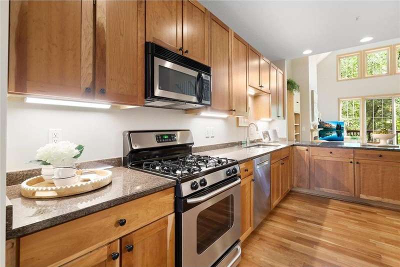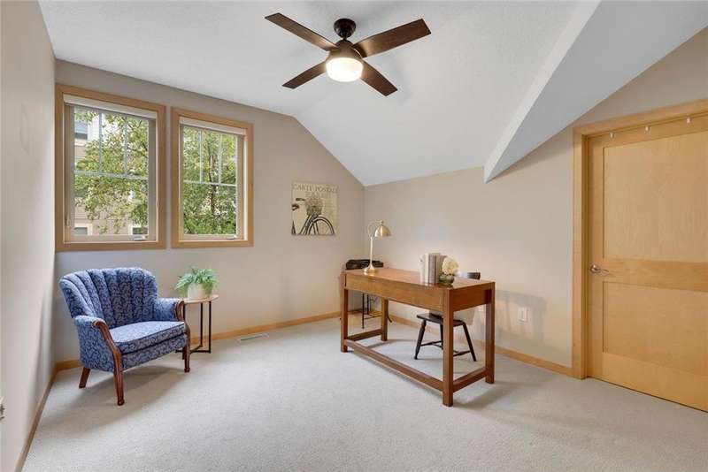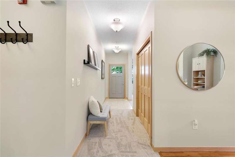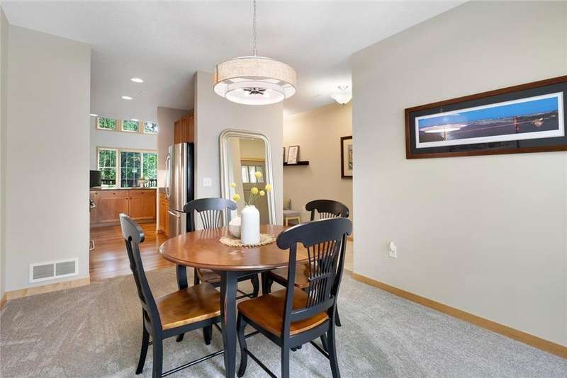 Welcome to a rare opportunity for refined, executive one-level living along Nine Mile Creek and Moir Park. This exceptional residence is defined by its superior fit and finish, with soaring vaulted ceilings, a dramatic two-story wall of windows, and timeless architectural detailing that frame inspiring natural views. Every space is designed with care—from the chef’s kitchen with granite countertops, breakfast bar, and rich cabinetry, to the elegant formal dining room and the inviting living area that flows seamlessly to the outdoors. The main-floor primary suite offers a serene retreat, where abundant morning light and tree-lined views create a spa-like atmosphere. Upstairs, two spacious bedrooms with walk-in closets share a beautifully appointed full bath, while a versatile loft-style family room provides flexibility for a private office, guest retreat, or creative space. A dedicated storage and hobby room adds the final touch to the thoughtful design of the upper level spaces. Enjoy gatherings on the expansive main-level deck, surrounded by mature trees that provide privacy and natural beauty. The unfinished lookout lower level offers limitless potential to expand the home to nearly 3,000 sq. ft., while the fully finished and insulated 2-car garage reflects the same level of care seen throughout. Set within one of West Bloomington’s most desirable enclaves, this home offers direct access to Moir Park’s trails and amenities—soon to be enhanced by a transformative $20M renewal project—ensuring a lifestyle that blends convenience, recreation, and sophistication. Pride of ownership is evident in every detail of this spotless, move in ready home.