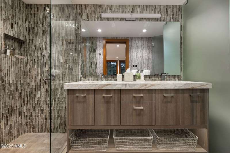 Tucked within one of Vail Village's most historic and coveted neighborhoods, this exceptional residence offers the rare opportunity to live steps away from world-class skiing, dining, and entertainment-while enjoying the privacy and serenity of a tucked-away mountain retreat. Originally designed by renowned architect Gordon Pierce and recently reimagined by one of the most respected names in contemporary alpine design, Kyle Webb, this home has undergone a complete transformation. Every detail was meticulously curated by a discerning team: the architect, the owner, and a talented interior designer who also owns in the neighborhood. The result is a masterwork-blending timeless mountain character with fresh modern luxury. From the moment you arrive, the exterior's elegant stonework and striking entrance set the tone: this is a residence of significance. Inside, large windows and open spaces invite natural light and mountain views. The interiors are warm, sophisticated, and artfully tailored-enhanced by the owner's personal collection of art that perfectly complements the home's gallery-like openness. The main living area seamlessly opens onto a thoughtfully designed wraparound patio, complete with a firepit, water feature, and vibrant garden landscaping. 5 bedrooms, including a sun-drenched primary suite with a spa-like bath and large walk-in closet, 4 guest suites with ensuite bathrooms, one currently doubling as a home gym, and a lovely top floor guest suite with private walk-out patio - ideal for peaceful morning coffee or evening stargazing. Highlights of other spaces include a chef's kitchen beautifully appointed for entertaining, mudroom and two laundry areas. Surrounded by regal pine trees, the home is a seasonal sanctuary-lush and vibrant in summer, softly insulated in winter. With deep roots in Vail's architectural history and a renewed sense of modern elegance, this home is not just a residence-it is a legacy.