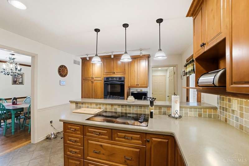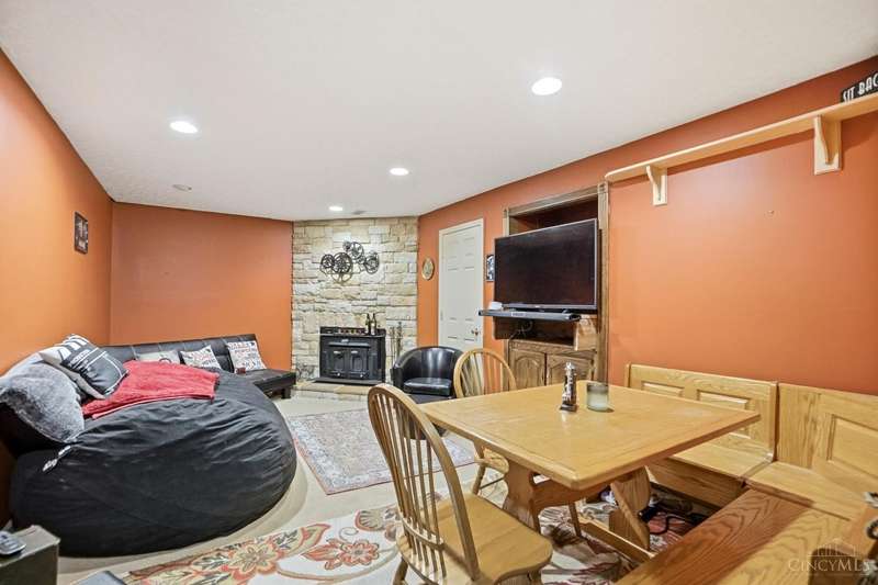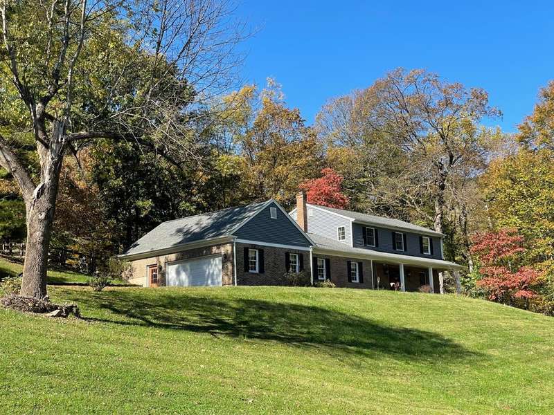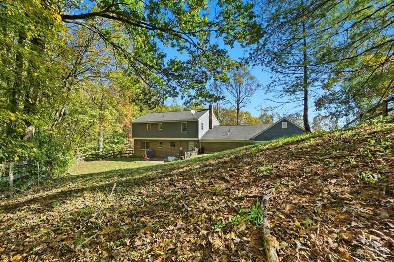 Just Hit the Market! Tucked away in a peaceful 1 acre wooded setting on private drive, this home offers the perfect blend of seclusion and space. A charming front porch invites you to relax and take in the serene surroundings. Step inside to a sprawling living rm and formal dining rm-perfect for entertaining. The updated kit is a chef's dream, with custom wood cabinetry, double oven, counter bar & plenty of prep space. Upstairs, you'll love the spacious primary suite w/adjoining bath & walk-in closet. The Fin LL offers a cozy family rm w/stacked stone wbfp, the perfect spot for movie nights or holiday gatherings. Step outside to a paver patio and fenced-in backyard-ideal for pets or play. And, don't miss the HUGE 5-car tandem garage-a rare find with ample storage space for car enthusiasts or workshop! Septic Pump 2025, Driveway 2023, Siding 2018, Roof 2017, Electric Panel 2015, Fence 2015, and Water Heater 2015. $300 yearly fee (private drive maintenance).