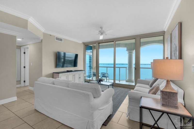 This 2 bedroom, 2.5 bath condominium on the 17th floor offers panoramic views to the east and west of the Intracoastal Waterway, providing a picturesque backdrop for your daily life. As you step inside, you'll be greeted by a spa-like interior that exudes tranquility and relaxation. The beautiful freshly painted condo creates a serene atmosphere, while the open layout enhances the sense of space and light throughout the condo. Floor-to-ceiling windows allow natural light to flood the living spaces, creating a bright and airy ambiance. The full wall height sliding doors seamlessly connect the indoor and outdoor areas, leading to an extensive balcony where you can soak in the breathtaking views of dolphins and water activities. Whether you are looking for a primary residence, a second home, or a low-maintenance retreat, this condo offers unmatched comfort, stunning views, and premium amenities. Our European Spa and Lifestyle Center offers state of the art fitness area, treatment rooms, indoor spa, separate his and hers spa areas (with dry sauna, steam room, showers, lockers and lounge area), 2 lagoon pools with spas overlooking the intracoastal waterway and Indoor Olympic size lap pool. Enjoy indoor dining at Coastal or relaxing poolside dining from Al Fresco Bar and Grill. Play tennis on one of 5 Rubico clay surface courts. Each Tower has its own Pool and Hot Tub. All of this is on-site for your convenience, as well as a variety of water sport rentals, bikes ,mini cars, and golf carts. This is the only gulf front unobstructed western view on the market.