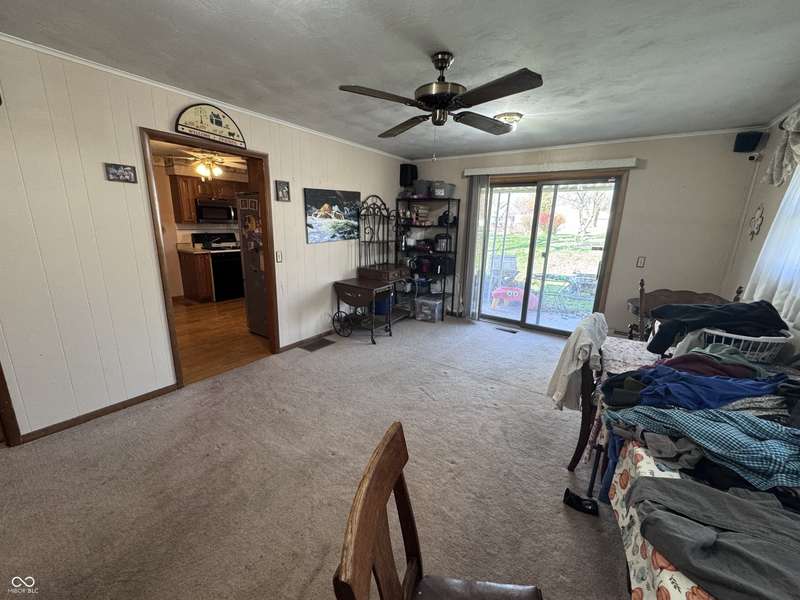 This is the home one always drives by & admires. Sitting far off of the road on 2.33 acres with rolling land surrounding it. Your very own park-like setting, right across the street from Milligan Park and around the corner from the Crawfordsville golf course. TWO OWNER, custom built, full brick ranch home w/WALK-OUT basement. An updated kitchen that has the sink situated under a window so that you can have views of the back yard. Slide out spice rack, lazy susan, & pantry complete this space. Appliances included. Formal living, family & dining rooms on the main level, plus ample space in the basement for a rec room, office, workshop, or more. The family room features a sliding glass door that leads to the covered patio. Bonus rooms in the basement. 2 outbuildings + a shed. 20x24 shop w/separate electric meter & heated by woodstove. Metal 22x18 building w/one garage door. Most carpeted rooms have hardwoods underneath- excluding the family room. Wood stove in basement will heat entire home. Home has hot water boiler heat plus an air handler for the central air.