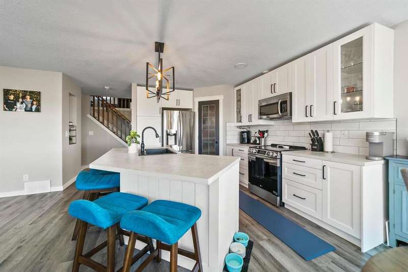 Nestled in the desirable community of Southwest Meadows, is this stunning completely renovated 2 storey dream home. The open concept design is perfect for entertaining, with a spacious living room, dining area, and a bright kitchen with modern cabinetry, quartz counters, vinyl plank floor, walk-in pantry and centre island. Also on the main floor you will find a powder room, laundry area and patio doors that lead you to the back deck for your West facing fantastic view. Upstairs, you'll find a den/office area(or 4th bedroom), bonus space, 3 bedrooms, and a additional 4pc bathroom. The primary suite is an elegant space to unwind from the day. It includes an amazing and thoughtfully designed walk-in closet and a luxurious 4-piece ensuite with soaker tub. The lower level is finished and includes a family room, bedroom and 3pc bathroom. With a fenced landscaped yard with no neighbours behind, large deck, shed, A/C, double heated garage and much more, this home is perfect for growing family.