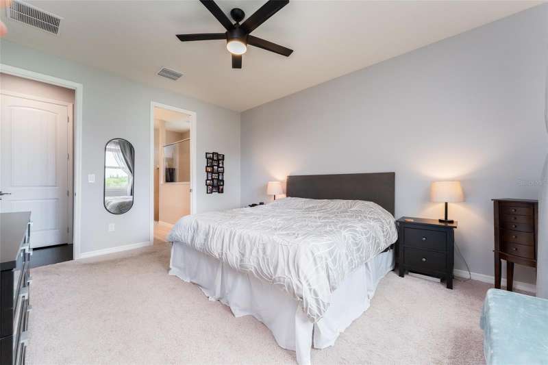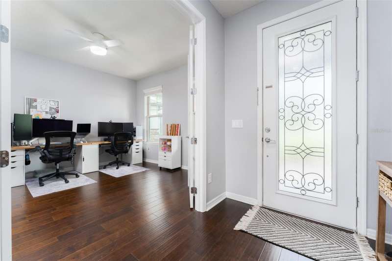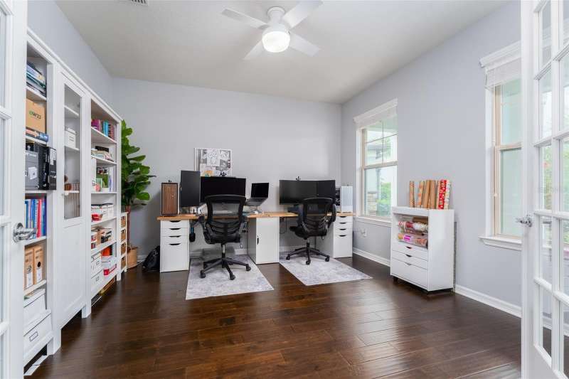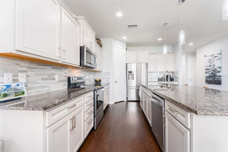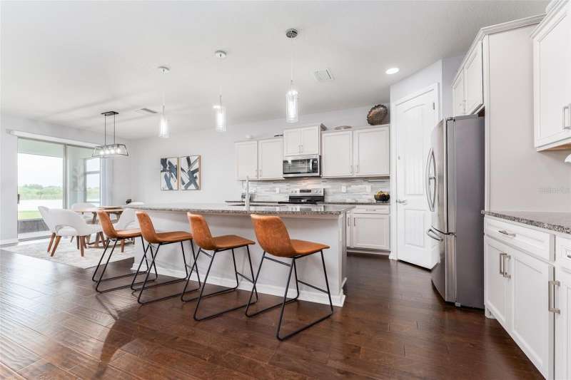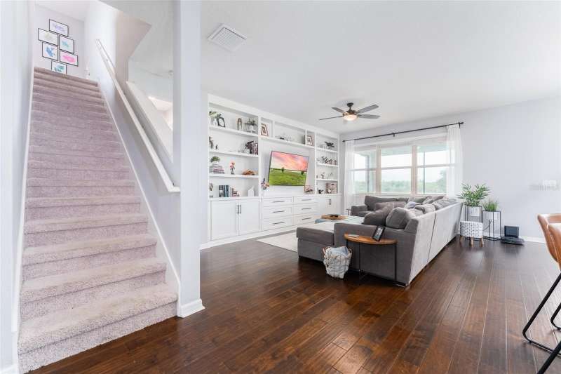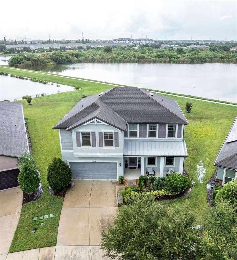 Under contract-accepting backup offers. STUNNING HOME IN GATED COMMUNITY WITH PANORAMIC WATER VIEWS! Experience the beauty and serenity of nature & bird watching in this beautiful home located in the highly sought-after gated community of Magnolia Park. This residence boasts an impressive open floor plan with 2,927 square feet of living space, featuring four spacious bedrooms, three of which are equipped with walk-in closets for ample storage. Also included are downstairs Bonus Room/Den and Huge Loft. Exceptional interior features include the upgraded kitchen, showcasing 42-inch cabinets, stainless steel appliances, granite countertops, and a stylish ceramic backsplash. Beautiful wood flooring flows throughout the entire downstairs, creating a warm and cozy environment. The spacious living room has large windows overlooking the water, allowing in natural light, and is well-appointed with custom built-in wall shelving and cabinets, providing both functionality and style. The first-floor primary bedroom suite offers a luxurious retreat with windows overlooking the water, spacious walk-in closet, plus en-suite bathroom complete with a double vanity and a deep walk-in shower. The foyer entry features a light-catching French glass door and a downstairs front room, perfect for a home office or den. Upstairs, you'll find a very spacious loft that serves as a great gathering or relaxing space, ideal for family activities, along with a large storage closet. You will be amazed by the space in the additional bedrooms, two of which include large walk-in closets. The guest bedroom upstairs offers beautiful, peaceful water views. Step outside to your screened-in lanai, where you can enjoy serene views of the pond and the large backyard. Hurricane Shutters are included for extra peace of mind during storm season, and the home is not located in a Flood Zone. The community offers a wealth of amenities, including three pools, playgrounds, a splash pad, and basketball courts, ensuring endless recreational opportunities for residents. With maintenance-free lawn care included in the HOA fees, you can spend more time enjoying the peaceful surroundings and less time on upkeep. This home is ideally located close to major commuter routes, making it a perfect choice for those seeking convenience without sacrificing tranquility. Don't miss the chance to make this stunning home in Magnolia Park your own!
