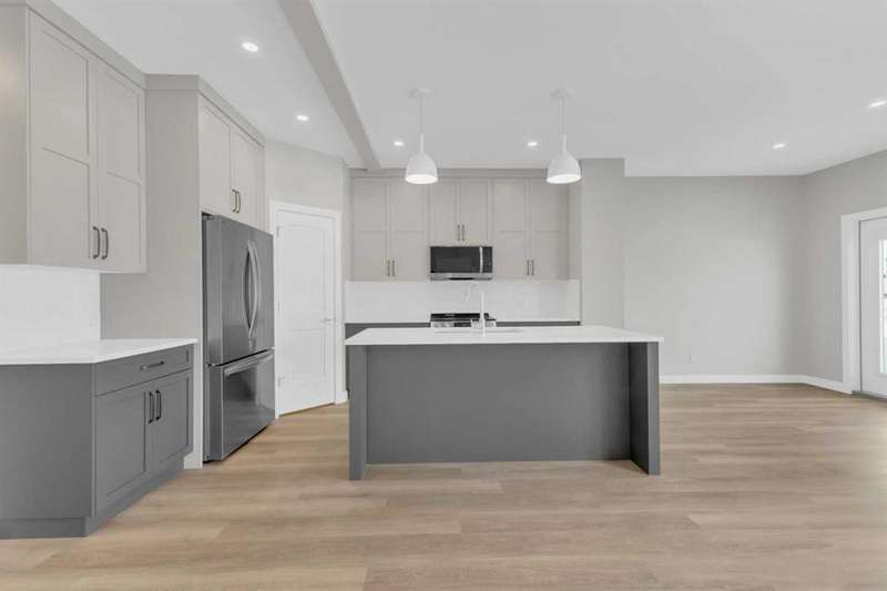 This stunning brand-new build by Abbey Platinum Master Built offers 1,586 sq. ft. of stylish open-concept living upstairs, plus a fully self-contained legal basement suite for extended family. The main home features 3 bedrooms, 2.5 bathrooms, vaulted ceilings, recessed pot lighting, and durable vinyl plank flooring. The bright kitchen is beautifully finished with quartz countertops and brand-new appliances, including a fridge, stove, microwave, and dishwasher. The one-bedroom, one-bathroom basement suite boasts its own entrance, furnace, hot water tank, and matching set of brand-new appliances—perfect for privacy and independence. Outside, enjoy the convenience of a 22’ x 24’ attached garage and the confidence of Abbey Platinum’s exceptional craftsmanship. Whether you’re looking for a stylish new home with space for family or a smart investment opportunity, this property delivers the best of both worlds.