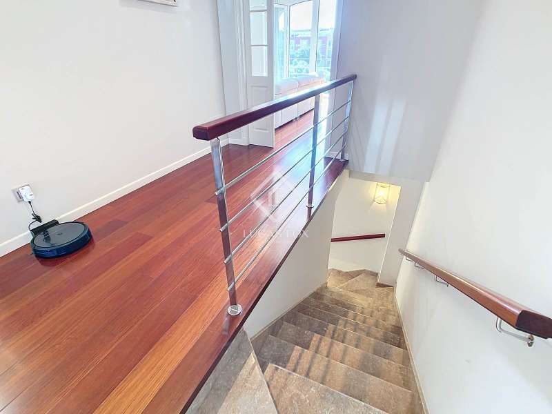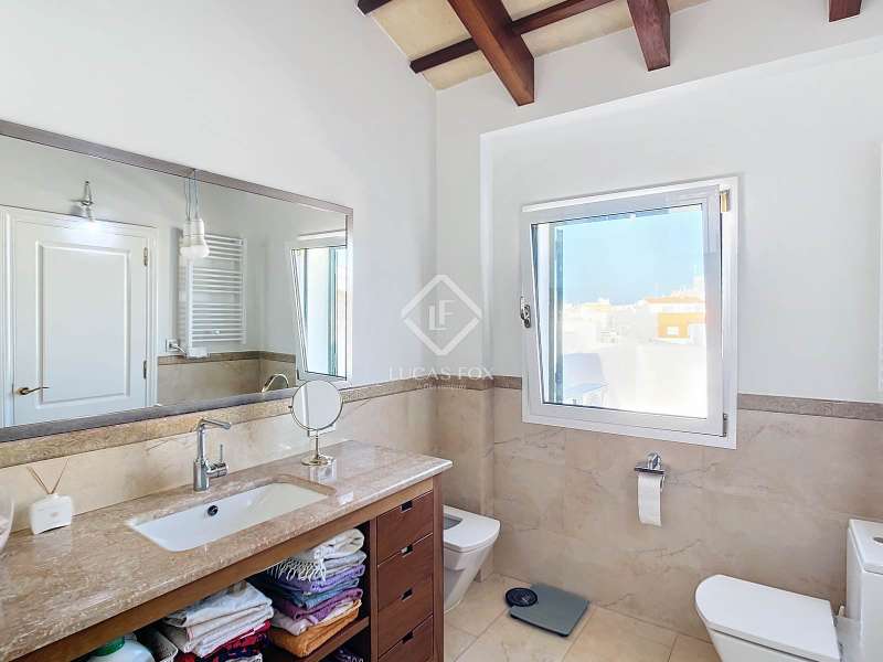 Lucas Fox presents this wonderful, fully renovated 374 m² house on a 165 m² plot , located very close to the historic centre of the city of Ciutadella de Menorca. The 261 m² property is spread over three floors. On the ground floor, we find an entrance at street level with marble stairs that lead us to the first floor. On this same ground floor, we have a 113 m² garage with the possibility of converting it into a commercial premises or apartment, which also has a room used as a study/ storage room, a bathroom and a 25 m² patio. On the first floor of 96 m², we have a nice entrance hall, a fully equipped open kitchen, dining room- living room with access to a pleasant 50 m² patio-terrace, two double bedrooms with access to a balcony and a bathroom with a travertine countertop. Going up the same marble staircase, we reach the second floor , also of 96 m², with wooden floors, where we find a pleasant kitchen diner, a living room with fireplace and hot/cold air splits, and access to the balcony, a full bathroom and two double bedrooms. Through a beautiful wooden staircase we reach the top floor of 49 m² where we have the main bedroom, with high sandstone ceilings and exposed beams, a dressing room and a travertine marble bathroom , as well as access to two pleasant terraces of 20 m² and 15 m² each. The property is in good condition, furnished and with many possibilities. It has pre-installation of hot/cold air conditioning, marble floors, parquet, built-in wardrobes and double-glazed exterior carpentry. The house offers the possibility of making a horizontal division and separating it into two floors, one on the first floor and the other duplex on the second floor. The garage is prepared for commercial premises and with the possibility of adapting it to a property. It has a sale price of €165,000, not included in the sale price of the house. Without a doubt, an ideal property to live in all year round, or spend long periods of time. Please contact us for more information, or to arrange a viewing.