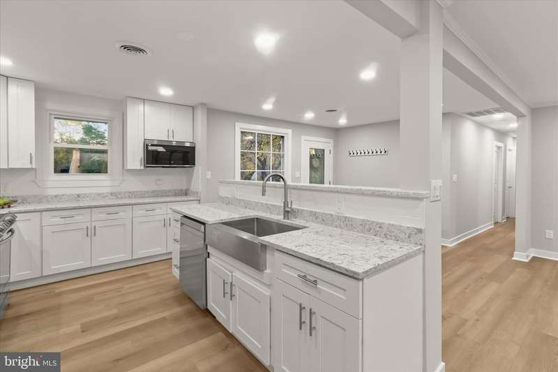 Beautiful 5 bedroom, 3 full bath rancher, remodeled throughout with tasteful, modern finishes, this exceptional home sits on a premium half-acre lot in Columbia's highly sought-after Atholton community. Offering over 2,500 sq. ft. of finished living space, this residence features a basement in-law suite and an attached 2-car garage, combining comfort and functionality in an ideal location. The main level showcases an open-concept living and dining area that flows seamlessly into a spacious sunroom with spectacular views of the landscaped backyard. The remodeled kitchen boasts white cabinetry, quartz countertops, and stainless steel appliances, creating a bright and inviting space for everyday living and entertaining. A convenient mudroom connects to the garage and leads to the fully fenced yard with an expansive patio, perfect for outdoor gatherings. Beautiful wide plank flooring continues throughout all 3 main level bedrooms, 2 fully updated bathrooms, and a laundry room complete the main level. The remodeled lower level offers a separate in-law suite with its own exterior exit and includes 2-bedrooms, 1-full bath and features an open-concept living and dining area, a kitchenette with quartz countertops and stainless steel appliances, and its own laundry room with a utility sink. Perfectly positioned across the street from the Atholton Swim Club and nearby community sports courts and tot lot, this home provides both recreation and convenience. Enjoy all that vibrant Columbia has to offer, including shopping, dining, entertainment, and easy access to major commuter routes. A rare find blending location, comfort, and style, this one won't last!