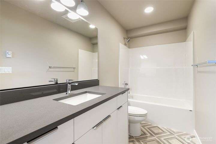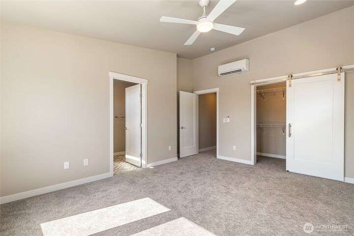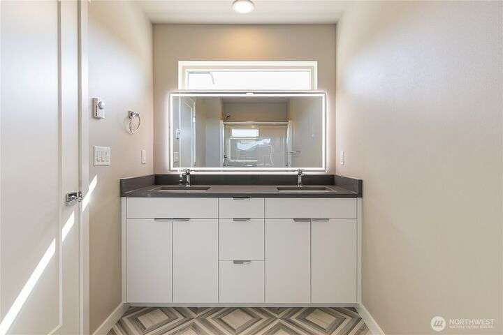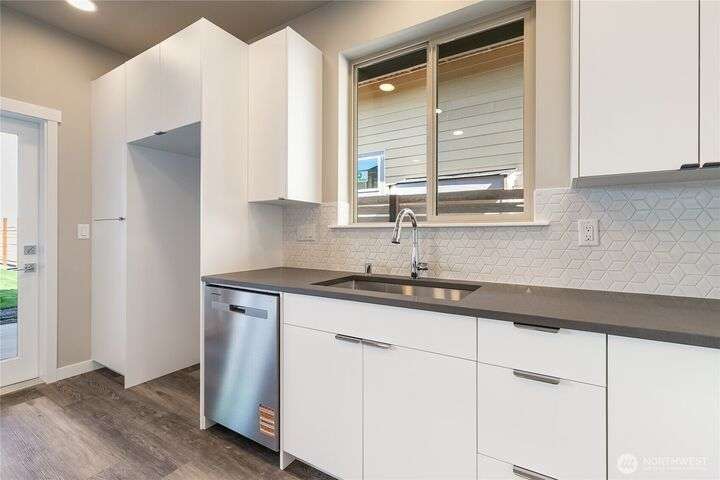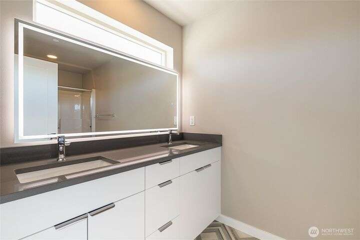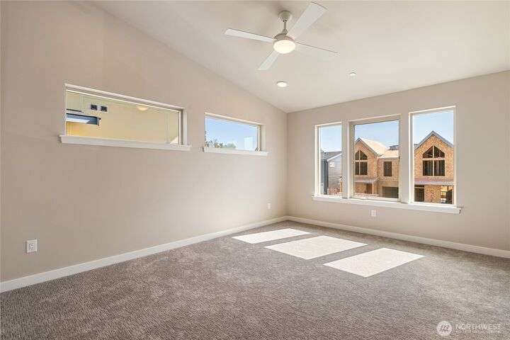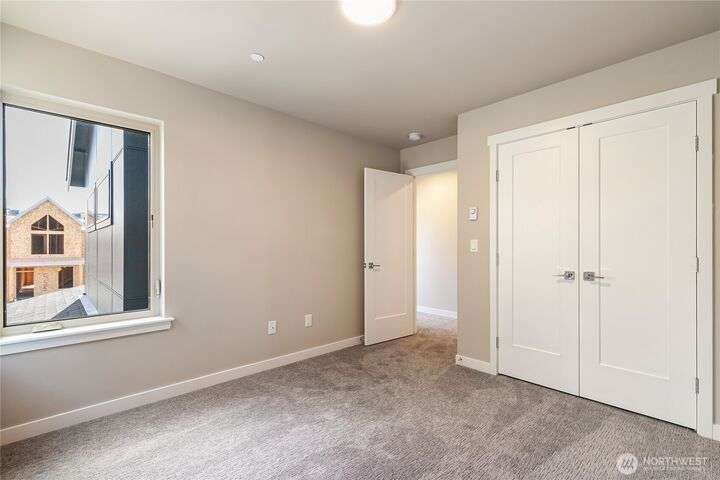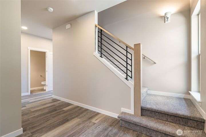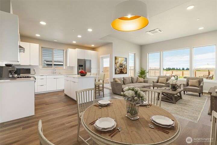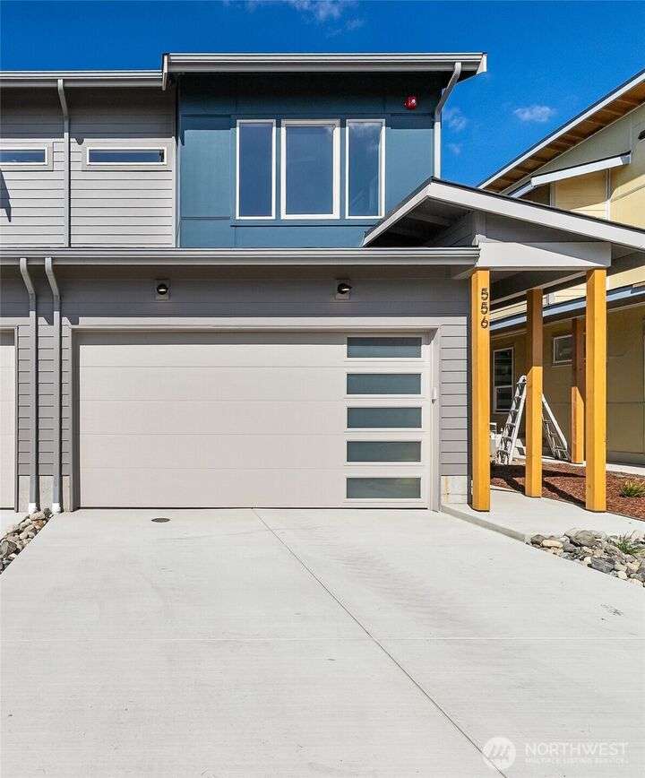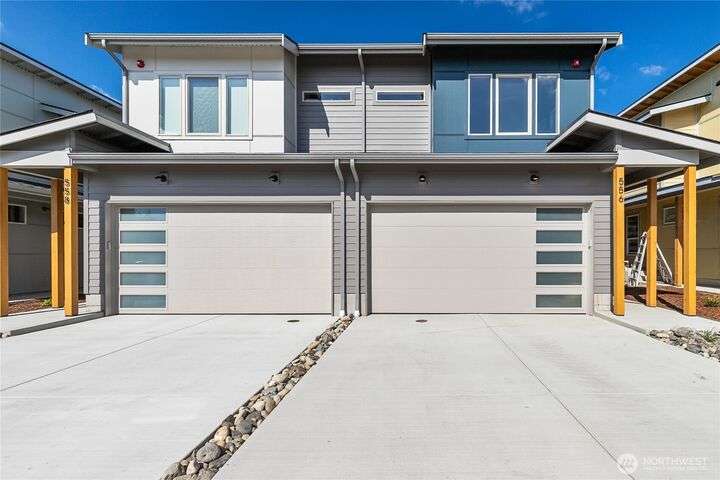 Welcome to Northview 2 in Cordata, Bellingham's premier solar home community! This stunning 2-story contemporary home features an open and spacious floorplan, a custom kitchen with sleek quartz countertops, and a primary suite with a private ensuite boasting a double sink and walk-in closet. Enjoy two additional bedrooms plus a versatile den/office that can serve as a possible fourth bedroom. Built with sustainability in mind, it offers efficient mini-split heat pumps with A/C, a low-maintenance yard, a covered patio, and EV charger prewiring. Take in mountain and golf course views. Includes a 2-car garage. Your dream home awaits—secure yours today!