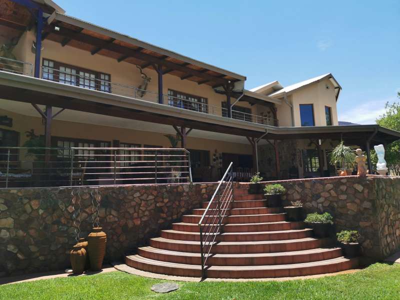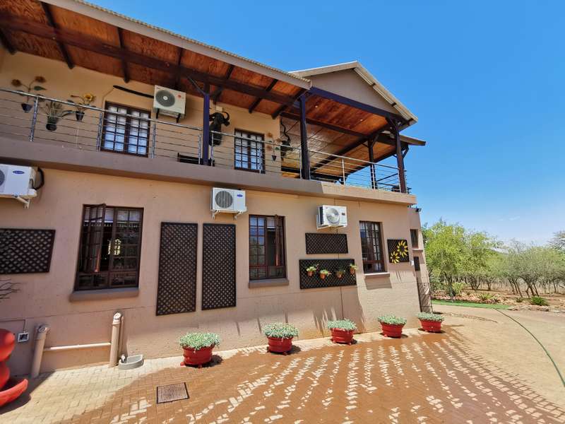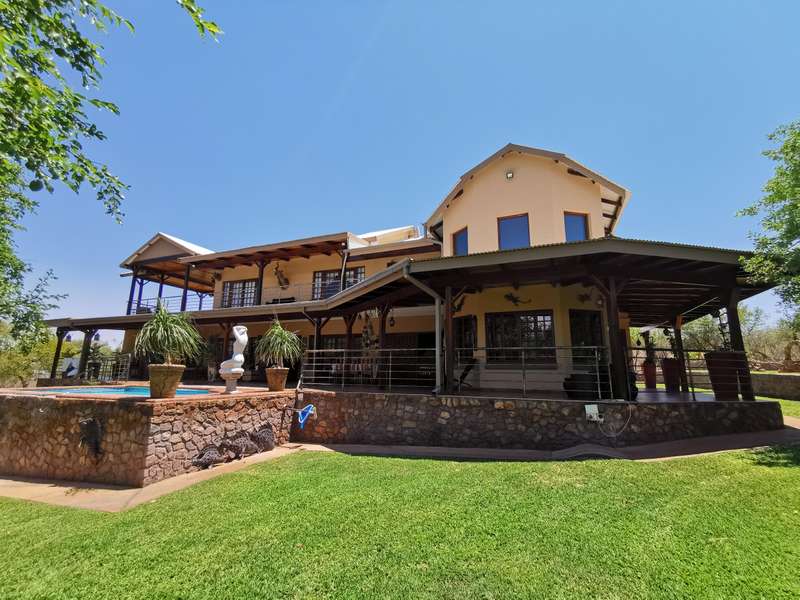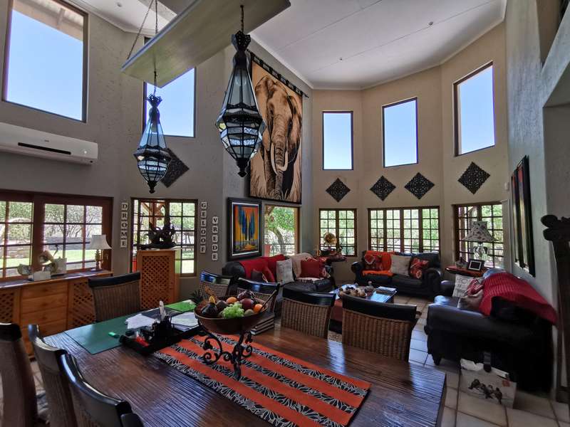 Beautiful farm approximately ten kilometres from Thabazimbi. This property has a rental income of R35 000.00 per month. It consists of 2 x houses and a fully operated taxidermy with 5 x seperate domestic accommodation. Main house: 3 x bedrooms 3 x en-suite bathrooms swimming pool separate braai area 2 x garages office space cinema 22 KVA Generator Property 2: 3 x bedrooms 2 x bathrooms 2 x kitchens 2 x living areas prepaid metre and generator Property 3: Fully operated taxidermy BOREHOLE IS COMPLETELY OFF THE GRID WITH A FULLY SOLAR SYSTEM