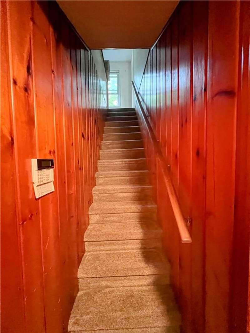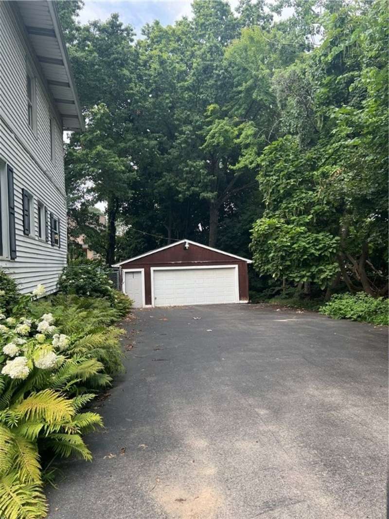 Newly Priced !!! If you are looking for privacy, this home is the one ...Vinyl sided three bedroom home on dead end street. Enjoy summertime gatherings in the fenced in back yard. Large two car detached garage with paved driveway. The kitchen features lots of cabinetry, a small island area and appliance package. The dining room is light filled and ready for holiday get togethers. The living room features an ornamental fireplace. Knotty pine stairway leads to the second floor. The master bedroom is large in size and has knotty pine accents. The front bedroom leads out to an enclosed summer porch. The third bedroom is ample in size. A walk up attic is perfect to store all your holiday decorations. The basement provides lots of storage and features Billco doors leading to the exterior.