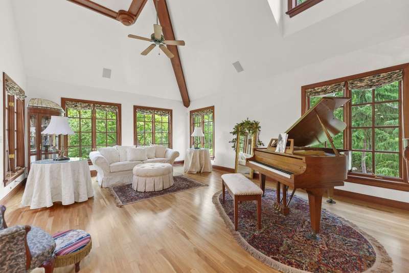 Hilltop Brick Estate on 3.25 acres with breathtaking views and unmatched craftsmanship in Boone County! Welcome to a truly extraordinary offering - an incredible one-owner brick estate nestled atop a wooded and private hilltop lot. With 5,488 square feet of meticulously maintained living space, this exceptional home blends timeless elegance with custom design details that make it truly one-of-a-kind. Step inside and be immediately captivated by the soaring volume, custom millwork, and refined finishes throughout. The home's thoughtful open-concept layout includes both formal and informal living spaces, offering an ideal blend of comfort and sophistication. Expansive windows frame picturesque views in every direction, allowing you to enjoy the changing seasons and native wildlife from the privacy of your own sanctuary. The custom chef’s kitchen is as functional as it is beautiful, seamlessly flowing into the dining area and out to a stunning circular terrace, perfect for al fresco dining or a peaceful morning coffee. The home features three gracious bedrooms, including a luxurious main-floor primary suite complete with a spa-inspired ensuite bath. Upstairs, two additional bedrooms share a well-appointed Jack & Jill bath, while a spacious loft offers the perfect spot for a study, reading nook, or creative retreat. The finished lower level includes a large rec-room with fireplace, full bath, and an exercise room - flexible space that can easily be tailored to suit your lifestyle. Additionally, the unfinished attic was thoughtfully designed with the potential to add additional living space, giving you room to grow. Situated in a quiet, tucked-away horseshoe subdivision, this home offers quick access to both the State Street and Riverside corridors via Olson Road, making it both private and conveniently located. Don’t miss your opportunity to own a home that combines unmatched craftsmanship, serene natural beauty, and thoughtful design. Refer to the attached documents for further information and recent updates.
