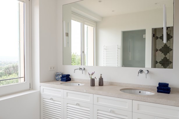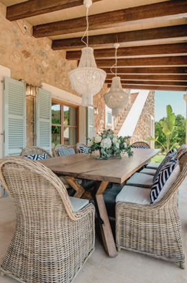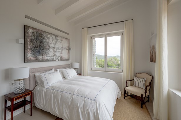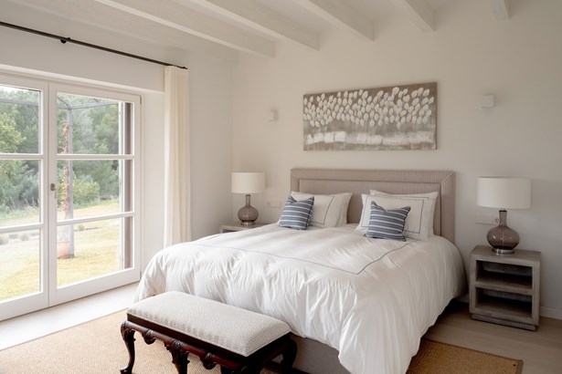 Nestled near the picturesque village of Santa Maria del Camí, this stunning four-bedroom country retreat offers a perfect escape into tranquility. Set on an expansive plot of nearly 15,000m², the property boasts breathtaking views of the Tramuntana mountains, providing both seclusion and easy access to local amenities.Inside, you'll find bright and airy spaces that beautifully blend modern design with timeless elegance. The ground floor features a spacious open-plan living and dining area that flows effortlessly onto large terraces, ideal for enjoying the outdoors. The contemporary kitchen is filled with natural light and offers a central island with lovely views of the garden. Two double bedrooms on this level come with ensuite bathrooms and direct access to the outdoor terrace, making them perfect for guests.Upstairs, two additional bedrooms await, including a generous master suite that opens onto its own terrace, where you can soak in spectacular sea views. Each bedroom upstairs