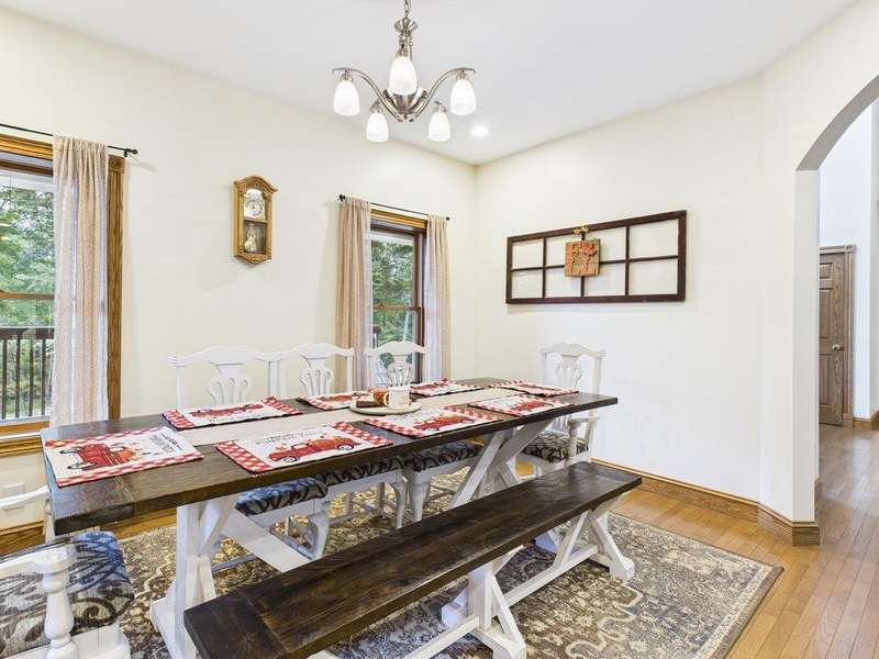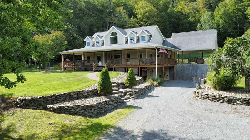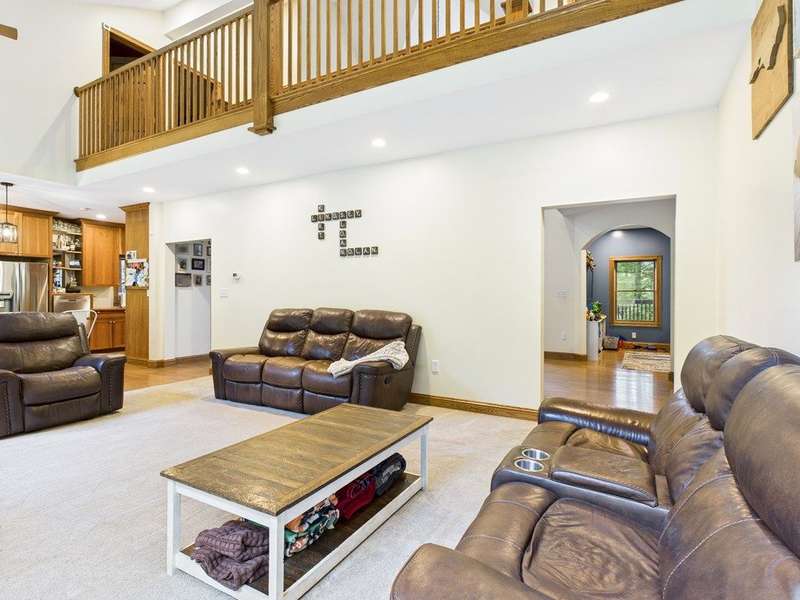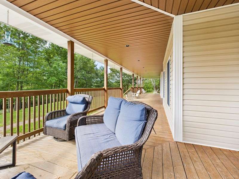 Charming 2-Story Cape Cod Home on 10 Acres in the Country Nestled on a serene 10-acre lot, this beautifully crafted 2-story Cape Cod home blends timeless charm with modern comforts. A picturesque wrap-around covered porch welcomes you into a thoughtfully designed layout featuring spacious living areas and elegant finishes throughout. Step inside to a stunning great room with soaring vaulted ceilings, expansive windows that bathe the space in natural light, and a breathtaking wood stairway with a balcony that overlooks the entire room?perfect for gathering or simply enjoying the peaceful country views. The main floor boasts a private master suite complete with a large walk-in closet, an oversized walk-in shower, a sleek stand-alone soaking tub, and dual vanities for a luxurious retreat. The galley-style kitchen offers functionality and style with a generous breakfast island, ideal for casual meals or entertaining, and flows seamlessly into a separate formal dining room.
