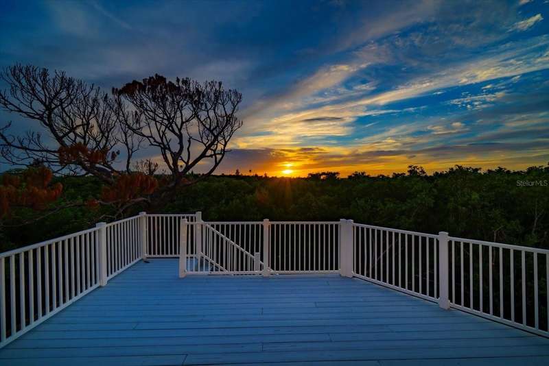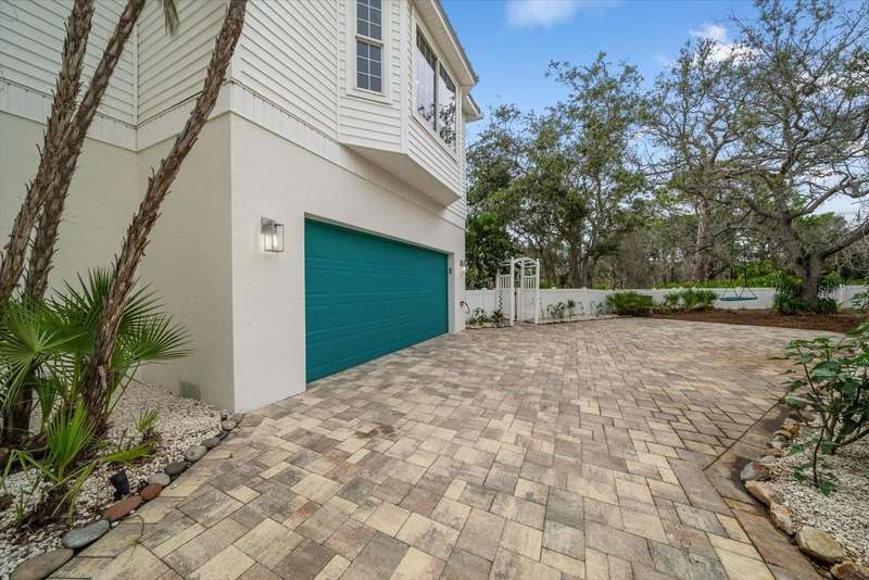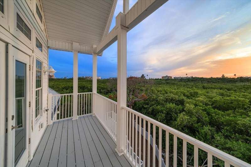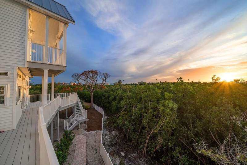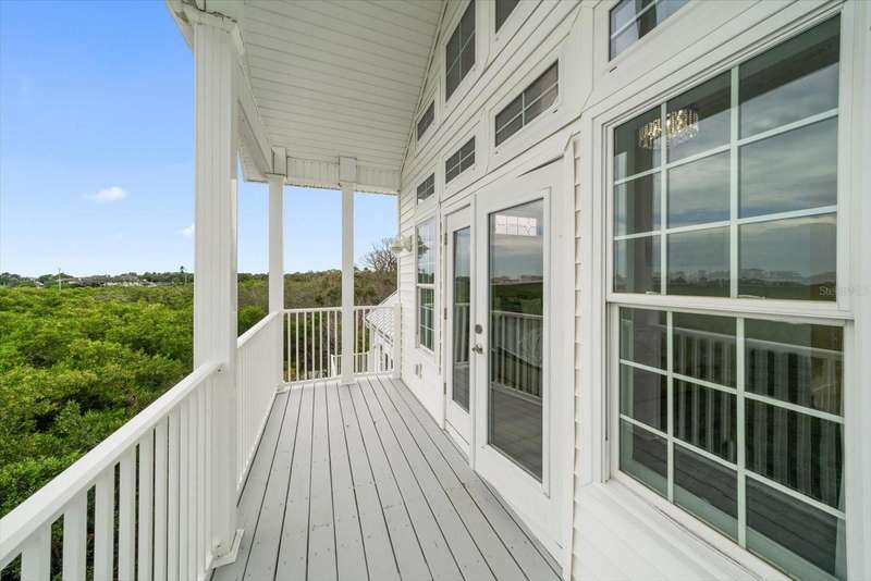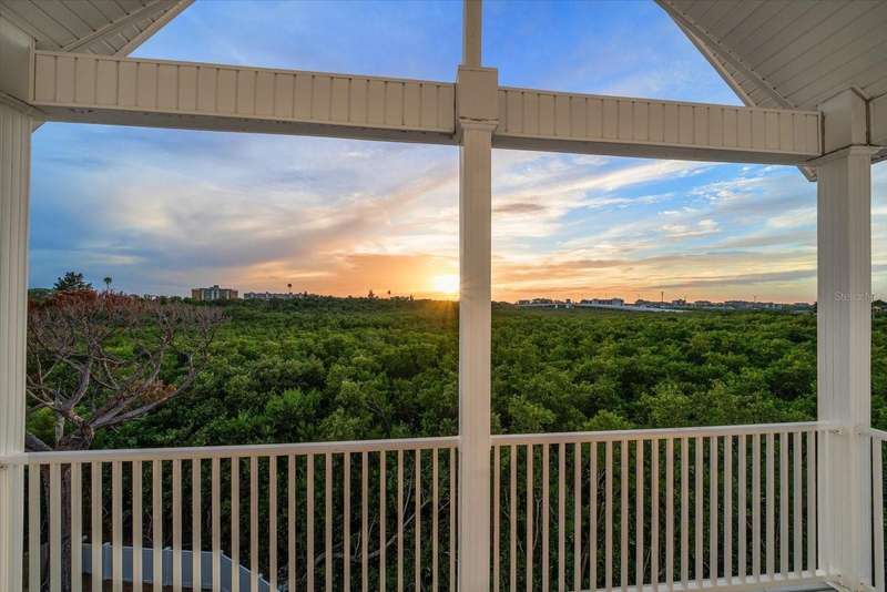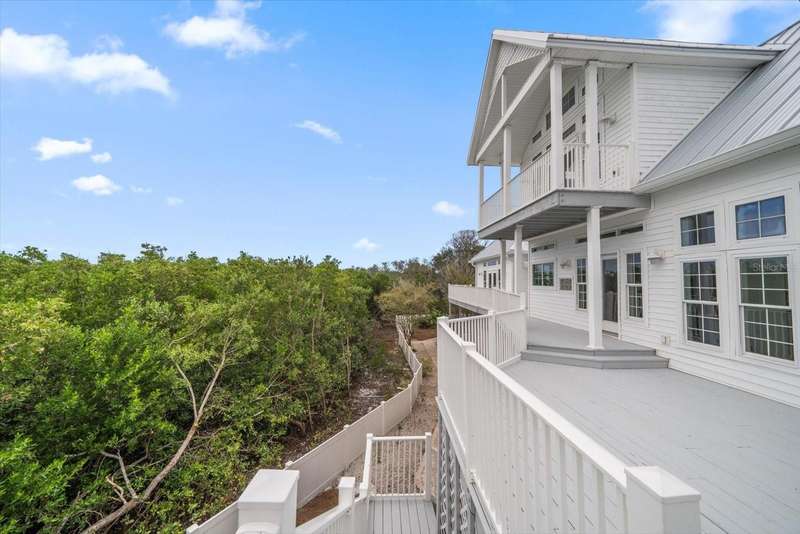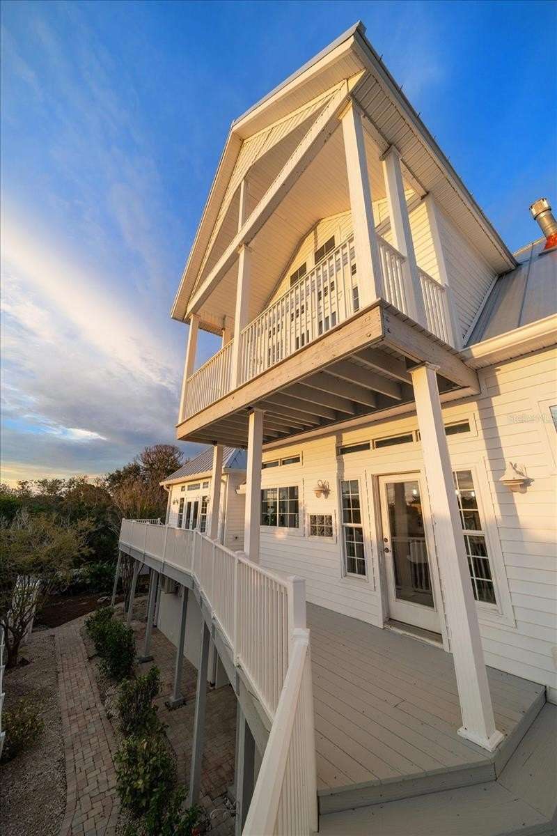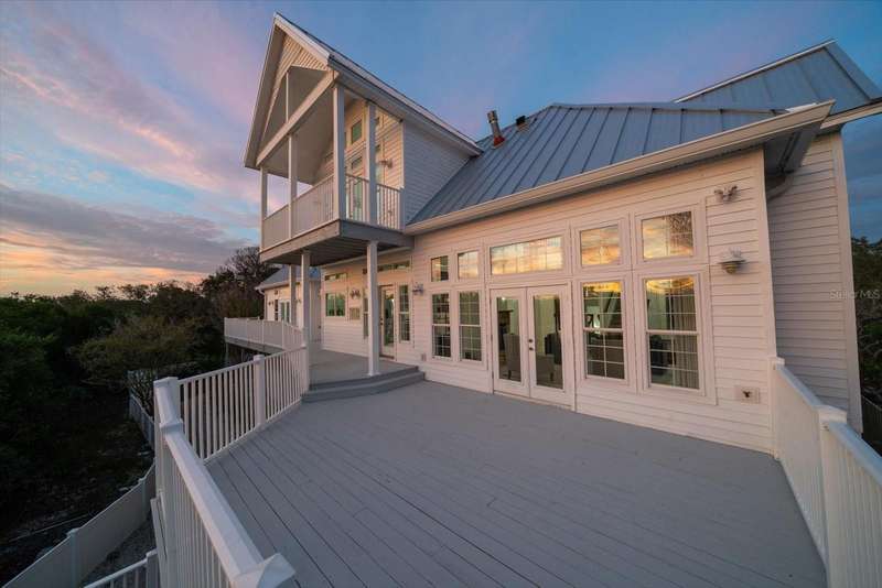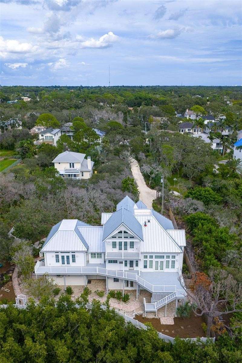 With its unparalleled blend of sophistication and natural serenity, this exquisite residence offers a tranquil setting, abundance of privacy, and notable space appreciated for those with varied interest. The interior is defined by meticulous attention to detail and a sense of timeless, refined luxury. Elevated construction with living areas on the second and third levels are easily accessed by either stairs or elevator. The entry through double etched glass doors to the main living level is impressive with its vaulted ceilings, soft lighting and detailed rich planked wood ceilings. A spectacular kitchen with large center island, top of the line appliances such as a 6 burner gas stove is certain to impress the most selective chef. Family and guests will enjoy the two sided fireplace during casual meals or grand-scale entertaining in the inviting dining room. Three additional bedrooms, one currently used as an office, provide a floor plan that is functional. The entire third level is comprised of the opulent primary suite featuring a lavish bath area with exquisite finishes- soaking tub, walk in shower with multiple heads, mirrors with touch activated lighting and temperature control; the area exudes refined luxury. Be delighted by the sensational sunsets from your expansive private terraces. Ground level flex area of approximately 580 sq. ft., not included in the heated square footage, provides additional space for exercise, hobbies, or recreational activities and is equipped with a spacious bar and full bath. Additionally, the property offers an oversized air conditioned 4 car garage, separate work shop, storage and hard wired hook up for whole house generator. Opportunity for short term rental income as well with its proximity to the beaches: Car enthusiasts will take note of all of the space! New items include; roof, baths, flooring, HVAC systems, landscaping and much more. Appreciate the private side yard for gardening, play area, or various outdoor activities- Seller has acquired a plan for those who consider an addition of a pool and can be shared. This is a property with a multitude of possibilities for those with varied interest. The striking architectural design blends seamlessly with the natural landscape and allows for a private retreat where luxury meets the beauty of nature! And yet, it is just minutes from beaches, shopping and access roads to neighboring Tampa and St Petersburg. Don’t miss this one-it is outstanding!