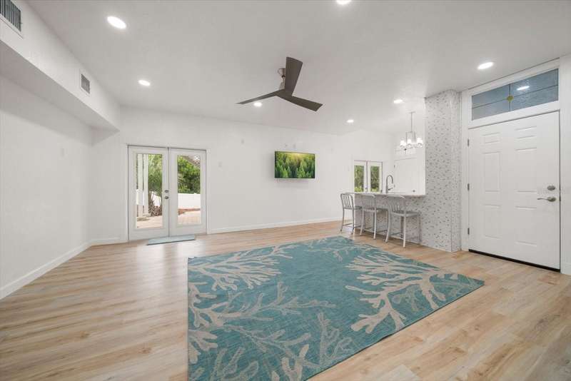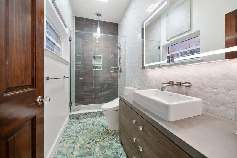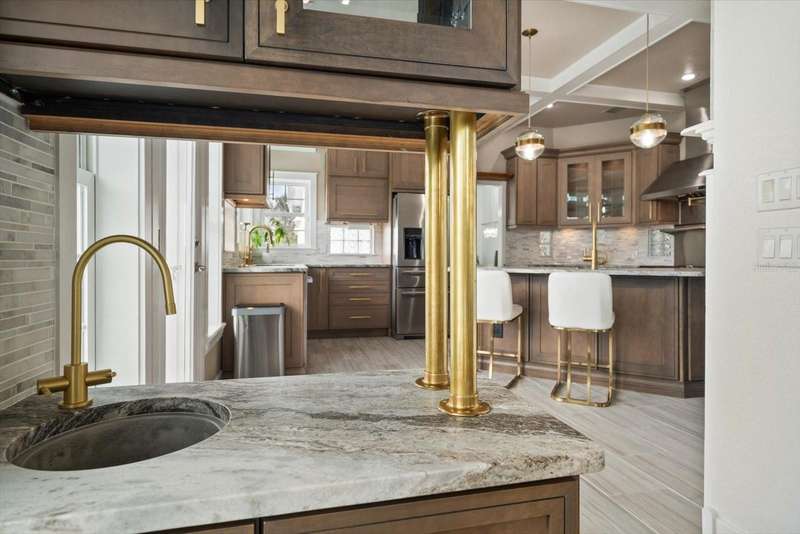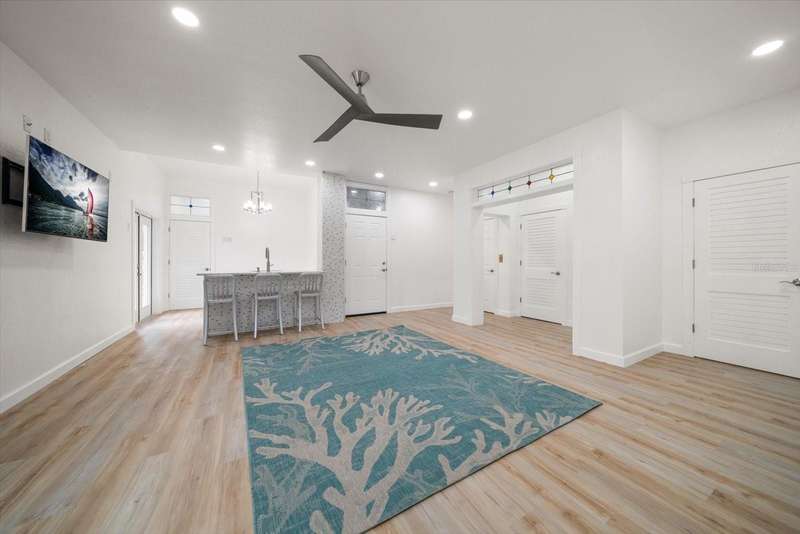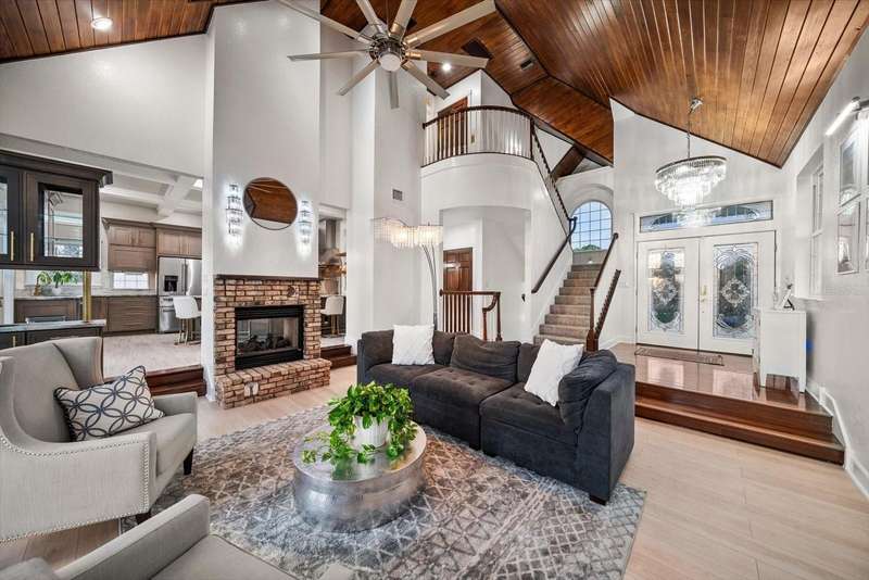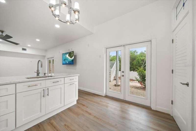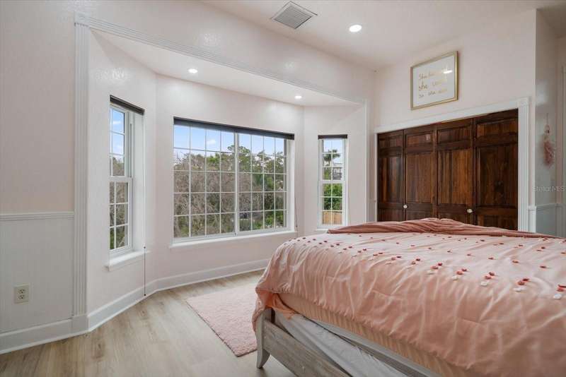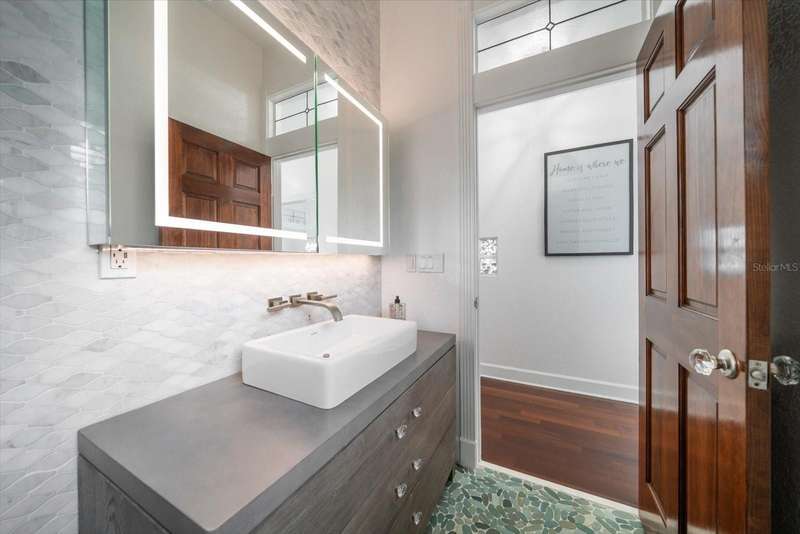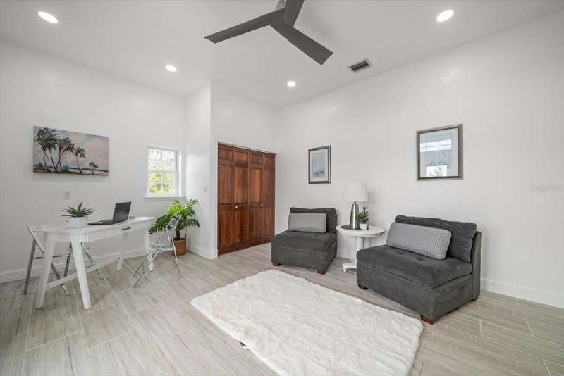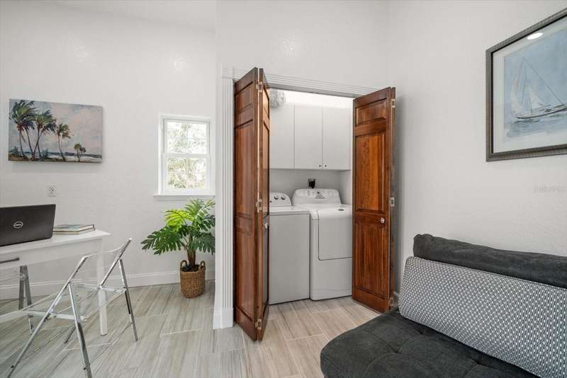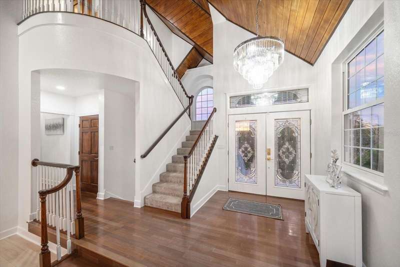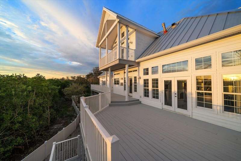 With its unparalleled blend of sophistication and natural serenity, this exquisite residence offers a tranquil setting, abundance of privacy, and notable space appreciated for those with varied interest. The interior is defined by meticulous attention to detail and a sense of timeless, refined luxury. Elevated construction with living areas on the second and third levels are easily accessed by either stairs or elevator. The entry through double etched glass doors to the main living level is impressive with its vaulted ceilings, soft lighting and detailed rich planked wood ceilings. A spectacular kitchen with large center island, top of the line appliances such as a 6 burner gas stove is certain to impress the most selective chef. Family and guests will enjoy the two sided fireplace during casual meals or grand-scale entertaining in the inviting dining room. Three additional bedrooms, one currently used as an office, provide a floor plan that is functional. The entire third level is comprised of the opulent primary suite featuring a lavish bath area with exquisite finishes- soaking tub, walk in shower with multiple heads, mirrors with touch activated lighting and temperature control; the area exudes refined luxury. Be delighted by the sensational sunsets from your expansive private terraces. Ground level flex area of approximately 580 sq. ft., not included in the heated square footage, provides additional space for exercise, hobbies, or recreational activities and is equipped with a spacious bar and full bath. Additionally, the property offers an oversized air conditioned 4 car garage, separate work shop, storage and hard wired hook up for whole house generator. Opportunity for short term rental income as well with its proximity to the beaches: Car enthusiasts will take note of all of the space! New items include; roof, baths, flooring, HVAC systems, landscaping and much more. Appreciate the private side yard for gardening, play area, or various outdoor activities- Seller has acquired a plan for those who consider an addition of a pool and can be shared. This is a property with a multitude of possibilities for those with varied interest. The striking architectural design blends seamlessly with the natural landscape and allows for a private retreat where luxury meets the beauty of nature! And yet, it is just minutes from beaches, shopping and access roads to neighboring Tampa and St Petersburg. Don’t miss this one-it is outstanding!