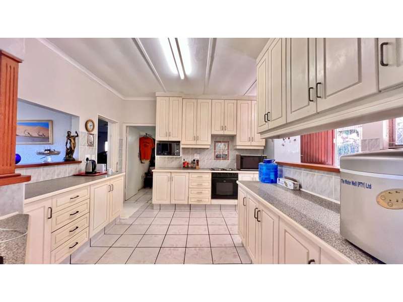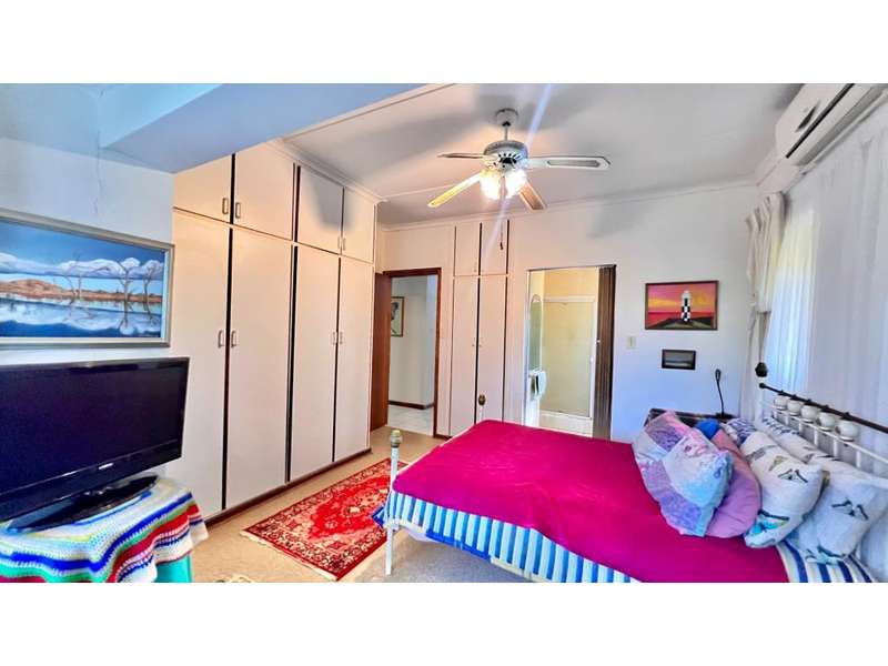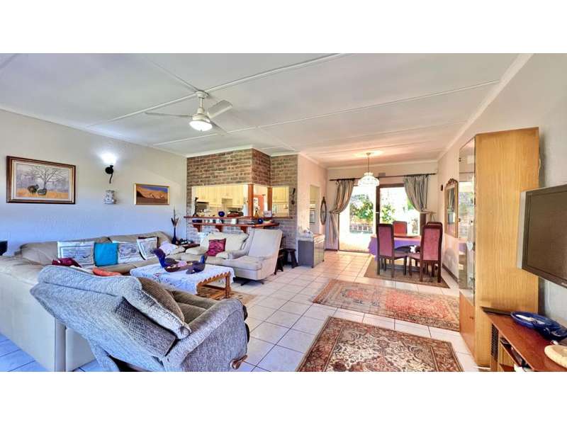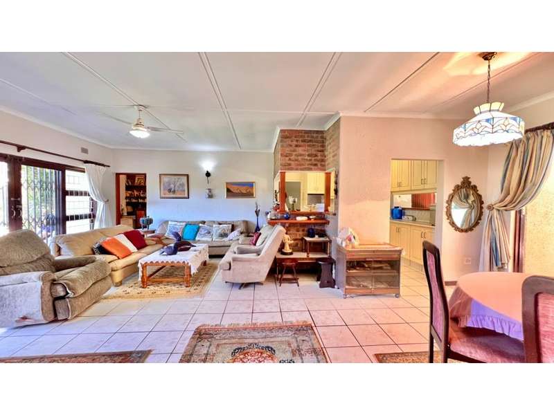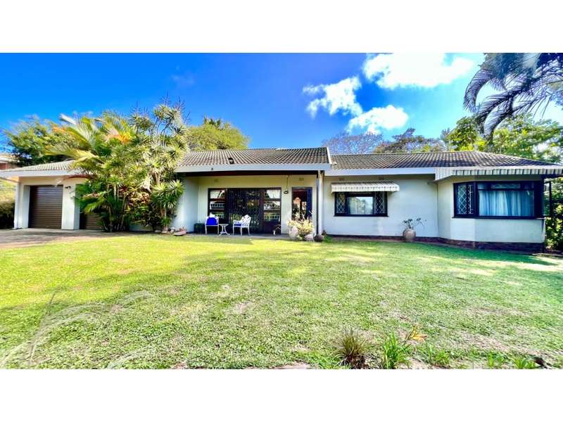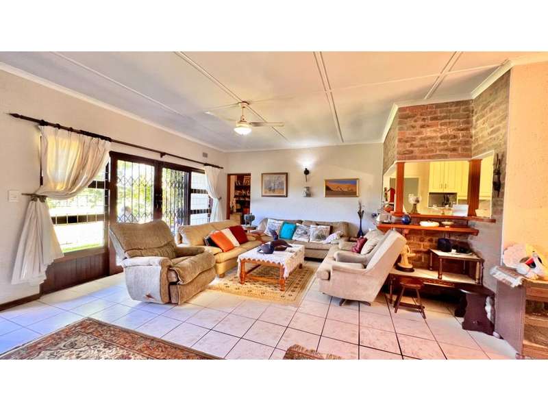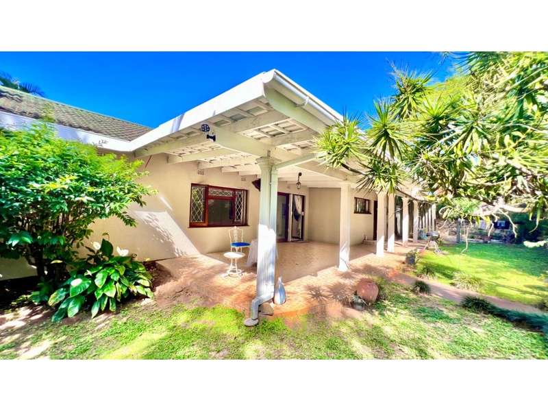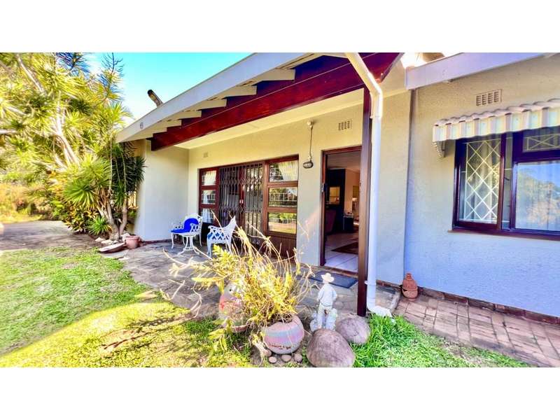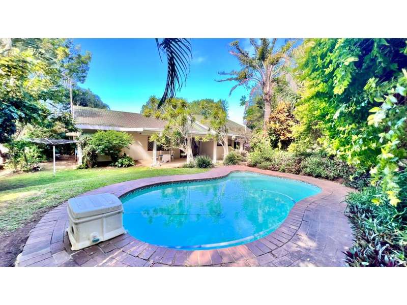 IDEAL FAMILY HOME WITH POOL Welcome to Umtentweni. This 3-bedroom, 2-bathroom cosy family home oozes with peace and tranquility. An additional en-suite guest bedroom which can be excessed from both inside or through a private entrance from the side of the house. The open-plan lounge has a study for the family that works from home. The lounge, kitchen and dining room flow out to a secluded covered entertainment area overlooking the sparkling pool and lush garden with solar lights for those dark nights. The garden at the back is slightly elevated but very private with lots of space for the children to play safely. Double garage, automated entrance gate with intercom, paved driveway and 5000 litre water tank seals the deal. This property is well priced and worth viewing. Call or WhatsApp me today to arrange a viewing!