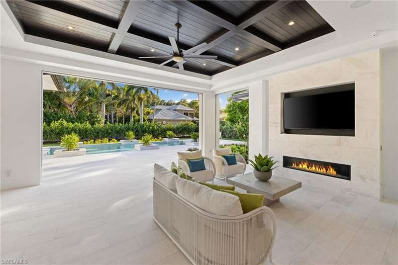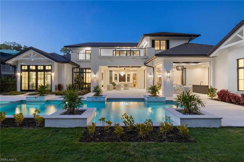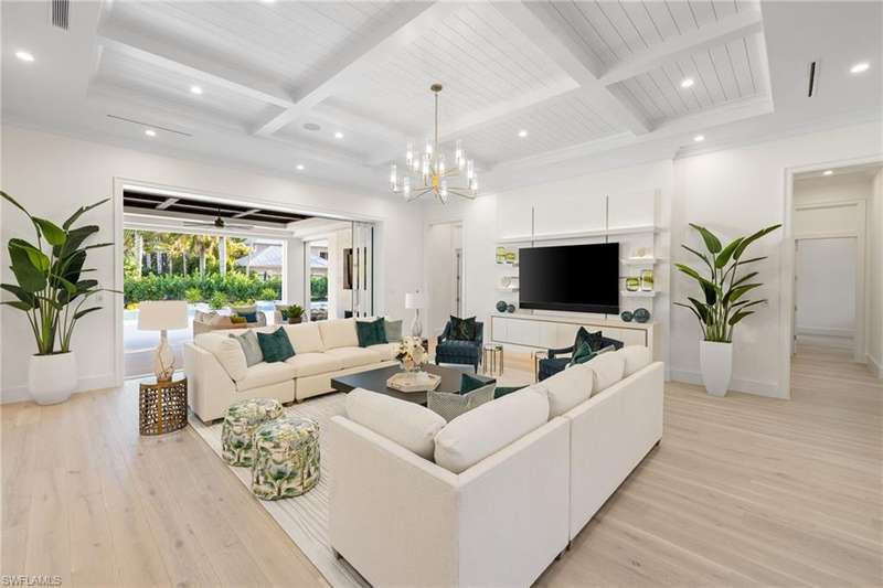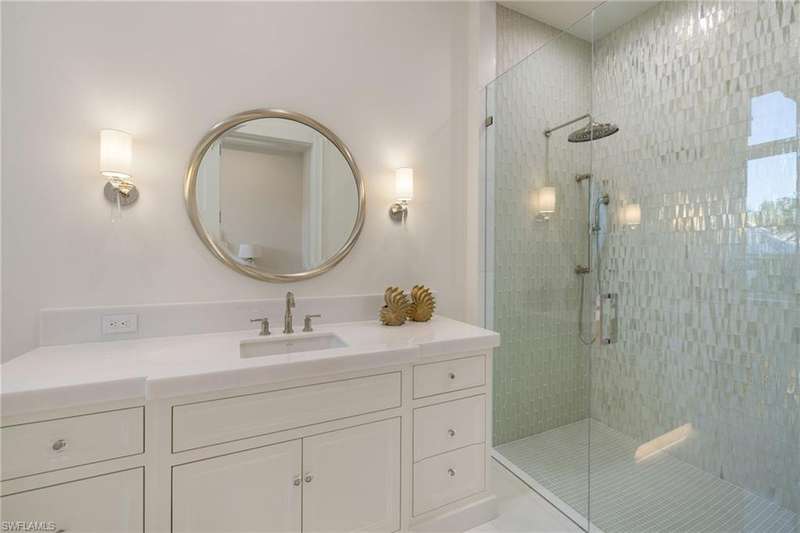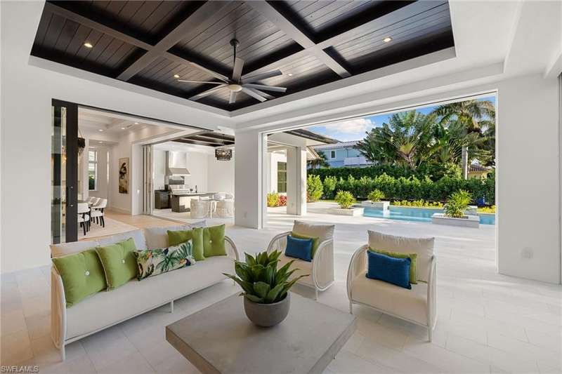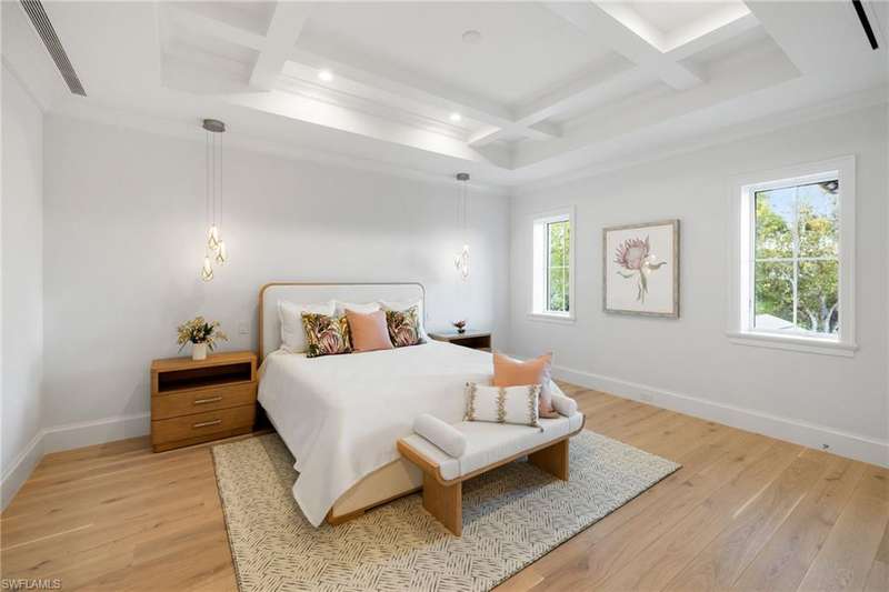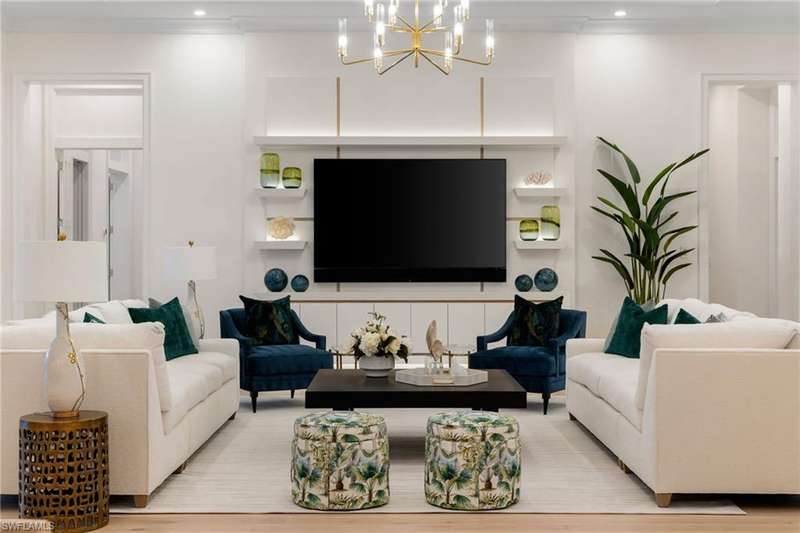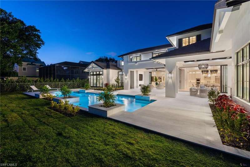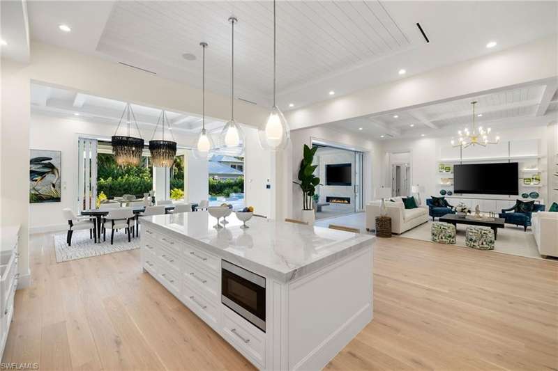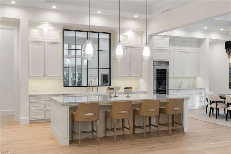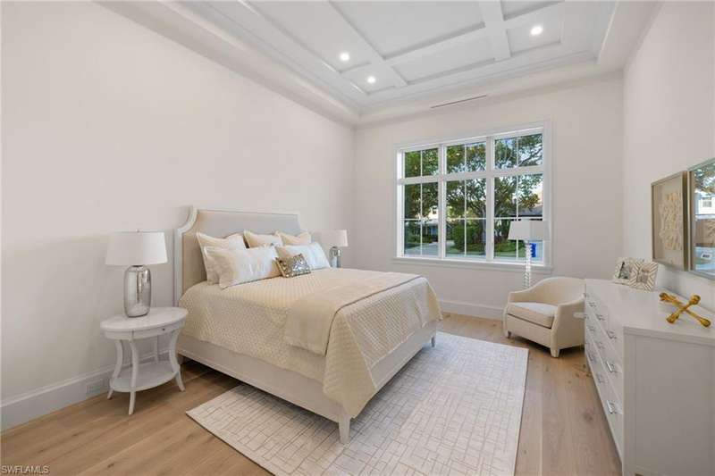 Situated on one of the most prestigious streets in Naples, just moments from its world-renowned sugar sand beaches, this exceptional new construction residence is set on an oversized homesite in the highly desirable X and X500 flood zones allowing for seamless 1st floor living. The home offers five ensuite bedrooms, including a ground-level owner's suite with a spacious dressing room, study, and a flex room that offers a versatile space, perfect for a home gym, second closet, den or art studio. At the heart of the home is a magnificent great room, where timeless sophistication meets modern innovation. The residence includes a formal dining room, a state-of-the-art kitchen, and the latest in home automation, security, and built-in audio with speakers. The chef s kitchen features high-end appliances from SubZero, Miele, and Wolf, dual wall ovens, beverage drawers, and a quartzite-topped island. A separate service kitchen with walk in pantry, a built-in Miele coffee maker, an additional d