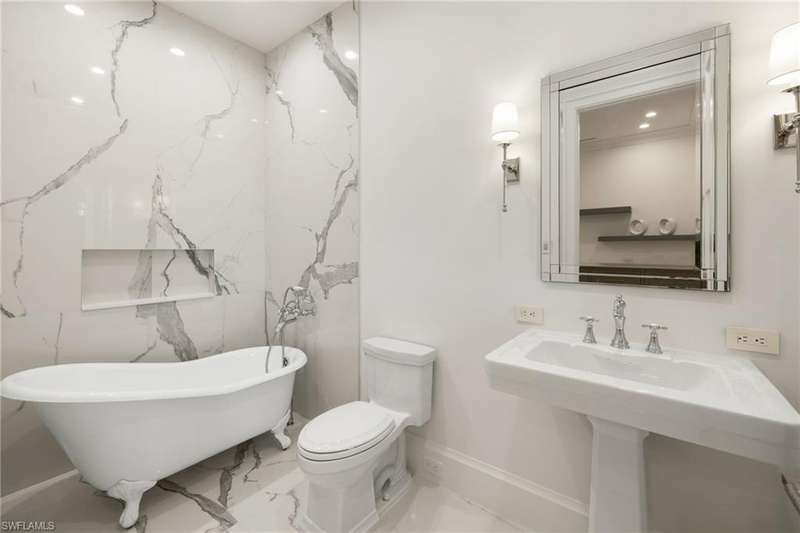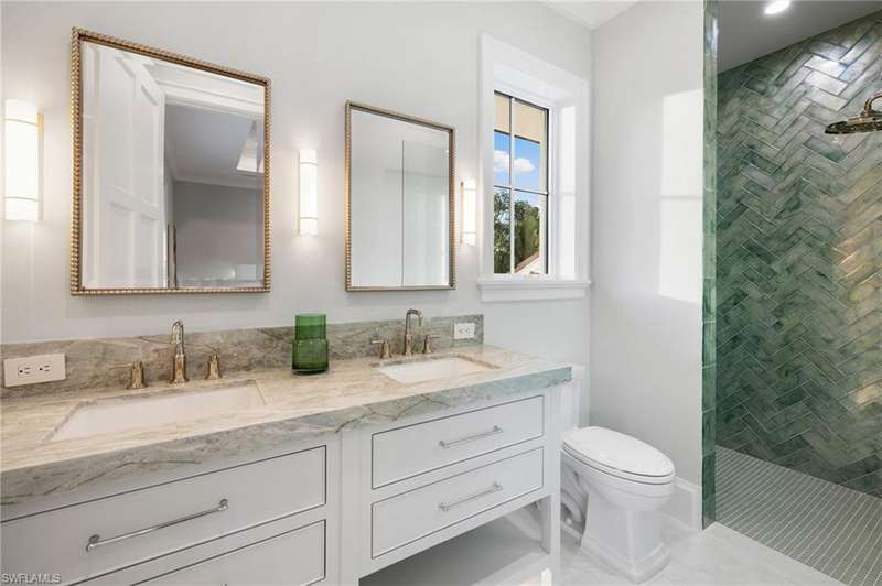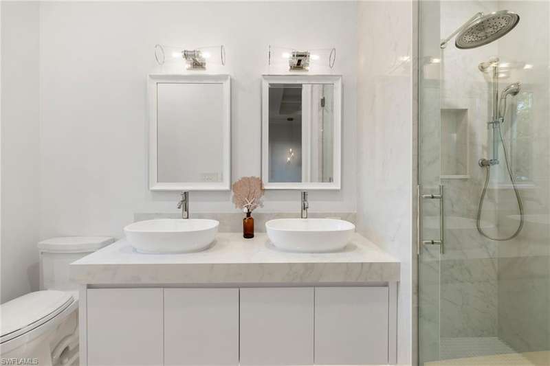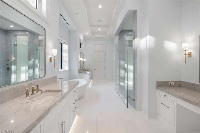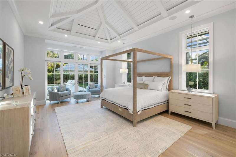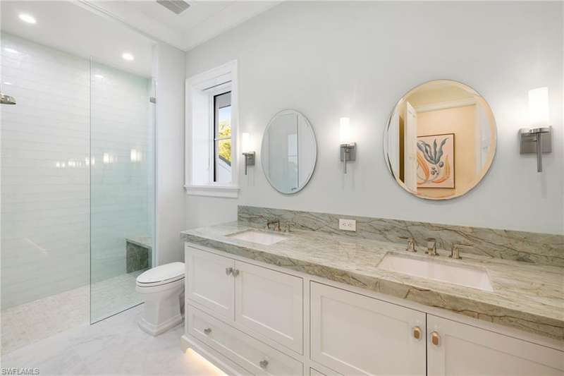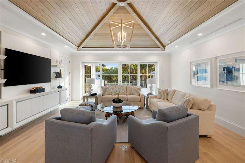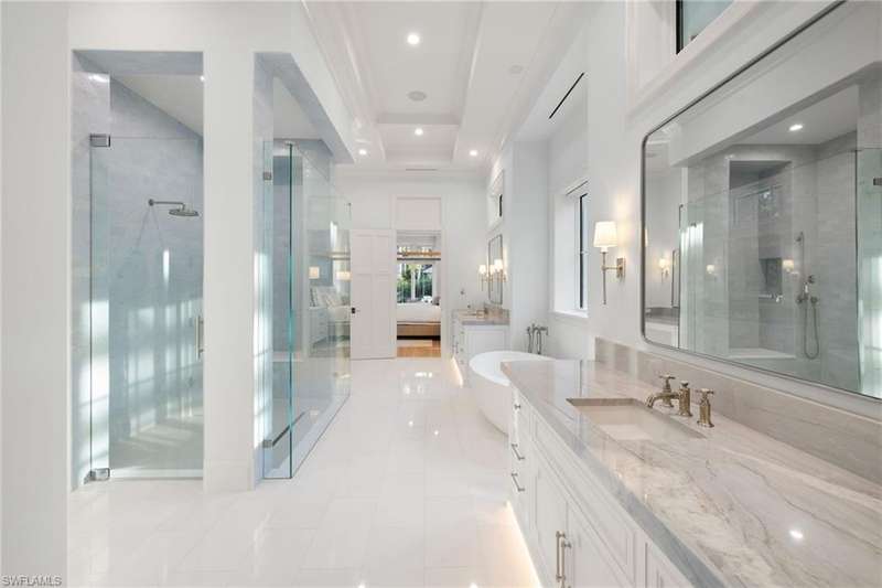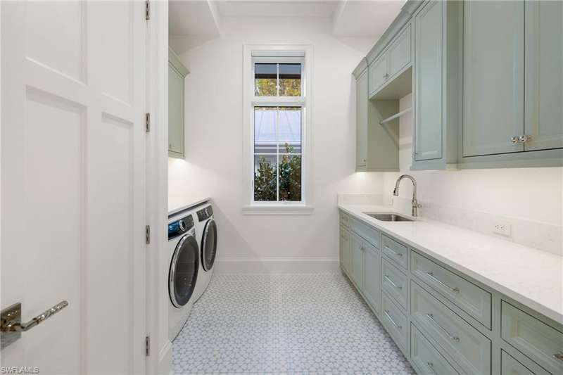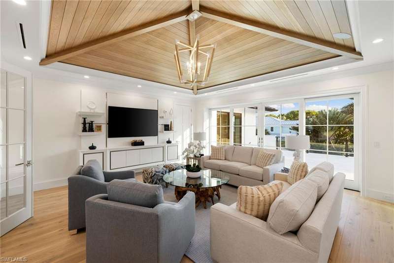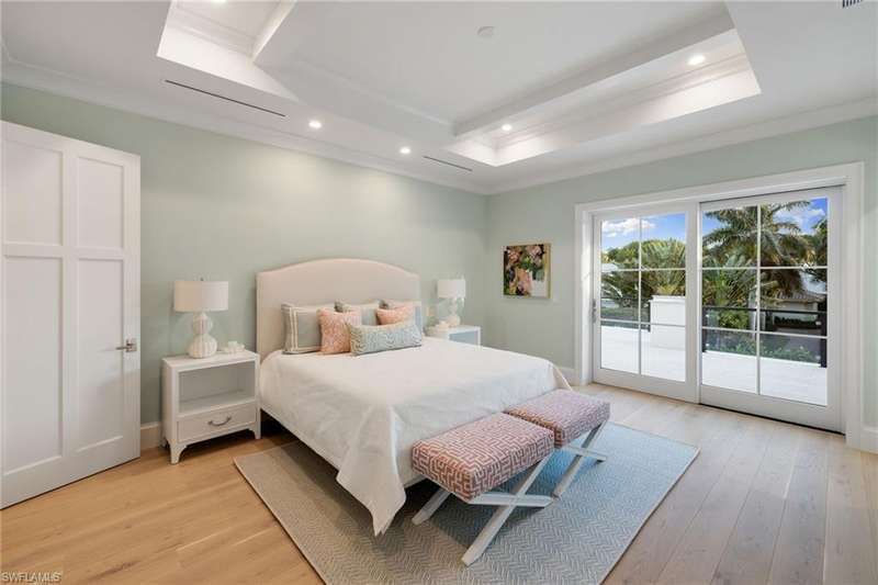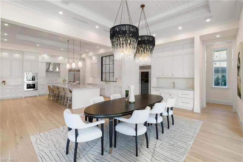 Situated on one of the most prestigious streets in Naples, just moments from its world-renowned sugar sand beaches, this exceptional new construction residence is set on an oversized homesite in the highly desirable X and X500 flood zones allowing for seamless 1st floor living. The home offers five ensuite bedrooms, including a ground-level owner's suite with a spacious dressing room, study, and a flex room that offers a versatile space, perfect for a home gym, second closet, den or art studio. At the heart of the home is a magnificent great room, where timeless sophistication meets modern innovation. The residence includes a formal dining room, a state-of-the-art kitchen, and the latest in home automation, security, and built-in audio with speakers. The chef s kitchen features high-end appliances from SubZero, Miele, and Wolf, dual wall ovens, beverage drawers, and a quartzite-topped island. A separate service kitchen with walk in pantry, a built-in Miele coffee maker, an additional d
