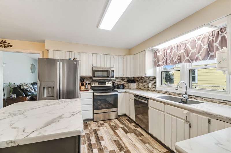 Spacious and full of natural light, this 4-bedroom home offers comfort and style with 2 updated bathrooms and a modern kitchen designed for everyday living. Fresh new flooring flows throughout, creating a clean and contemporary feel. Step outside to a covered back patio and a private, fenced backyard ideal for gatherings or quiet evenings. 3 sheds for extra storage or make one a she shed and the other a man cave...so many options. Perfectly situated near shopping, dining, schools, and parks, this home combines convenience with charm. Seller is under contract with a new home bring offers. Selling of home is contingent on seller finding a new home. Currently under contract to close end of October.
