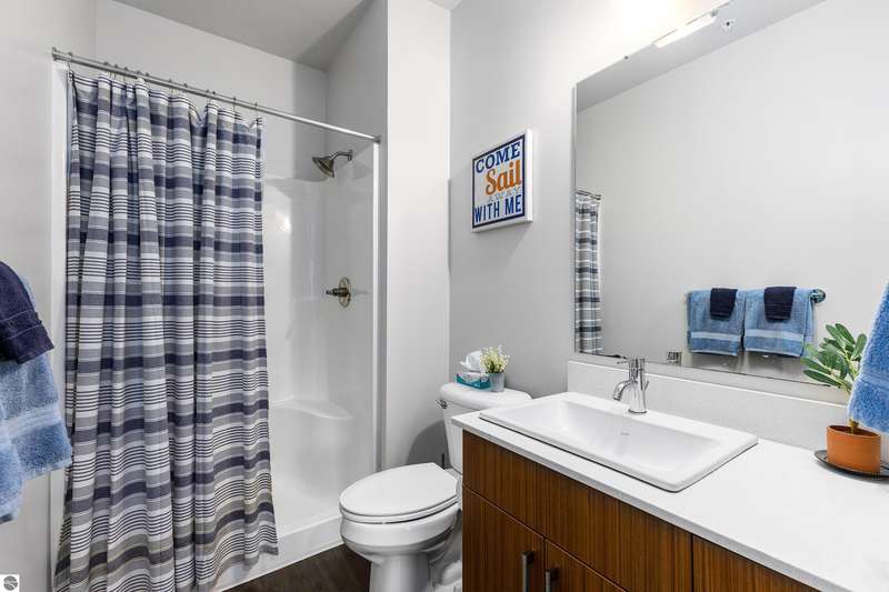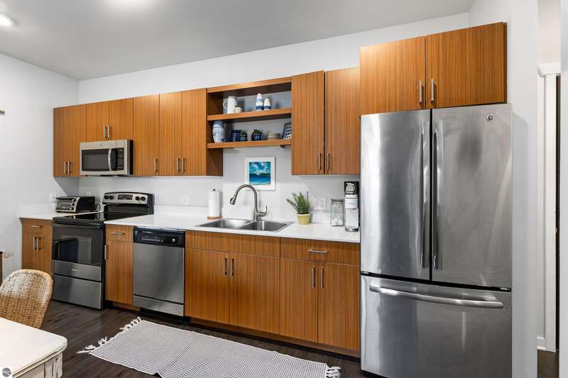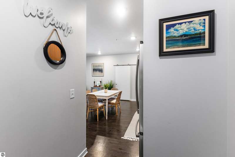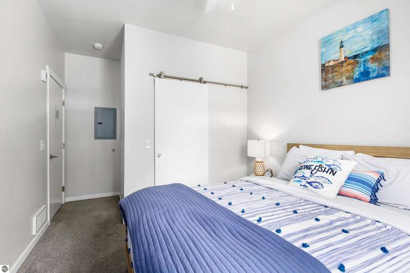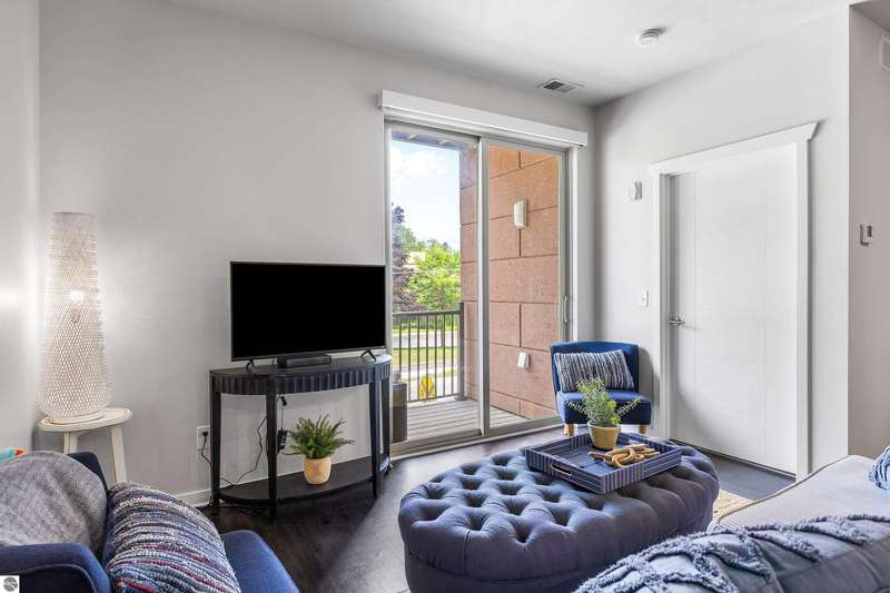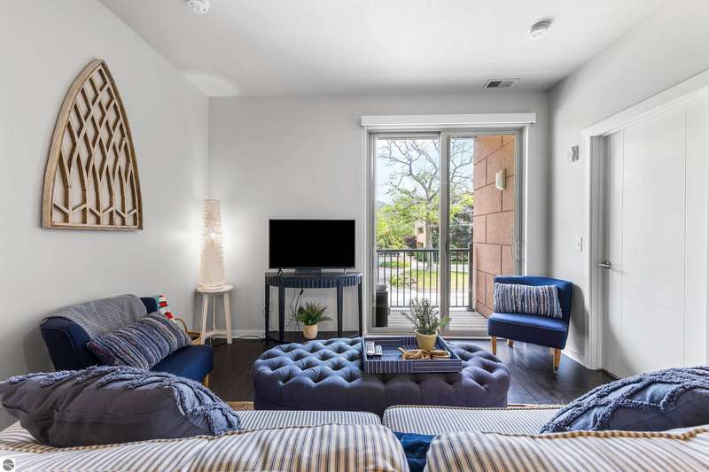 Dreaming of your own cozy getaway in Traverse City? Welcome to Trailside 45 -- a charming, low-maintenance Up North home where comfort and convenience come together. Nestled right next to the TART Trail, it's easy to hop on your bike from the secure storage room and explore the area or head downtown for coffee, shopping, and lakeside sunsets. Inside, you'll find a bright and open layout with two private bedrooms, two full baths, and a peaceful balcony -- the perfect spot for your morning coffee or evening wind-down. When it's time to gather with friends or meet neighbors, the beautifully appointed community room just down the hall is a welcoming space. Offered fully furnished, this home is move-in ready -- ideal for personal use, or to share with guests when you're away. Whether you're looking for a full-time retreat or a part-time haven with flexible rental potential, Trailside 45 is ready to welcome you home.