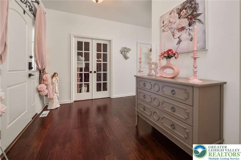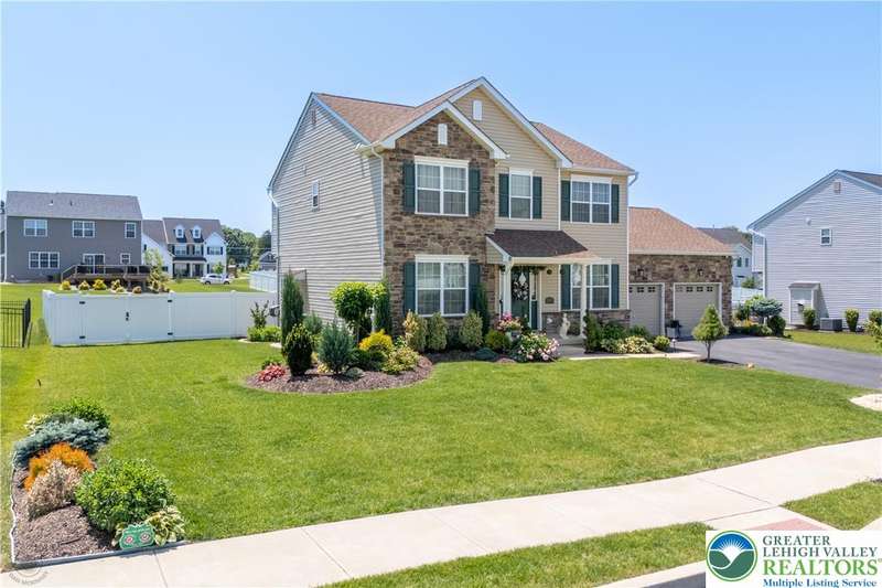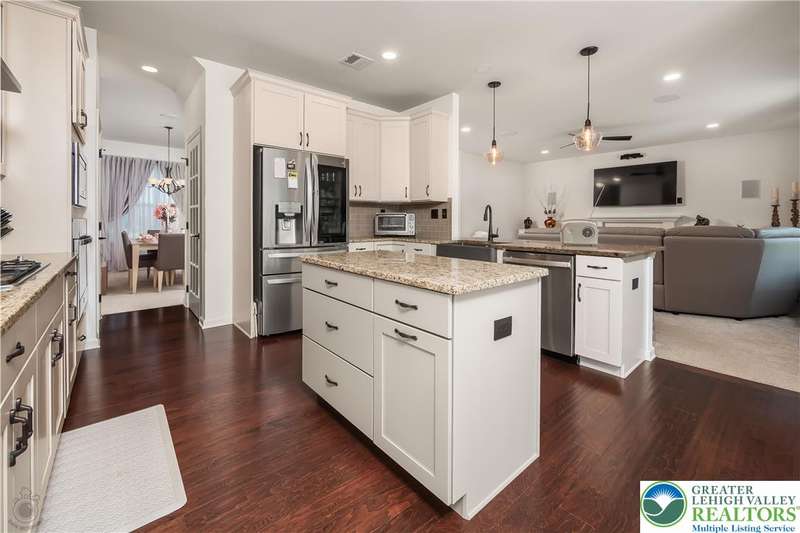 Your Dream Home Awaits! Step into this beautifully maintained 4-year-old Kingston Traditional, offering 4 spacious bedrooms and 2.5 baths. From the moment you enter the open foyer, you'll be greeted by elegant glass French doors leading to a private office, a stylish powder room, formal dining, and a cozy living room anchored by a gas fireplace perfect for family gatherings. The chef s kitchen is a showstopper, featuring Smart Tech stainless appliances, LG Smart Craft Ice refrigerator, gas range, and a sleek hood vent. The Beige cabinetry, granite countertops, and pendant lighting create a warm, inviting space for entertaining. Imagine your morning coffee in sunny breakfast nook flows into a well-equipped laundry room with cabinets, laundry tub, and a Gas LG Dryer. Upstairs, the primary suite boasts a walk-in closet and spa-like bath with double vanity, standing shower, and jacuzzi tub. Three additional bedrooms and a full hall bath offer comfort and convenience. Enjoy modern upgrades like tankless gas hot water, central AC with purifier and humidifier, whole house water filtration, and a wired home audio system. The high-ceiling basement is ready to finish with rough-in plumbing and French door egress to a flat, fenced backyard complete with prewired outdoor speakers and gas line. Unique driveway pillars lead to a spacious 2 car garage. Located near major routes, shopping, dining and medical facilities. Schedule your private showing today this Kingston gem won t last long!