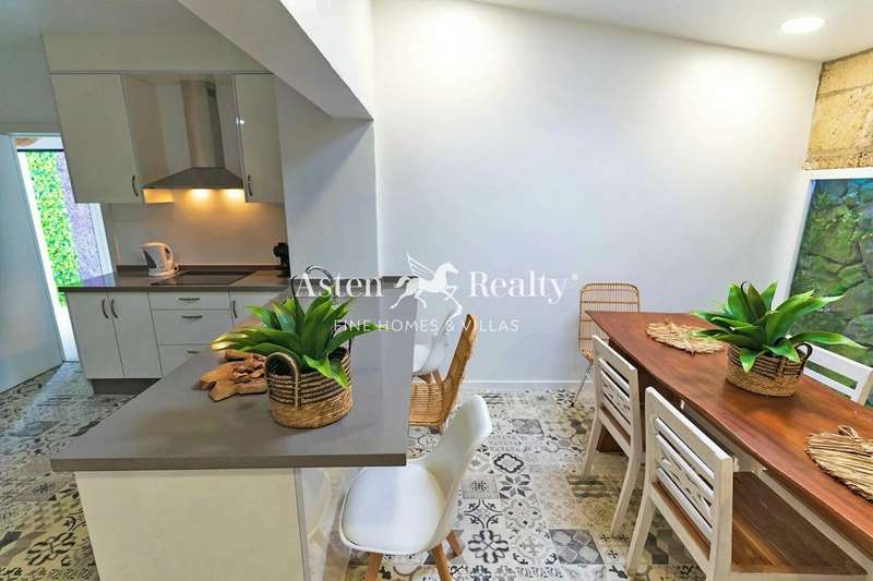 The villa is sold fully furnished and has a parking space and a laundry/storage room on the property.