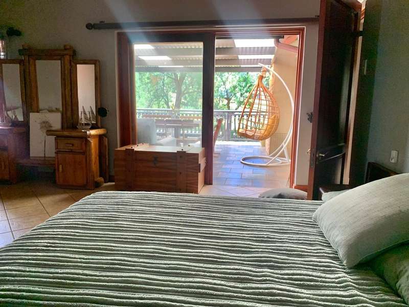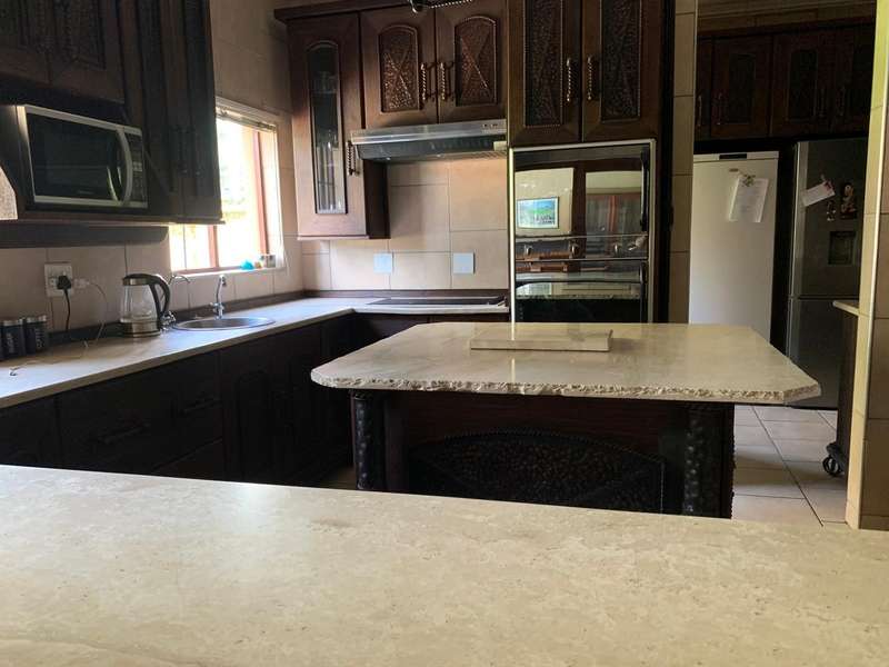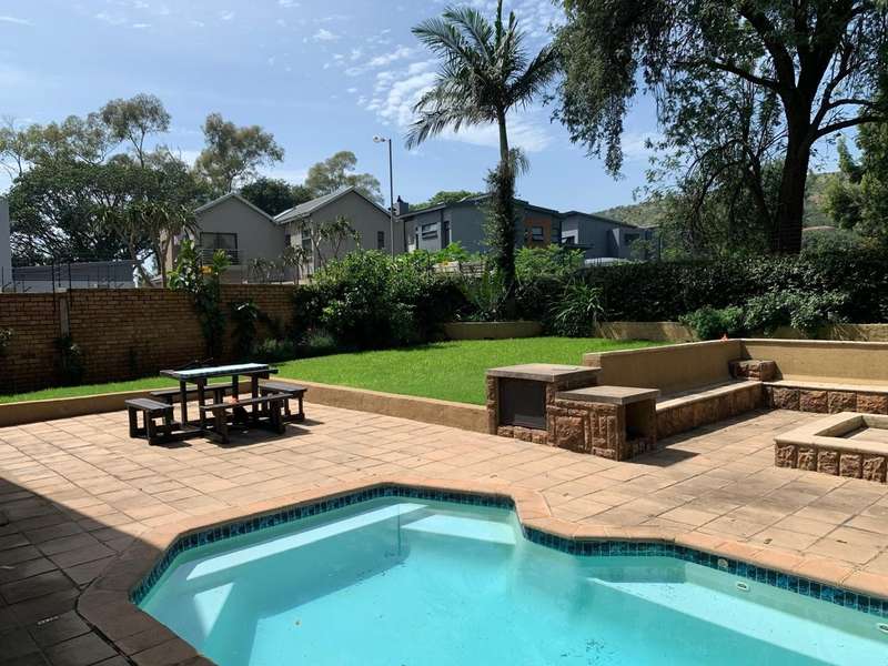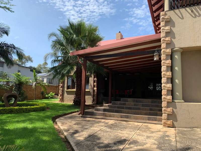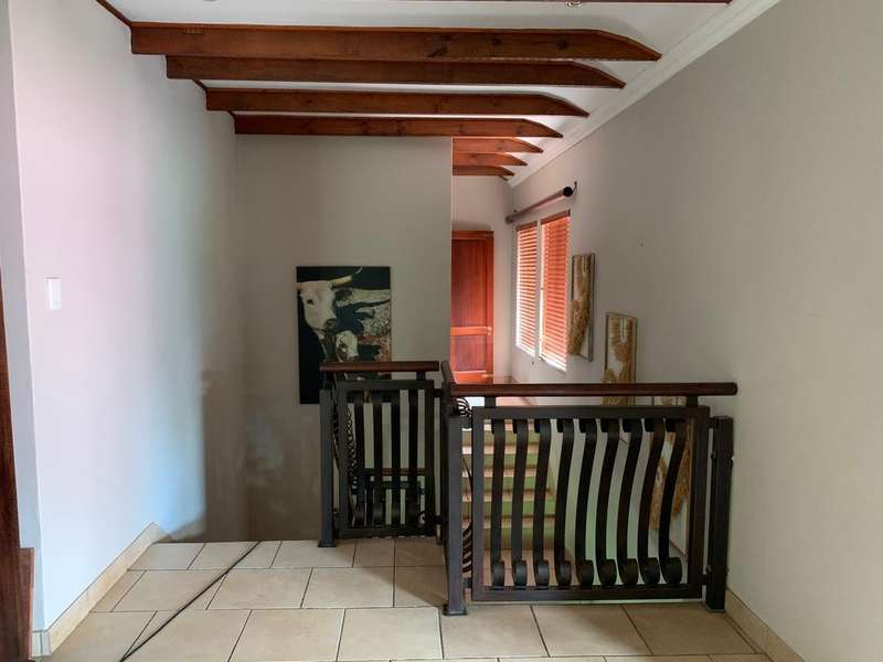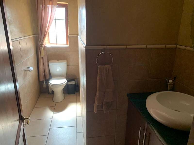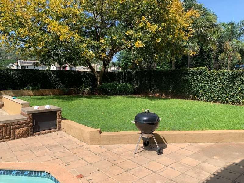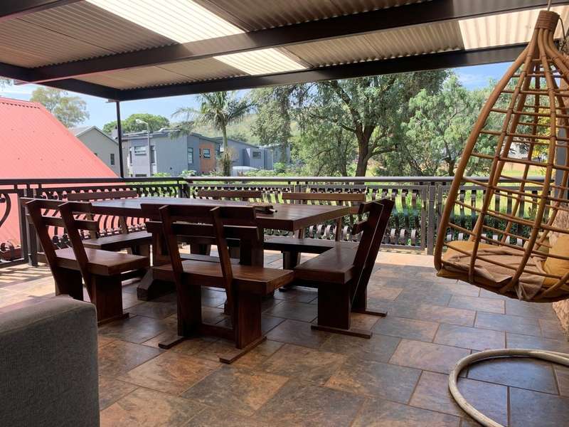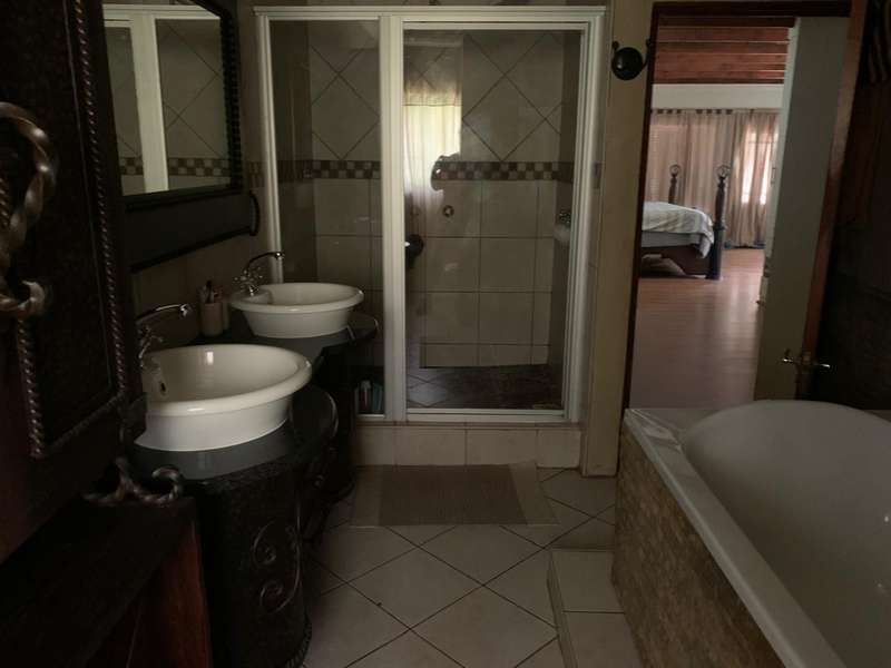 Located in an exclusive estate, this exquisite residence offers a perfect blend of elegance and practical comfort. This residence boasts three spacious bedrooms, all ensuite, with soaring double-volume ceilings and air conditioning. The main bedroom is a private sanctuary, featuring laminate flooring, ample cupboards, a lavish ensuite with a double vanity, and outdoor shower, all leading to a wrap-around balcony with breathtaking views. Designed for seamless living and entertaining, this home includes a formal lounge downstairs, a study, and a cozy pyjama lounge. The dining area flows effortlessly onto a covered patio with a built-in braai and entertainment area, ideal for gatherings. For ultimate convenience and entertainment, the home boasts a second large upstairs balcony with a built-in braai, perfect for relaxing or hosting guests. The chef’s kitchen is a masterpiece, featuring a center island, dark wood and steel cupboards, marble countertops, double eye-level ovens, a prep bowl, and a separate scullery. Step outside to a beautifully manicured garden, complete with a boma, sparkling swimming pool, and irrigation system. Additional features include double garages, domestic accommodation, an alarm system, and premium estate security. This well-kept, sophisticated home offers unparalleled style, privacy, and stunning mountain views. Don’t miss this exceptional opportunity—schedule your private viewing today!
