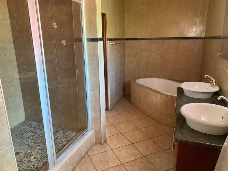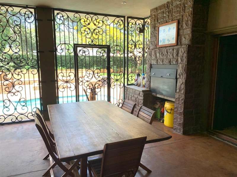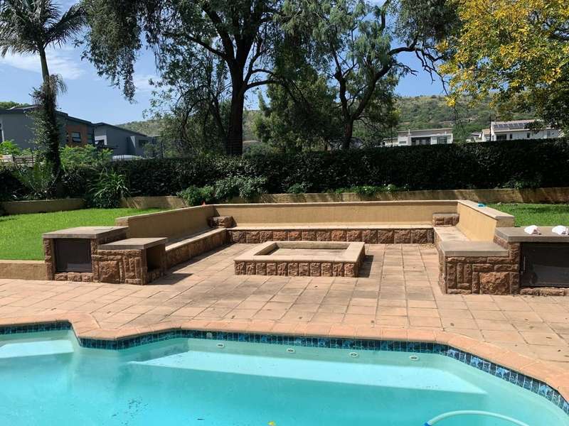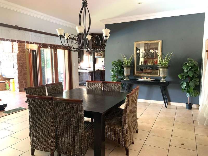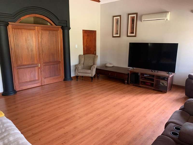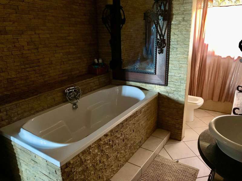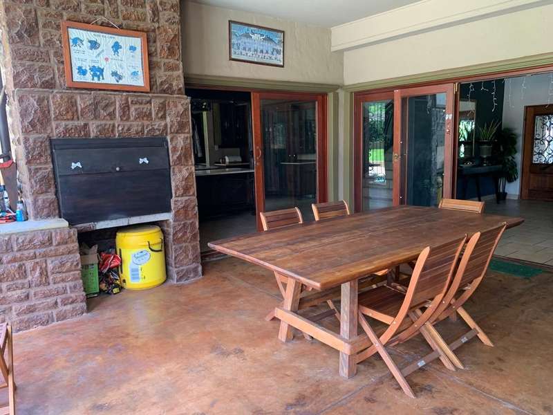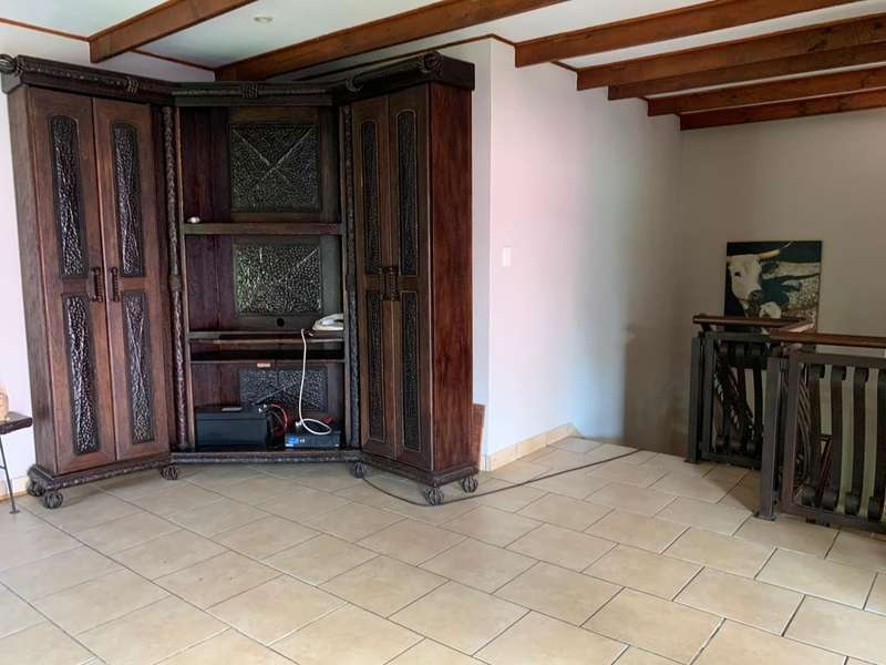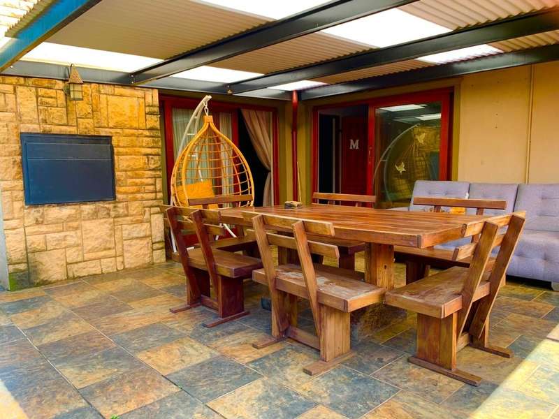 Located in an exclusive estate, this exquisite residence offers a perfect blend of elegance and practical comfort. This residence boasts three spacious bedrooms, all ensuite, with soaring double-volume ceilings and air conditioning. The main bedroom is a private sanctuary, featuring laminate flooring, ample cupboards, a lavish ensuite with a double vanity, and outdoor shower, all leading to a wrap-around balcony with breathtaking views. Designed for seamless living and entertaining, this home includes a formal lounge downstairs, a study, and a cozy pyjama lounge. The dining area flows effortlessly onto a covered patio with a built-in braai and entertainment area, ideal for gatherings. For ultimate convenience and entertainment, the home boasts a second large upstairs balcony with a built-in braai, perfect for relaxing or hosting guests. The chef’s kitchen is a masterpiece, featuring a center island, dark wood and steel cupboards, marble countertops, double eye-level ovens, a prep bowl, and a separate scullery. Step outside to a beautifully manicured garden, complete with a boma, sparkling swimming pool, and irrigation system. Additional features include double garages, domestic accommodation, an alarm system, and premium estate security. This well-kept, sophisticated home offers unparalleled style, privacy, and stunning mountain views. Don’t miss this exceptional opportunity—schedule your private viewing today!