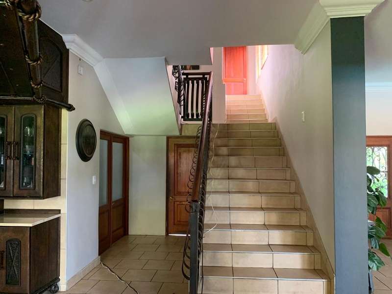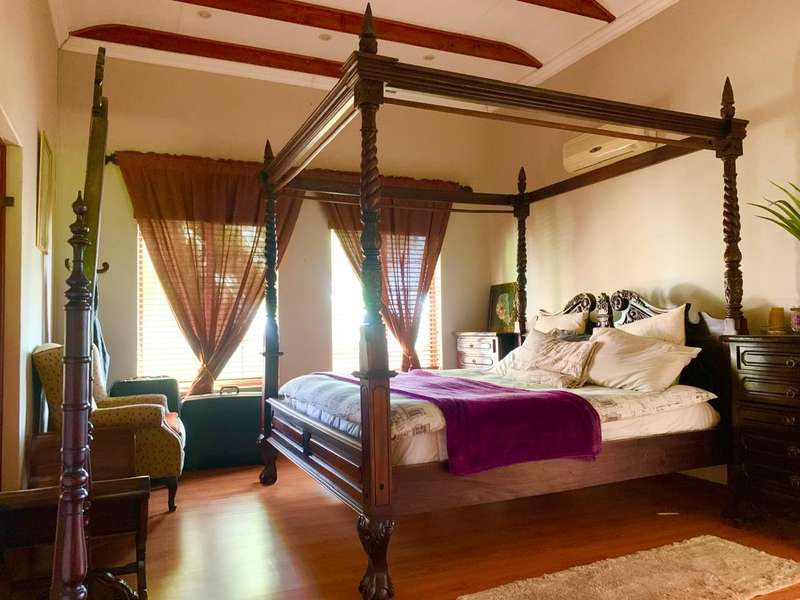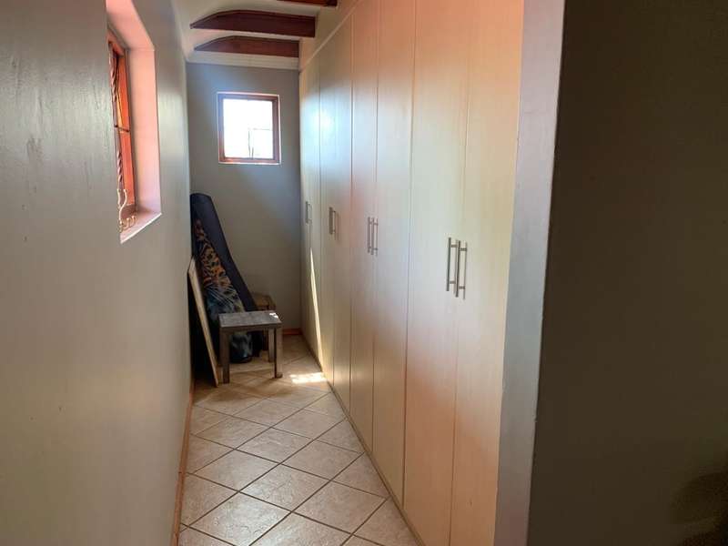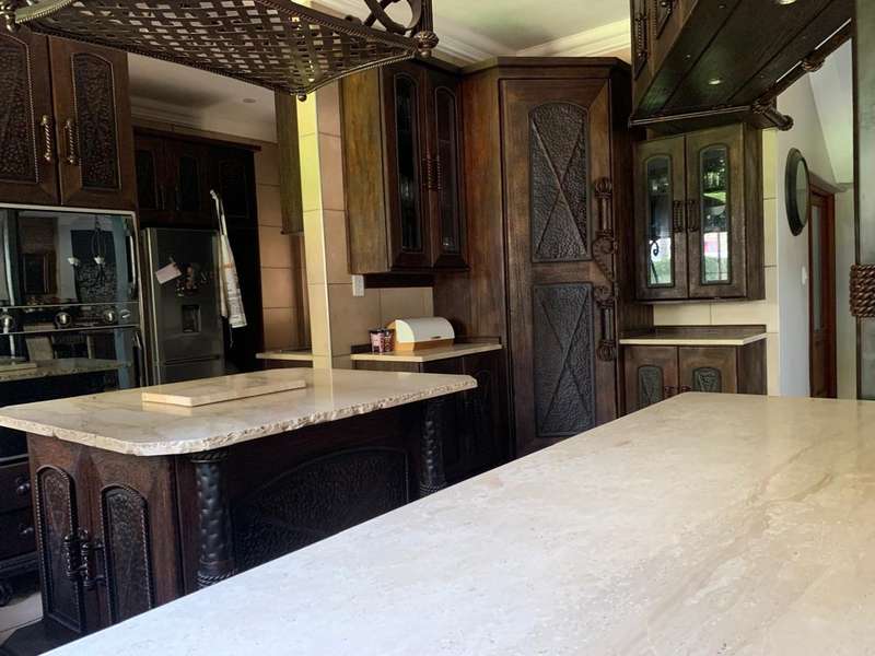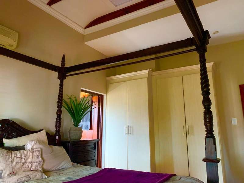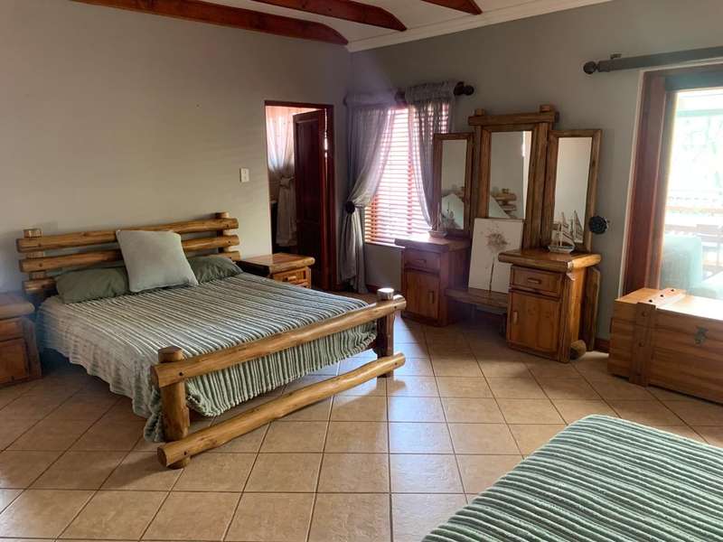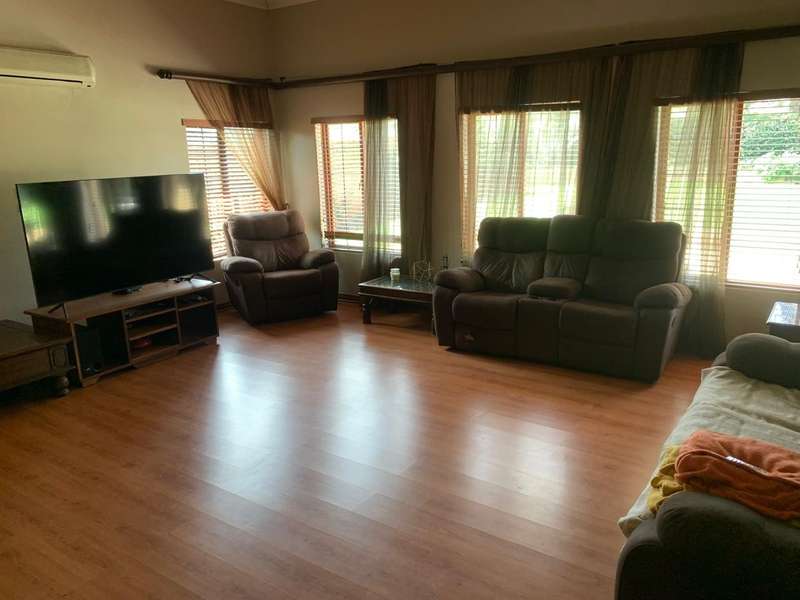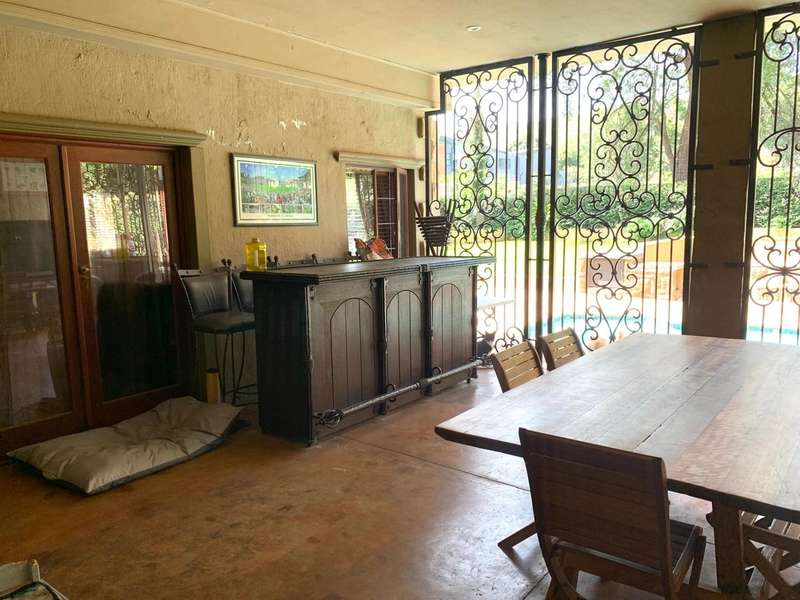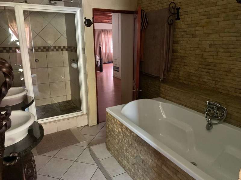 Located in an exclusive estate, this exquisite residence offers a perfect blend of elegance and practical comfort. This residence boasts three spacious bedrooms, all ensuite, with soaring double-volume ceilings and air conditioning. The main bedroom is a private sanctuary, featuring laminate flooring, ample cupboards, a lavish ensuite with a double vanity, and outdoor shower, all leading to a wrap-around balcony with breathtaking views. Designed for seamless living and entertaining, this home includes a formal lounge downstairs, a study, and a cozy pyjama lounge. The dining area flows effortlessly onto a covered patio with a built-in braai and entertainment area, ideal for gatherings. For ultimate convenience and entertainment, the home boasts a second large upstairs balcony with a built-in braai, perfect for relaxing or hosting guests. The chef’s kitchen is a masterpiece, featuring a center island, dark wood and steel cupboards, marble countertops, double eye-level ovens, a prep bowl, and a separate scullery. Step outside to a beautifully manicured garden, complete with a boma, sparkling swimming pool, and irrigation system. Additional features include double garages, domestic accommodation, an alarm system, and premium estate security. This well-kept, sophisticated home offers unparalleled style, privacy, and stunning mountain views. Don’t miss this exceptional opportunity—schedule your private viewing today!
