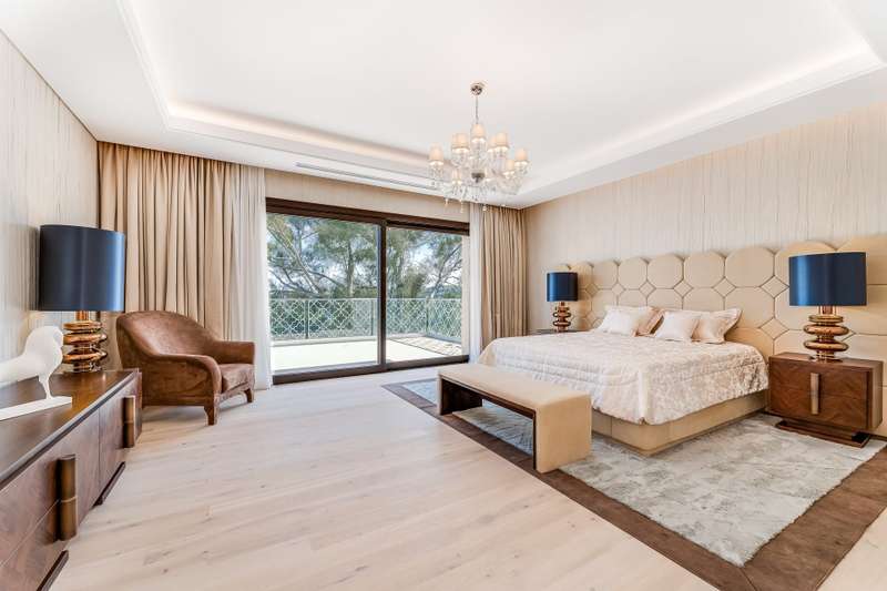 This stunning family home is located in the heart of Nueva Andalucia, right on the edge of Los Naranjos Golf. The property sits on a spacious 2033m2 plot, combining classic design with modern elements. The picturesque garden blends seamlessly into the golf course, offering peaceful views, along with a heated infinity pool and breathtaking sea vistas. The house features 6 bedrooms, each with its own en suite bathroom, a large living room, and a contemporary kitchen. The design prioritizes light and space, with panoramic windows throughout the home. In the basement, you'll find a gym and a luxurious spa area, complete with a Finnish sauna and Turkish hammam. The garage can accommodate 10-11 cars. The home is equipped with a Smart Home system, which allows you to control everything remotely via your iPhone or iPad, including perimeter video surveillance. The property is fully furnished with sophisticated Smania furniture, adding a touch of elegance to every room. Thinking of making a