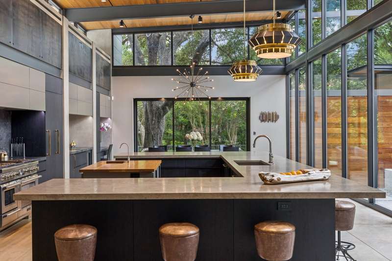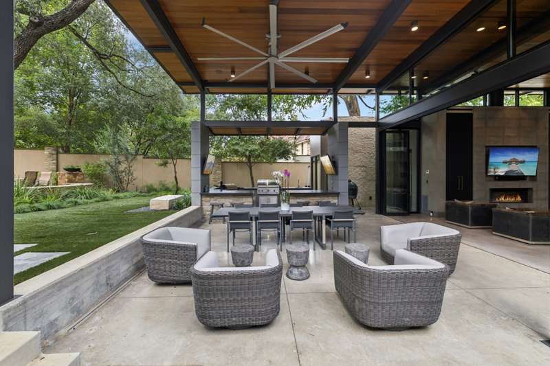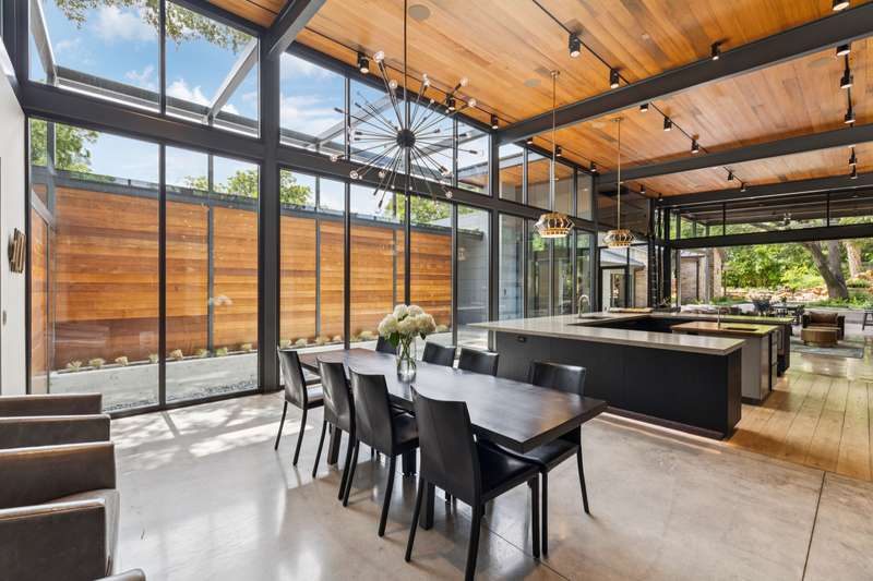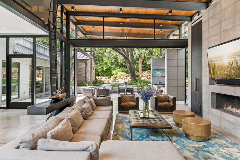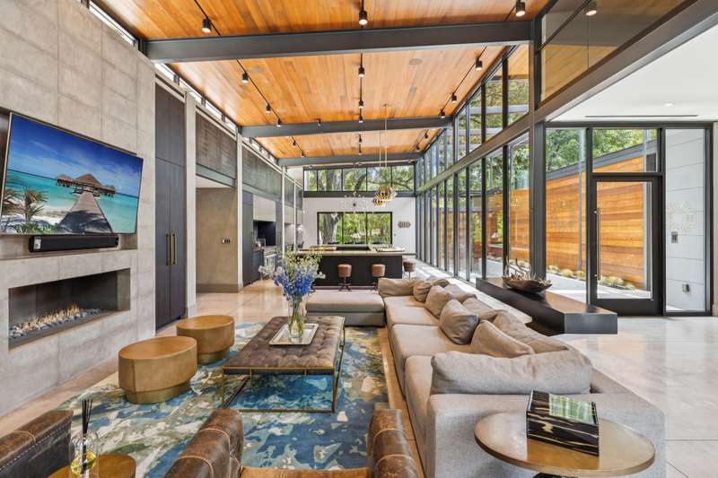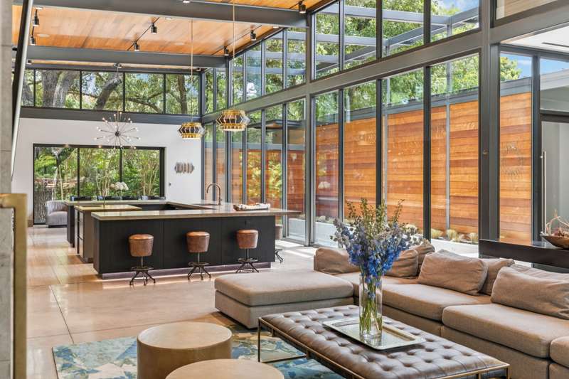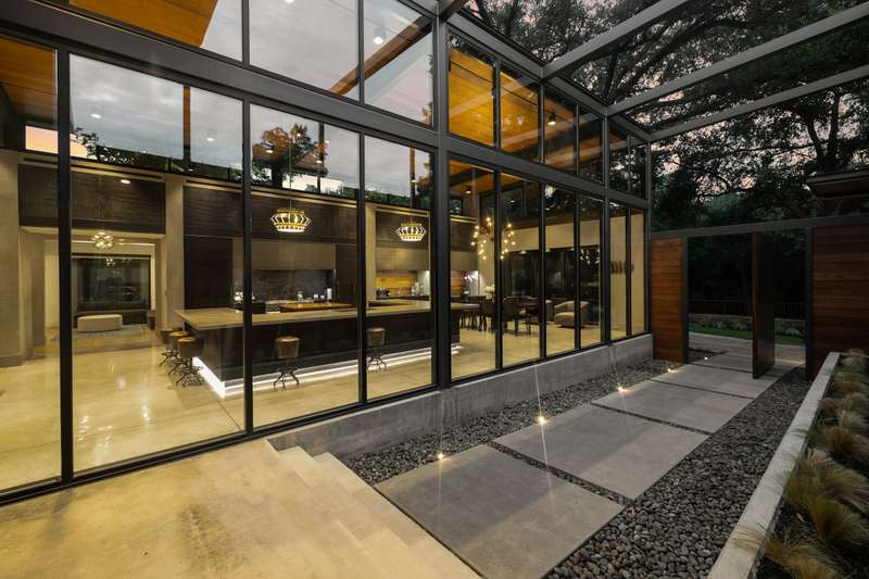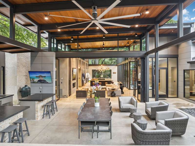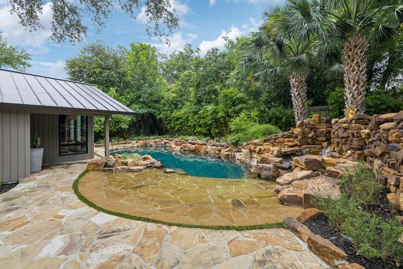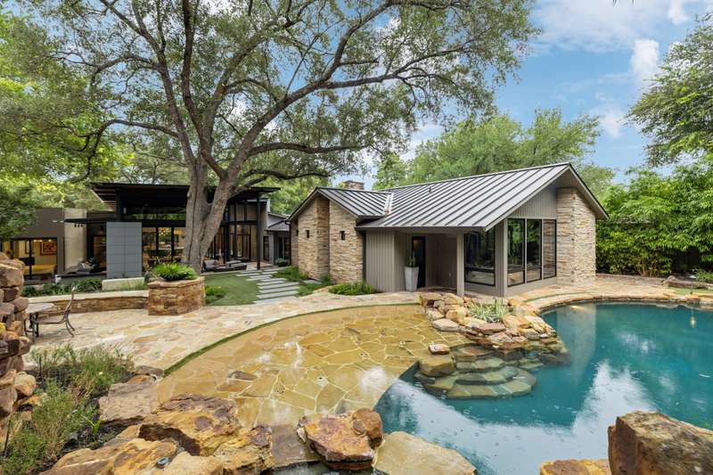 There's simply nothing like this transcendent warm modern home rooted in the Texas landscape, with a commitment to clean lines, natural materials, and seamless indoor-outdoor transitions. Its use of glass as both wall and threshold, and integration of heavy, elemental materials like stone, concrete, and wood set this apart from the usual modern design in San Antonio. The extended ceiling planes, steel framing, and sculptural use of light reflect the same refined restraint. The pivot between privacy and openness, and the way light is curated, feels particularly aligned. The backyard brings fun and privacy, oriented around a massive, heritage oak with curated landscaping and lush, green spaces, and a natural lagoon pool that curves through stone and dense greenery, is simply a work of art on its own. - 11/3/2025 3:15:48 AM