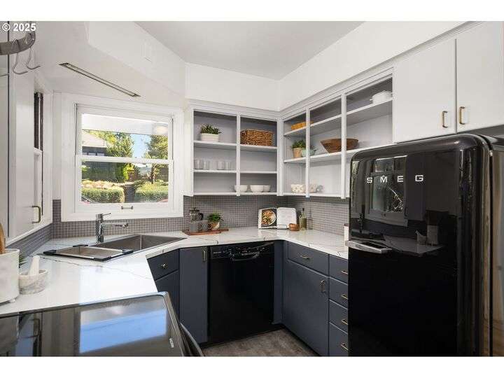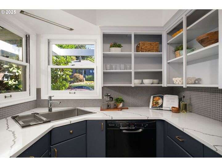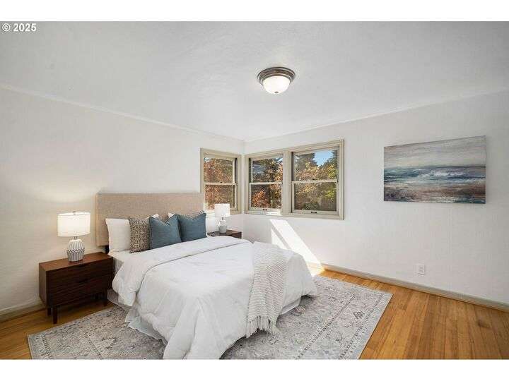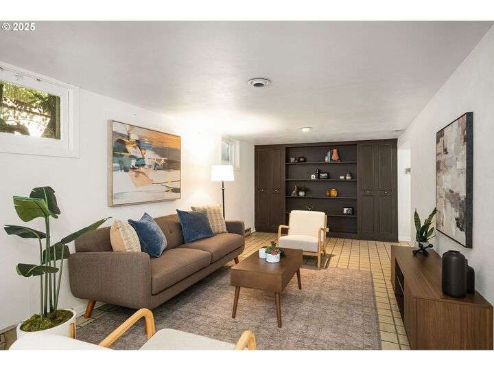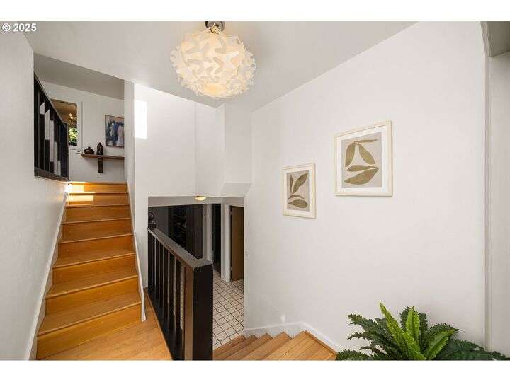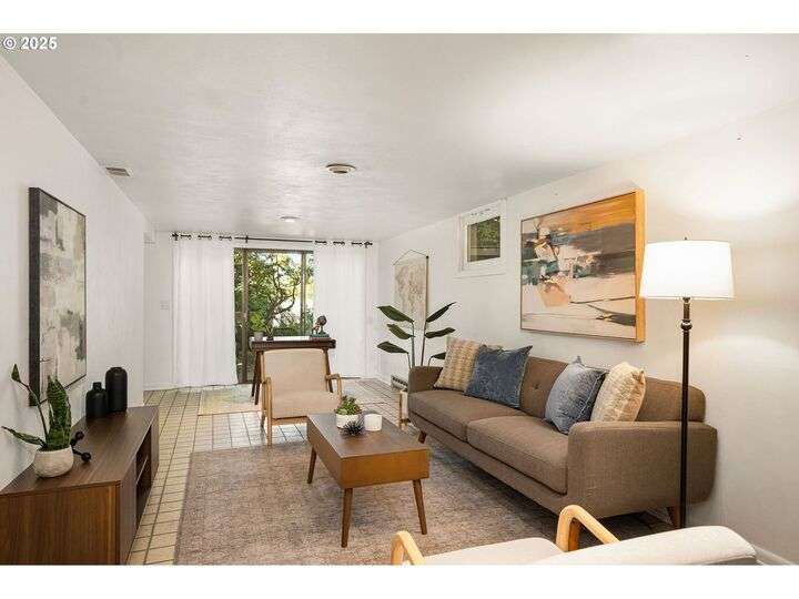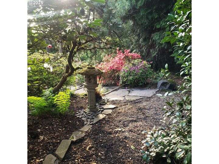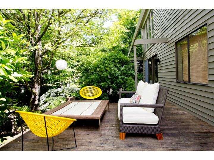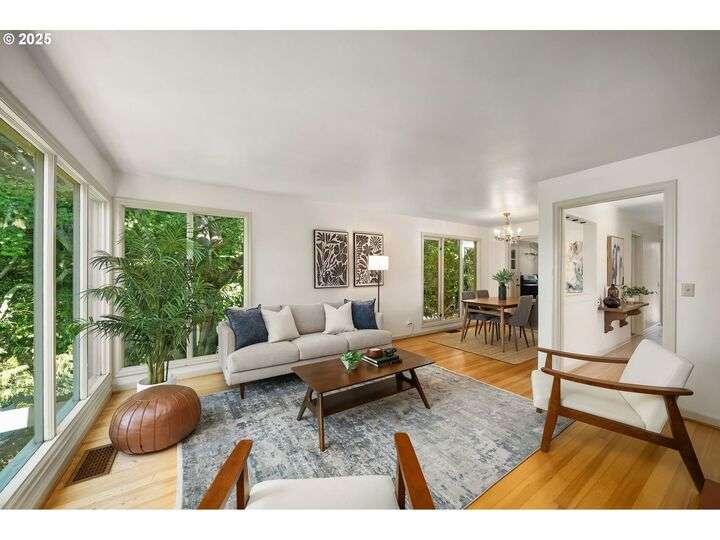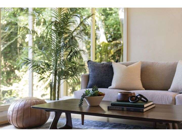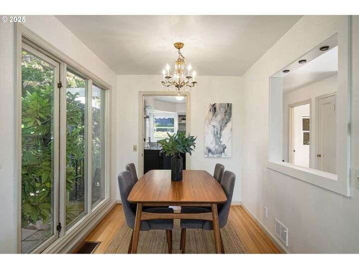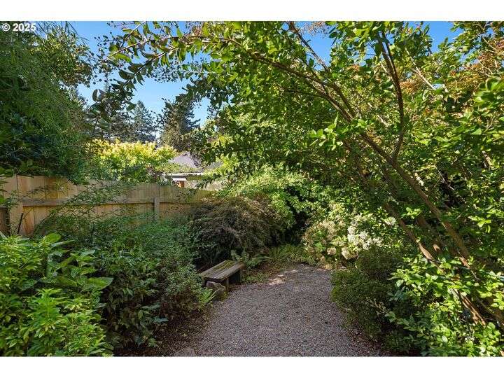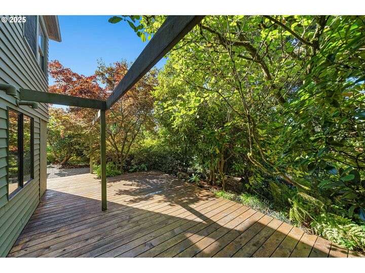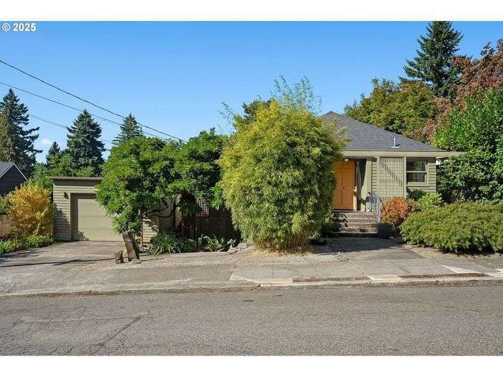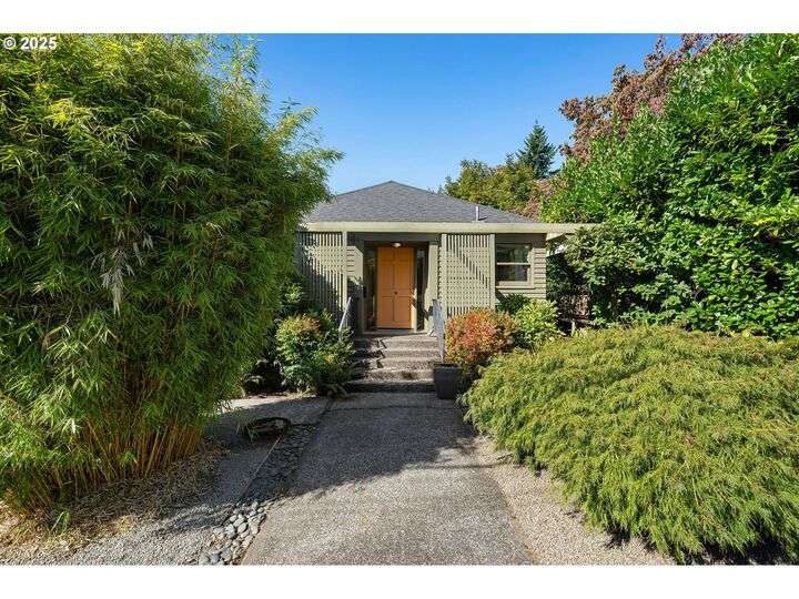 Architect-Inspired 1940s Mid-Century style in SW Burlingame. Welcome to 8115 SW 10th Ave., where timeless design meets garden paradise. This 2-bedroom, 1.5-bath, 1,669 sq. ft. mid-century is filled with character, natural light, and thoughtful updates—all nestled in one of Portland’s most sought-after neighborhoods.Step inside and be greeted by large windows in the living room with a w/fireplace and a formal dining room that frames the lush greenery outside, inviting the outdoors in. The updated kitchen blends style and function, while the main-level primary with a fireplace offers comfort and convenience. An additional bedroom and flexible living space provide room to grow, work, or relax. Retreat to the spacious bottom-level family/great room, which opens to the wrap-around decking and lush garden below. This floor also features a half bath, utility room, and a large unfinished storage or workshop area. Step through the breezeway to a 2-car garage and additional garden supply storage area. Outside, the property is truly a gardener’s dream: winding walking paths, vibrant azaleas, cascading wisteria, and a tranquil zen garden create a serene setting that feels worlds away—yet you’re just minutes from everything Portland offers. *the total square footage includes the 315 sq. ft. garage. [Home Energy Score = 2. HES Report at https://rpt.greenbuildingregistry.com/hes/OR10225642]