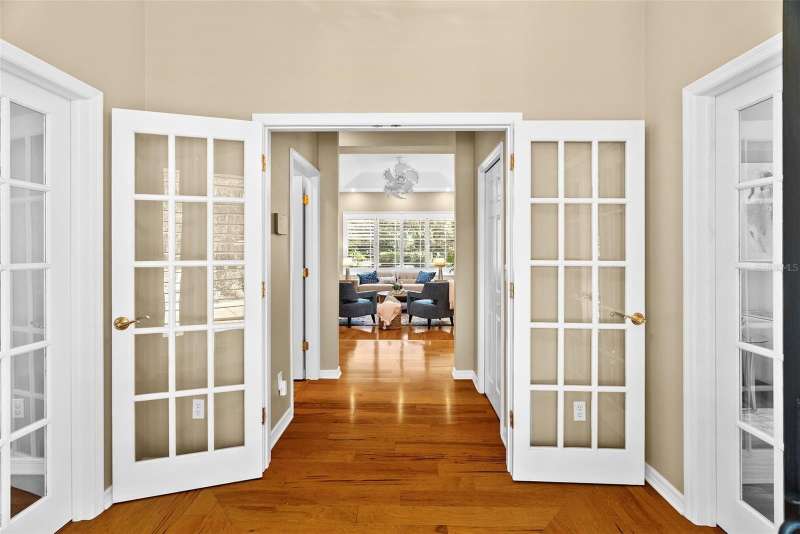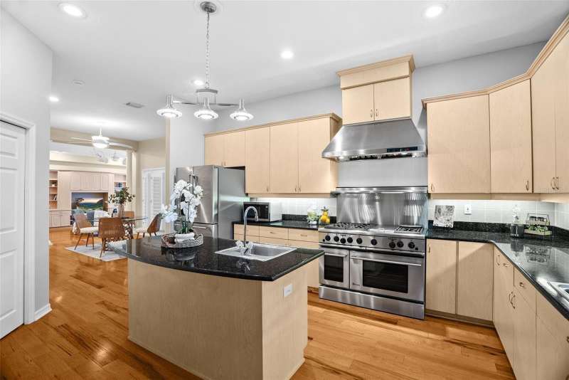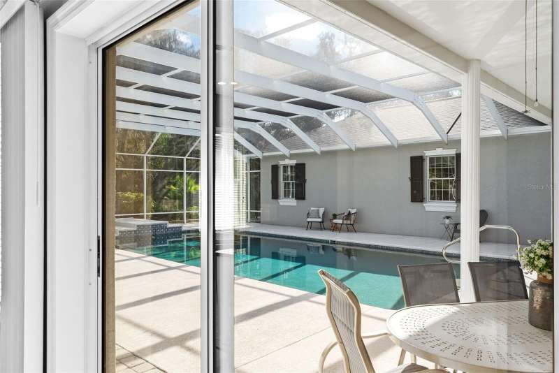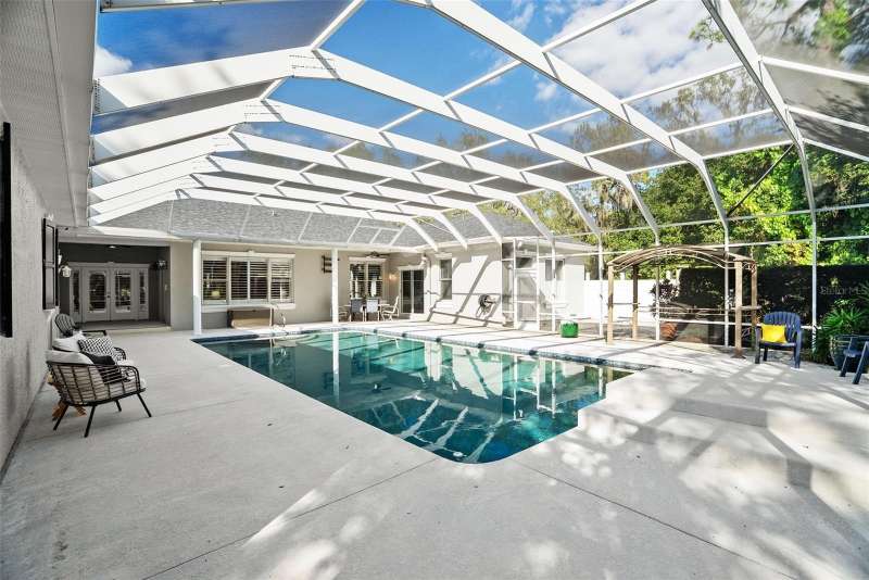 Welcome to 6714 Millstone Drive, a timeless estate nestled within the coveted Oak Ridge community, where privacy, craftsmanship, and comfort blend seamlessly across 1.31 acres of manicured grounds. From the circular drive and shaded oaks to the classic southern architecture with black shutters and a welcoming front porch, this residence makes a statement before you even step inside. Beyond the double French doors awaits a thoughtfully designed layout spanning over 3,800 square feet, offering 4 bedrooms, 3.5 baths, and a 3-car garage. The formal entry is flanked by twin sets of French doors that lead to two versatile rooms, one currently serving as a sophisticated home office with custom built-in shelving and desk cabinetry, and the other ideal as a formal living area or music room. At the heart of the home lies the chef’s kitchen, a true showpiece featuring GE Monogram stainless steel appliances, a 6-burner gas range with griddle, double ovens, granite countertops, a prep island with sink, and a charming butler’s sink for everyday convenience. The kitchen flows beautifully into the spacious family room, anchored by custom built-ins, tray ceilings, and a wall of windows overlooking the pool and lush backyard. A split-bedroom design ensures privacy. The primary suite on the left side of the home is a sanctuary unto itself, with a large walk-in closet, dual vanities, a walk-in shower, and a garden tub that invites you to unwind. On the opposite wing, two guest bedrooms share a full bath, while a private in-law suite near the laundry area offers its own bathroom and dedicated entry, perfect for guests or multi-generational living. Step outside to your own private oasis. A screen-enclosed saltwater pool with a brand-new screen (2024) sits beneath a pergola and lush landscaping, offering the ideal space for entertaining or relaxation. A fountain greets you at the front while mature palms and shrubs wrap the property in natural beauty. Additional updates include a 2020 roof, a new well system with chlorination, filtration, and softener; new well pump; newer HVAC systems (2022 improvements); 2025 exterior painting; 2025 dishwasher; epoxy-finished garage floors; a tankless water heater; and a whole-house vacuum system. The home runs on propane for the range and water heater (approx. $300 per quarter for a 300-gallon tank), and the septic system was serviced within the last few years. Real wood and laminate flooring span throughout the home, accented by plantation shutters, crown molding, and custom lighting fixtures that add warmth and character to every room. Conveniently located near top-rated schools, golf courses, and shopping in New Port Richey, this custom-built Oak Ridge home offers the rare combination of privacy and accessibility, a place where every detail has been thoughtfully curated for comfort, luxury, and style. Discover the peace of mind and prestige of life in Oak Ridge. Schedule your private showing today.