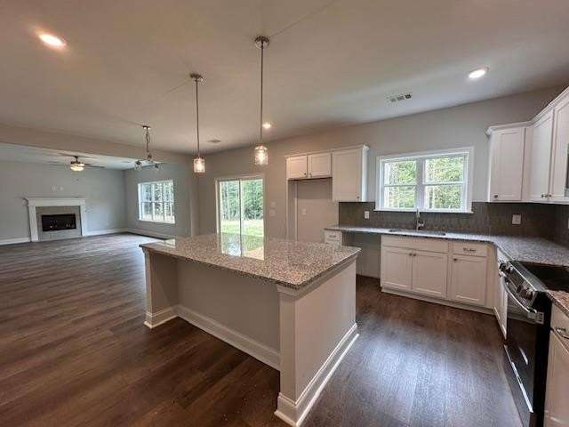 Welcome to the Abbey floor plan, a remarkable two-story residence designed for spacious living. From the inviting covered front porch, enter a dramatic 2-story foyer that sets the tone for this 5-bedroom (plus potential 6th!), 3.5-bathroom home. Entertain in the formal living and dining rooms, or gather in the open-concept kitchen featuring a large island, stylish cabinetry, modern appliances, and a breakfast area leading to the covered rear porch – perfect for outdoor enjoyment. The spacious family room, complete with a fireplace, offers a cozy retreat. A convenient powder room and mudroom add to the main level's functionality, along with a desirable guest bedroom featuring an attached private bathroom. Upstairs, the expansive primary bedroom awaits, boasting a comfortable sitting area and a luxurious bathroom with double vanities, a separate tub and shower, and two generous walk-in closets. The upper level also includes a laundry room, three additional well-sized bedrooms, and a full hall bath with double vanities, as well as a versatile media room that could easily serve as a sixth bedroom. Builder offering $4000 in incentives.