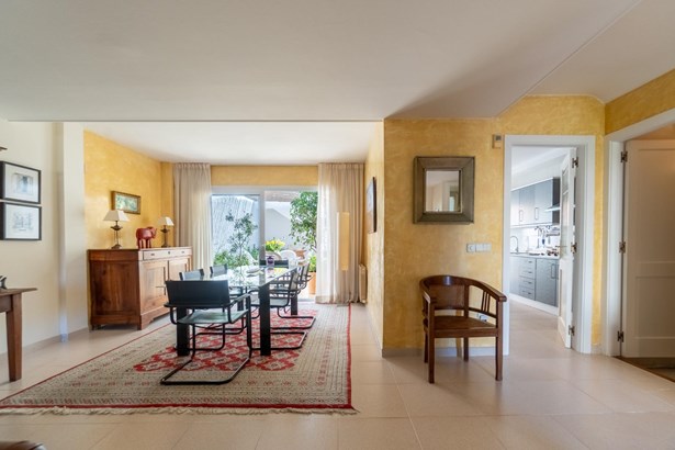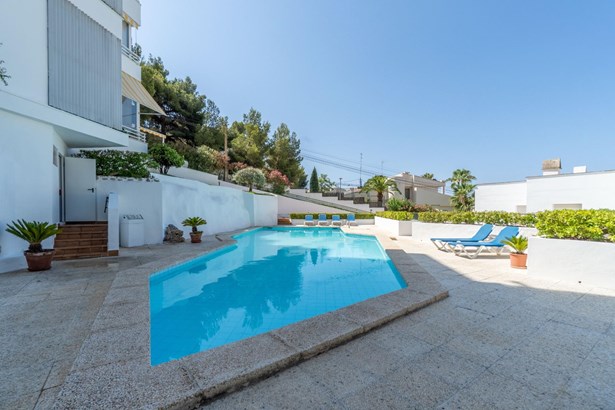 Located in the La Bonanova neighbourhood, this spacious 237 m² semi-detached house offers a lifestyle of comfort, privacy, and pleasant outdoor areas.~The property features four bedrooms, two full bathrooms, and a guest toilet.~Natural light flows throughout the interiors, especially in the living room, which opens onto a charming terrace with a porch and chill-out area surrounded by greenery — perfect for family gatherings or relaxing moments.~The separate kitchen is large and functional, with a dining area and direct access to the patio.~In the sleeping area, the bedrooms are spacious and bright, equipped with built-in wardrobes, and some have access to a balcony, adding warmth and charm.~Outside, the property boasts a beautiful Mediterranean garden with palm trees and green spaces, as well as a large garage.~As an added bonus, there is access to a communal swimming pool with a sun deck.~Equipped with heating, air conditioning, and a lift, this home offers all modern comforts in one of Palma’s most sought-after residential areas, just minutes from the city centre and the sea.~An ideal home for those seeking generous spaces, peace, and a privileged location.