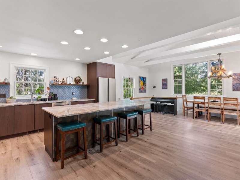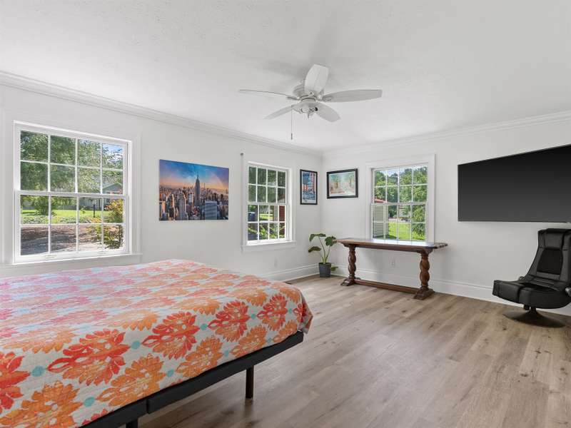 Unique and rare opportunity for riverfront living in Arden. Completely remodeled in 2024, this home offers a rare blend of modern design, versatile living spaces, and 226 feet of pristine French Broad River frontage?all on a subdividable 2.5-acre lot. With over 4,700 square feet, 4 bedrooms, and 4 baths, it's perfectly suited for both full-time living and entertaining. The home's open floor plan showcases soaring 14-foot ceilings and more than 20 windows that bathe the interiors in natural light. Facing west, the residence is perfectly positioned to capture breathtaking sunsets pouring into the main living spaces. At the heart of the home, a chef's kitchen features premium finishes and flows seamlessly into the dining and living areas, then out to a private deck overlooking the expansive backyard and riverfront.The lower level, with a separate address (213 Pinner Road) and its own entrance and full kitchen, offers an ideal in-law suite, guest quarters, or rental opportunity. A permitted detached 2-car garage provides convenience and flexibility, while a new whole-house generator with a 500-gallon propane tank ensures peace of mind.Outdoors, enjoy level acreage that leads gently to the river's edge?perfect for kayaking, fishing, or simply relaxing by the water. The property's size and subdivision potential make it a truly unique investment. With no HOA restrictions and legal approval for short-term rentals, this home presents exceptional income potential as well as lifestyle flexibility.Located just minutes from Asheville, Hendersonville, and Brevard?and only 5 minutes from the airport?this property combines accessibility with the tranquility of true riverfront living. A rare opportunity to own a move-in-ready estate that blends modern luxury, investment potential, and timeless mountain charm.