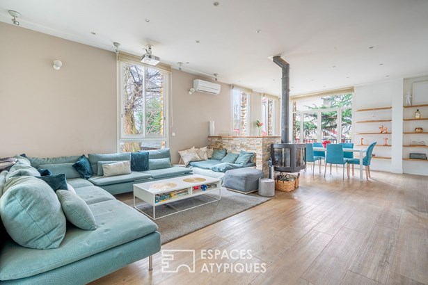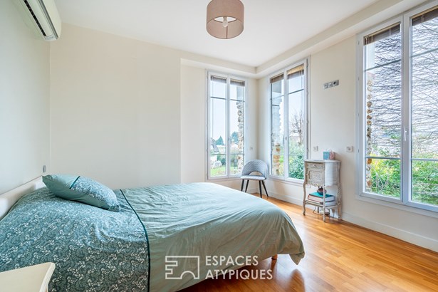 Located in the heart of the sought-after Plateau district, in the charming town of Le Raincy, this prestigious millstone villa with a floor area of ??435 m2 (351 m2 of living space), designed by architect Baranton, embodies elegance and refinement. Its 1940s architecture, its lush setting, and its renovated caretaker's house with a floor area of ??95 m2 (64 m2 of living space) make this property a true haven of peace, extending over a plot of 1,200 m2.